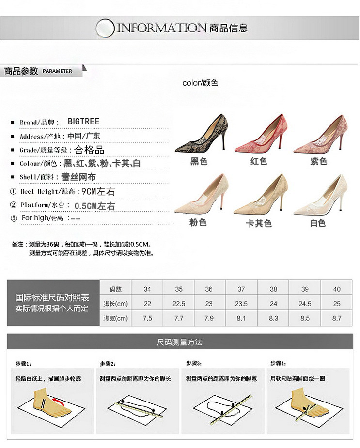 Đôi giày cao gót này có phần mũi nhọn và cổ giày thấp, tạo nên vẻ ngoài thanh thoát. Kiểu dáng gót nhọn cùng thiết kế mặt trên bằng lưới và họa tiết ren giúp đôi chân thêm phần quyến rũ. Sản phẩm giúp tôn dáng một cách nhẹ nhàng. Bạn có thể dễ dàng phối cùng nhiều loại trang phục khác nhau như quần âu, váy liền để đi làm, dự tiệc hoặc gặp mặt bạn bè. | Tên sản phẩm: Giày Cao Gót Nữ Chất Liệu Ren Mũi Nhọn Gót Nhọn Phong Cách Âu Mỹ - Giày Dép Nữ | Mã sản phẩm: A9218 - Giá: 590.000đ | Mã nhà sản xuất: PITYIN-G01Hình ảnh sản phẩm