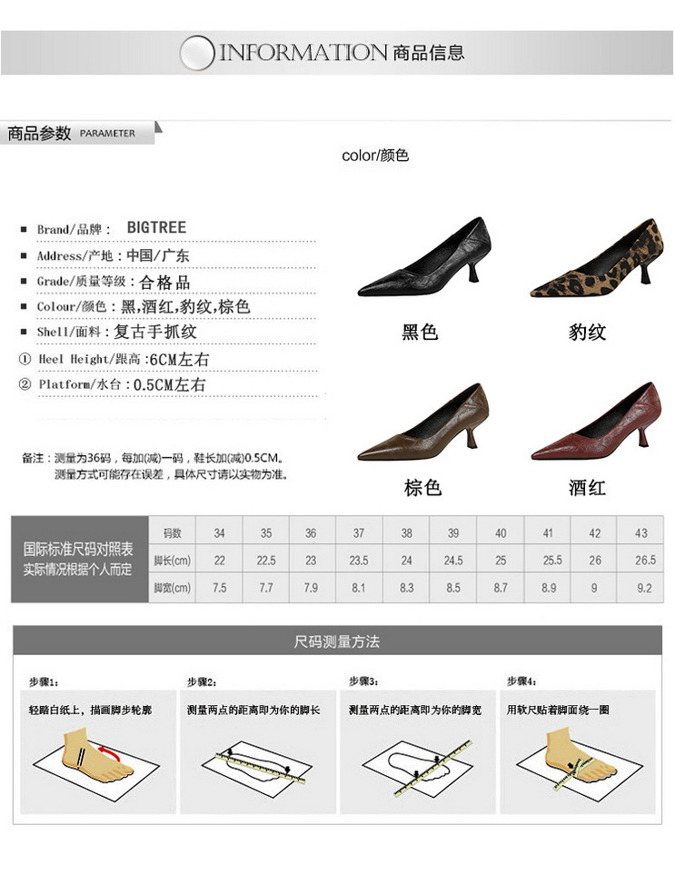 Đôi giày này có kiểu dáng mũi nhọn và gót thanhai mảnh, mang phong cách thời trang châu Âu Mỹ. Họa tiết da beo tạo điểm nhấn nổi bật và phóng khoáng. Thiết kế cổ thấp ôm chân, dễ dàng phối cùng nhiều trang phục như váy liền hay quần tây. Sản phẩm phù hợp cho các buổi tiệc hoặc sự kiện. Khi sử dụng, nên chọn size vừa vặn và đi những bước ngắn để làm quen với gót cao. | Tên sản phẩm: Giày Cao Gót Nữ Mũi Nhọn Gót Nhọn Phong Cách Âu Mỹ - Giày Dép Nữ | Mã sản phẩm: A9225 - Giá: 600.000đ | Mã nhà sản xuất: PITYIN-G01Hình ảnh sản phẩm