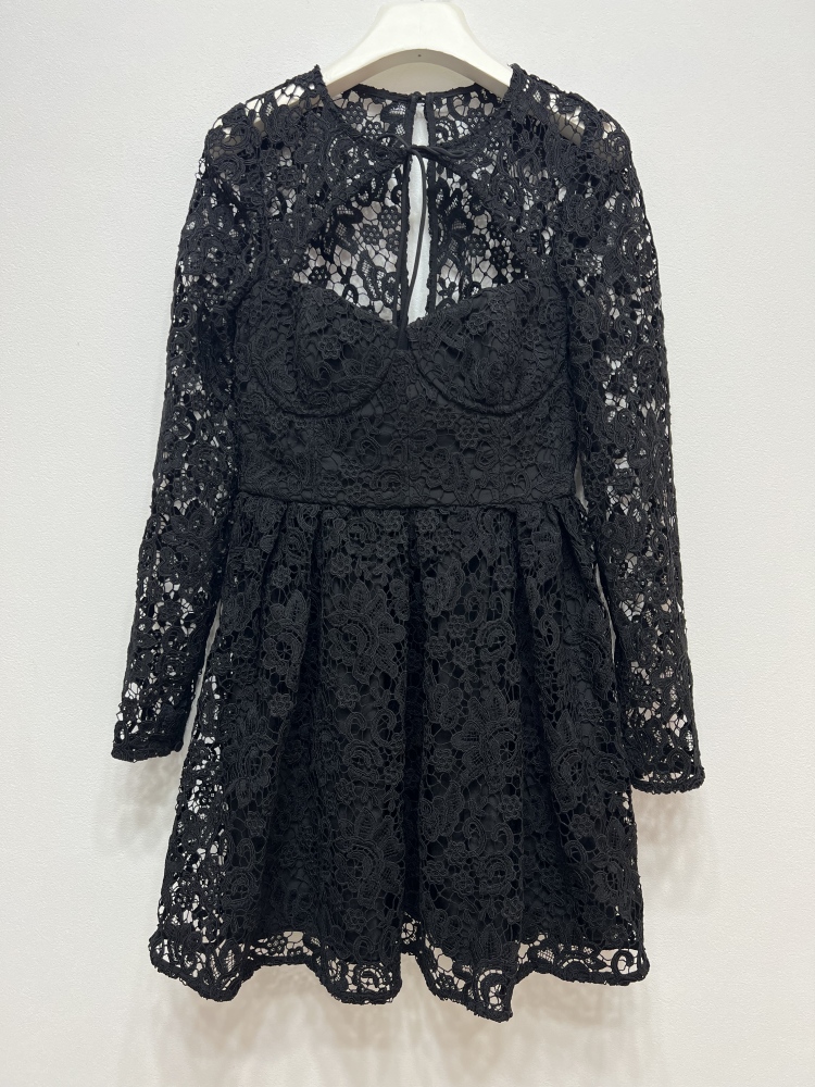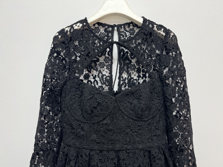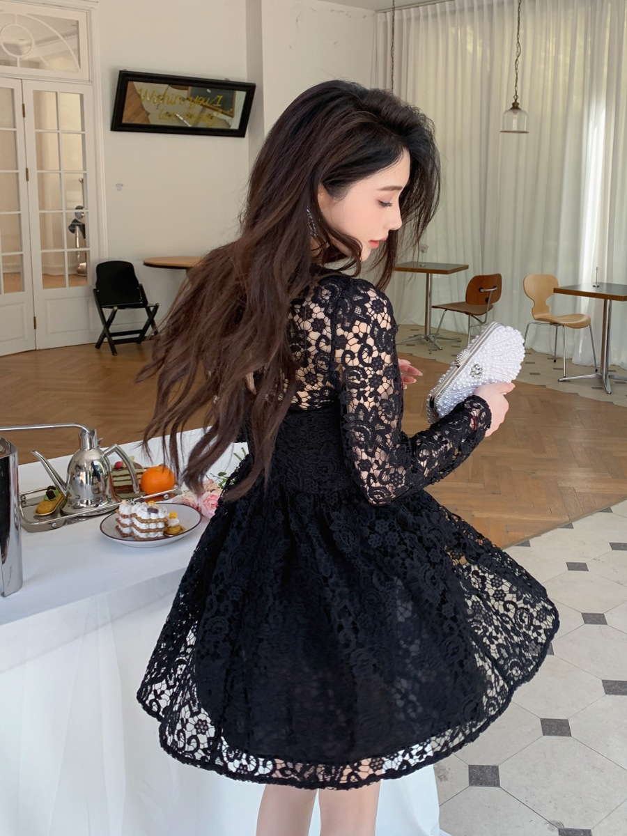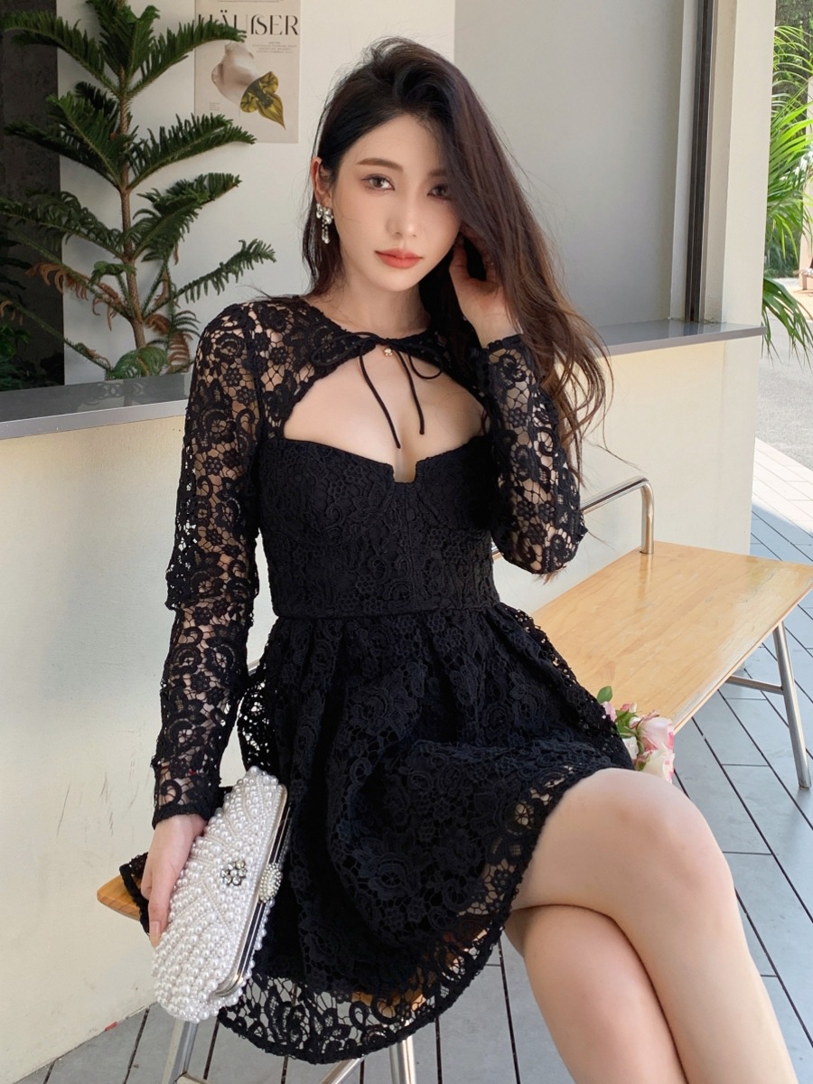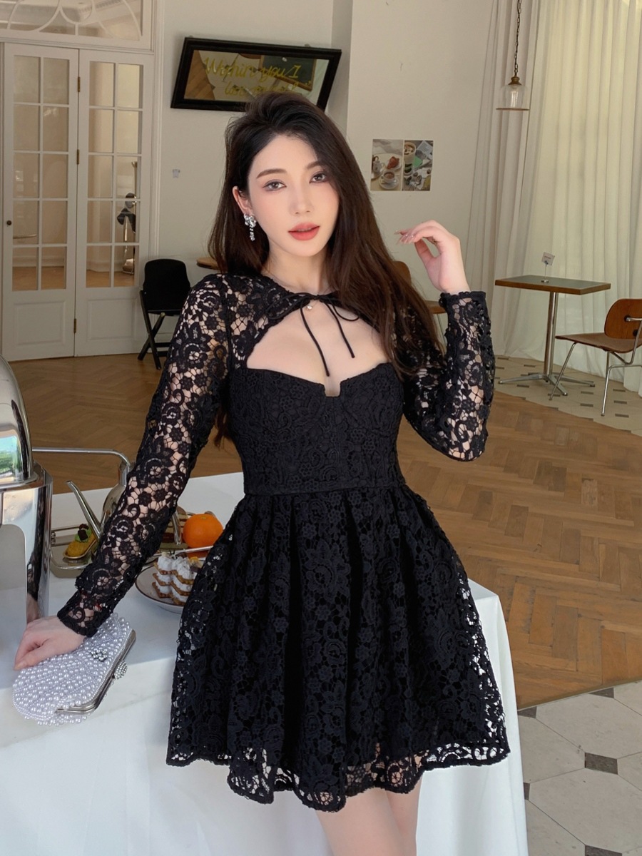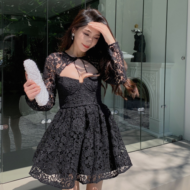 Đầm dự tiệc tay dài với điểm nhấn là phần cổ viền ren đen tinh tế. Thiết kế dáng đầm ôm body kết hợp phần áo lót bên trong dạng yếm có dây cột, tạo nên vẻ đẹp vừa dịu dàng lại cá tính. Chất vải dày dặn giữ form đẹp, phù hợp cho những buổi tối mùa thu đông. Cách mặc đơn giản, chỉ cần mặc lớp yếm bên trong và cột dây, sau đó khoác phần áo ngoài có cổ ren lên là hoàn thiện set đồ. | Tên sản phẩm: Váy Đầm Liền Thân Nữ Chất Liệu Ren Dài Tay Hàng Mùa Xuân Thu Đông - Thời Trang Nữ | Mã sản phẩm: a9250 - Giá: 2.410.000đ | Mã nhà sản xuất: HADN-G05Hình ảnh sản phẩm