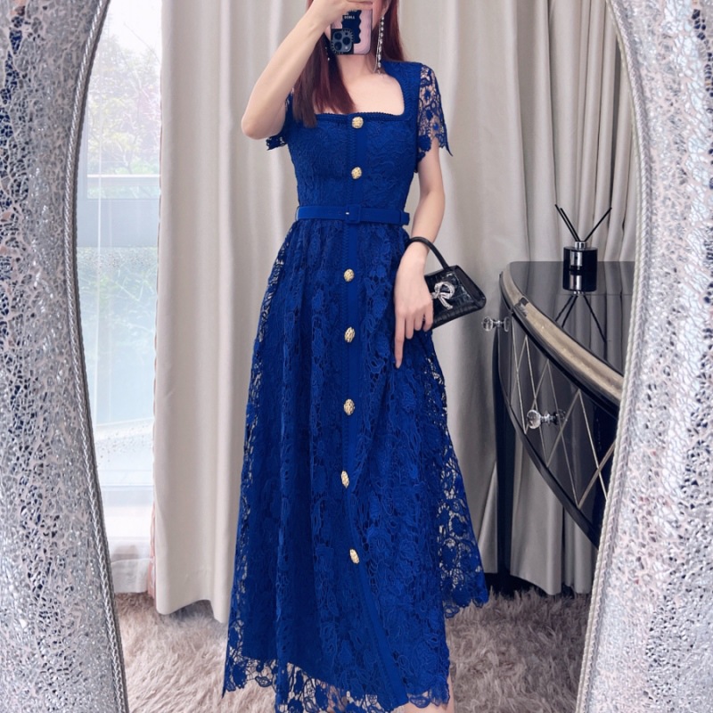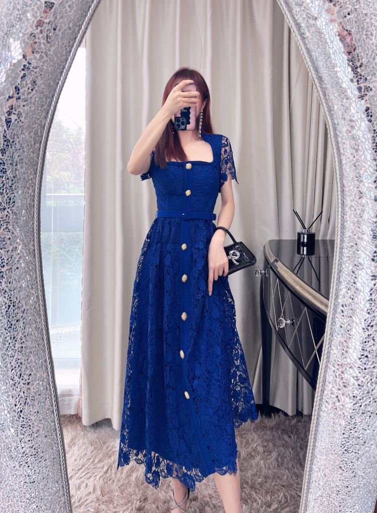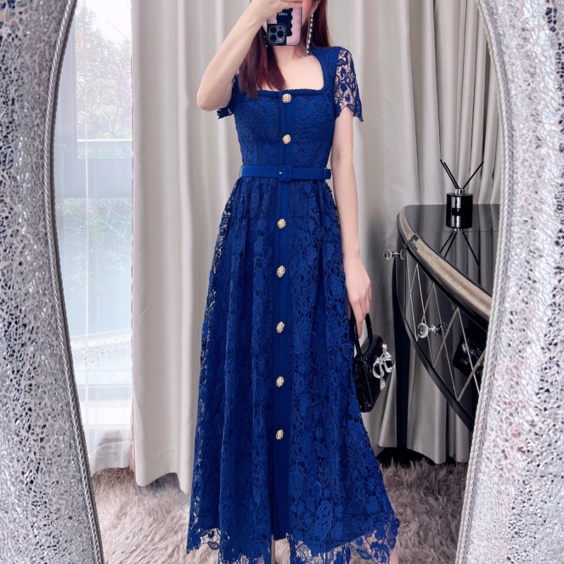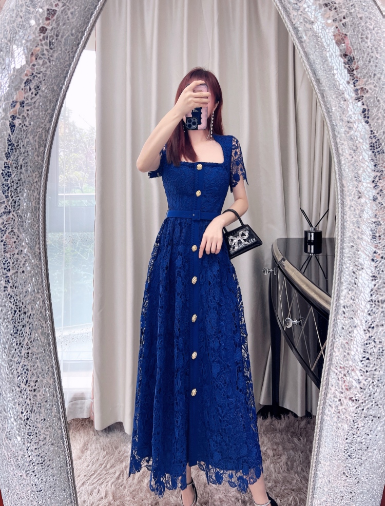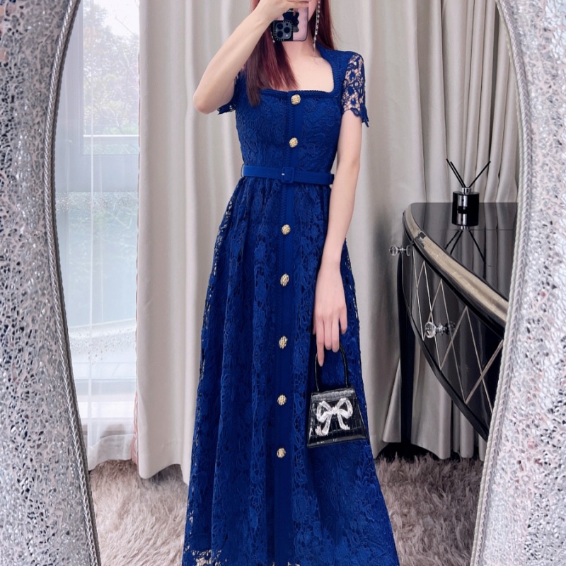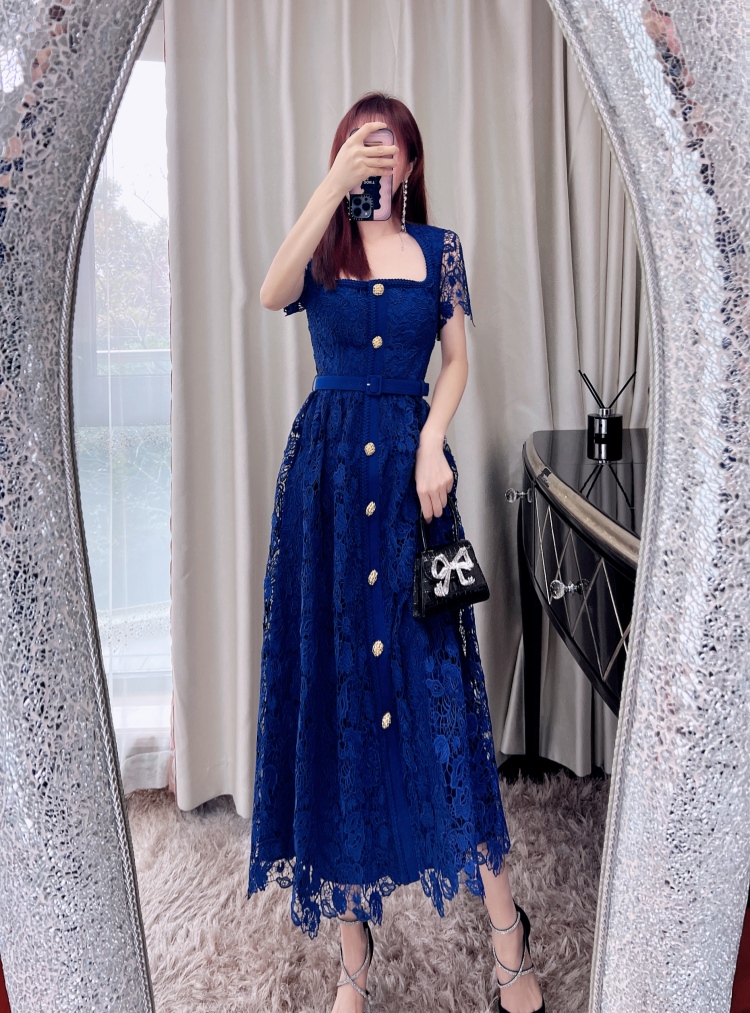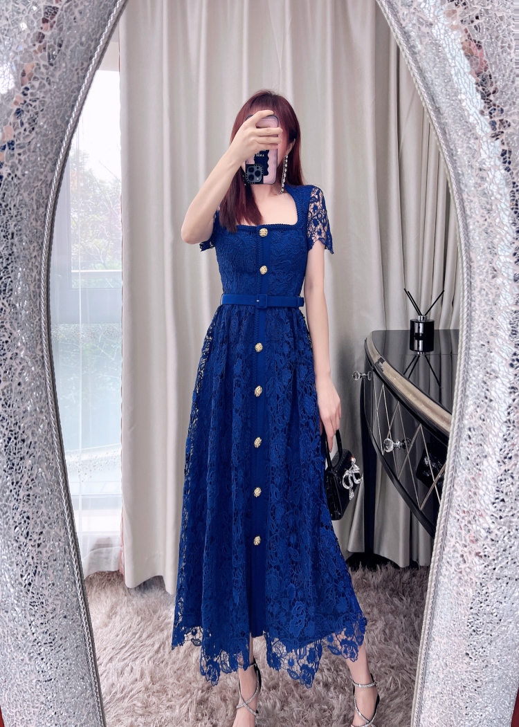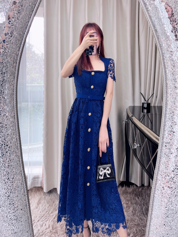 Chiếc váy dài tay dài mang sắc xanh hoàng gia đậm chất cổ điển, điểm nhấn là phần cổ áo hình thang cách điệu cùng họa tiết ren tinh xảo phủ nhẹ. Chất vải dày dặn giúp tôn dáng và tạo cảm giác thoải mái khi mặc. Sản phẩm phù hợp cho những buổi tiệc hoặc sự kiện cần sự lịch sự. Có thể giặt bằng máy và phơi trong bóng mát để giữ form váy và độ bền của ren. | Tên sản phẩm: Váy Đầm Liền Thân Dáng Dài Nữ Chất Liệu Ren Hàng Mùa Xuân Thu Đông - Thời Trang Nữ | Mã sản phẩm: a9254 - Giá: 2.500.000đ | Mã nhà sản xuất: HADN-G05Hình ảnh sản phẩm