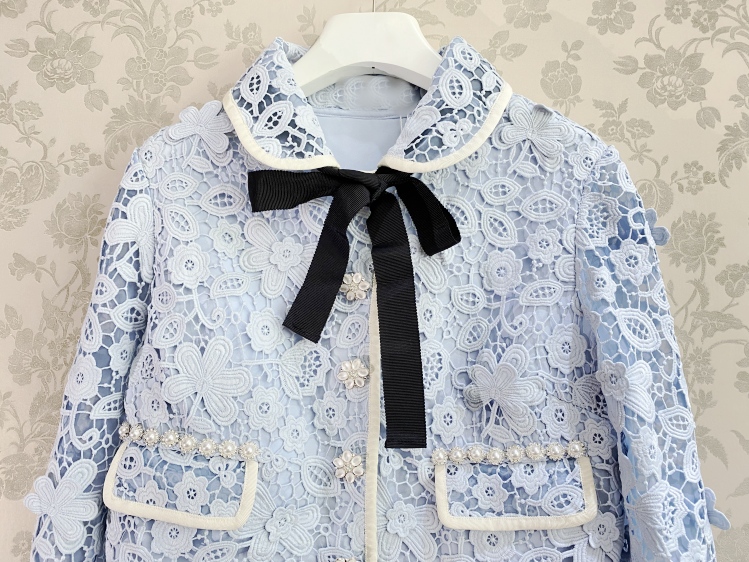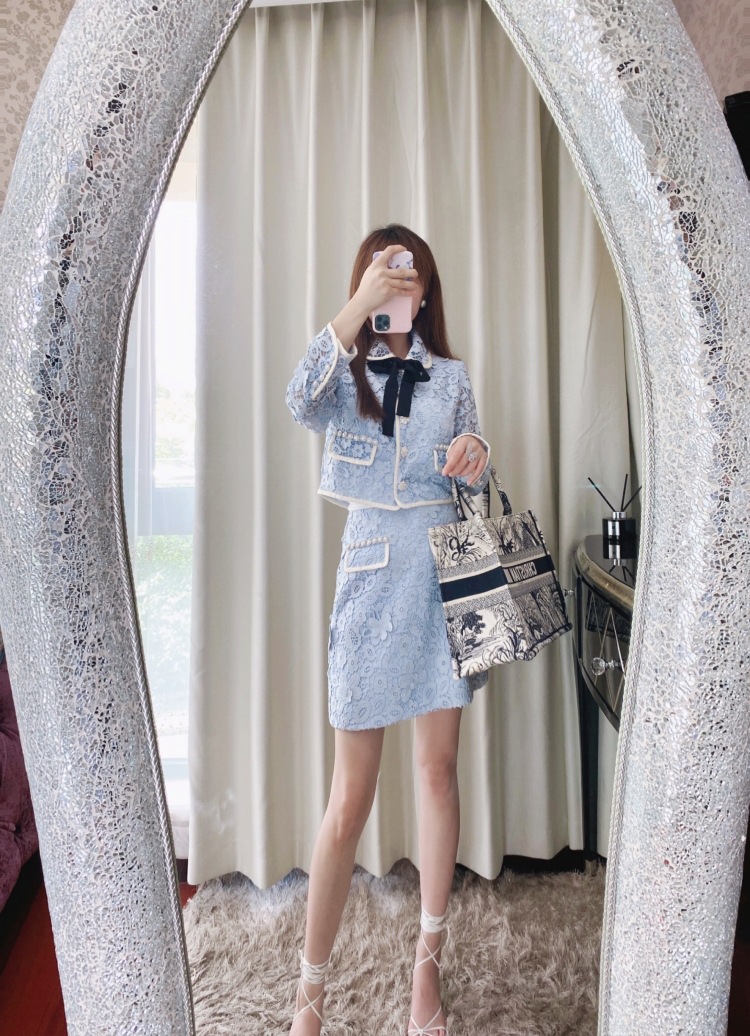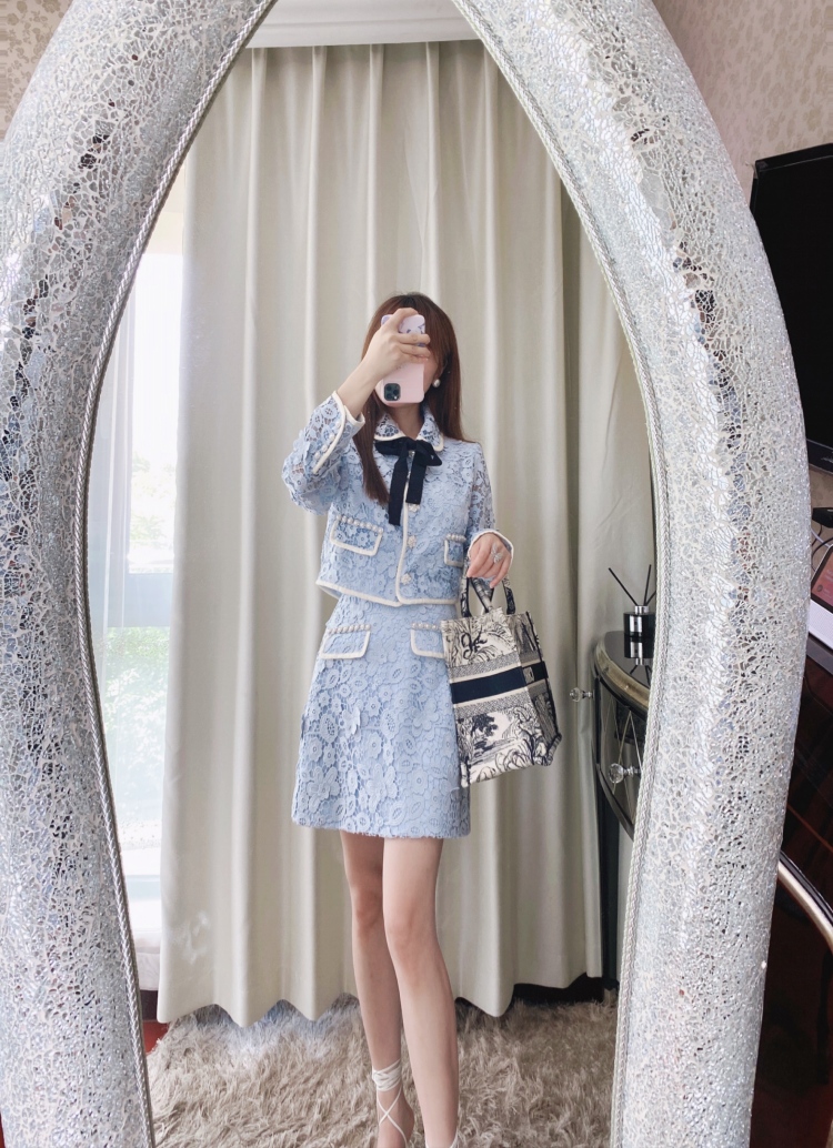 Bộ trang phục hai mảnh này mang phong cách cổ điển, nổi bật với phần cổ nơ và chi tiết ren được dệt tỉ mỉ tạo hình khối. Thiết kế bao gồm một áo kiểu và một chân váy ngắn, rất phù hợp để mặc trong tiết trời mát mẻ. Bạn có thể phối cùng áo thun hoặc áo len bên trong để giữ ấm. Đây là một lựa chọn nhẹ nhàng, thanh lịch cho những dịp đi làm hoặc gặp mặt bạn bè. | Tên sản phẩm: Đồ Bộ Nữ Chất Liệu Ren Cả Bộ 2 Món Kẻ Caro Hàng Mùa Xuân Thu Đông Phục Cổ Cổ Điển - Thời Trang Nữ | Mã sản phẩm: a9255 - Giá: 1.140.000đ | Mã nhà sản xuất: HADN-G04Hình ảnh sản phẩm