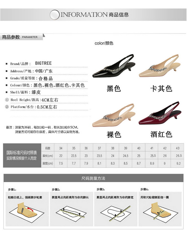 Đôi giày nữ này có kiểu dáng mũi nhọn thanh lịch, phù hợp cho nhiều dịp. Chất da bóng kết hợp cùng các hạt đá lấp lánh tạo điểm nhấn tinh tế. Đế hình nón vừa phải giúp nâng dáng người một cách thoải mái. Thiết kế cổ thấp và dây cố định ở gót chân giúp bạn dễ dàng xỏ chân vào và điều chỉnh vừa vặn. Đây là mẫu giày dễ phối đồ, mang đến sự dễ chịu khi sử dụng cả ngày. | Tên sản phẩm: Giày Cao Gót Nữ Gắn Đá Mũi Nhọn Phong Cách Âu Mỹ - Giày Dép Nữ | Mã sản phẩm: A9259 - Giá: 750.000đ | Mã nhà sản xuất: PITYIN-G02Hình ảnh sản phẩm