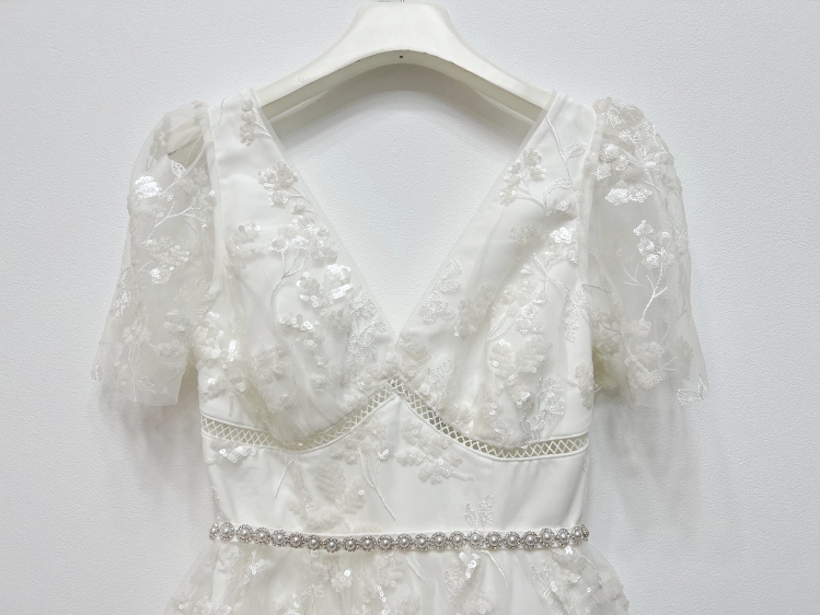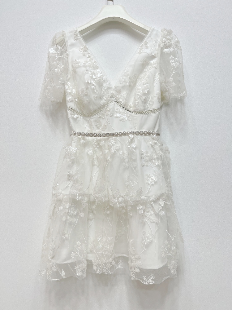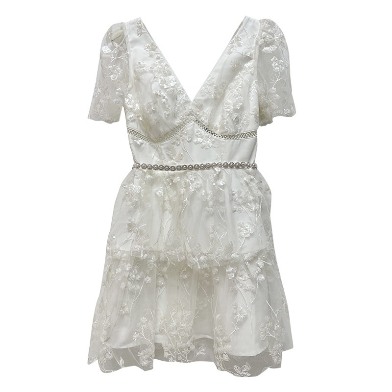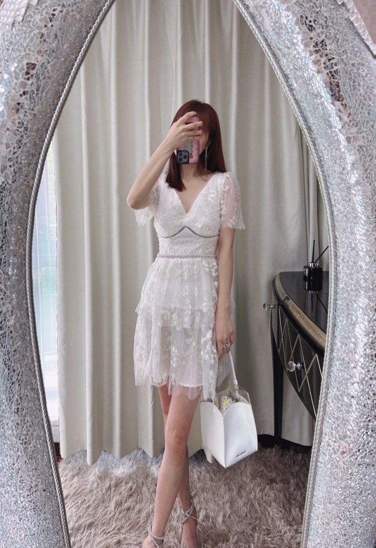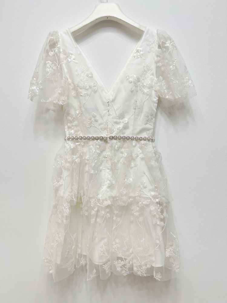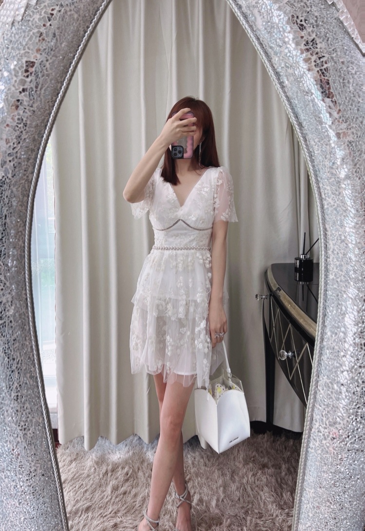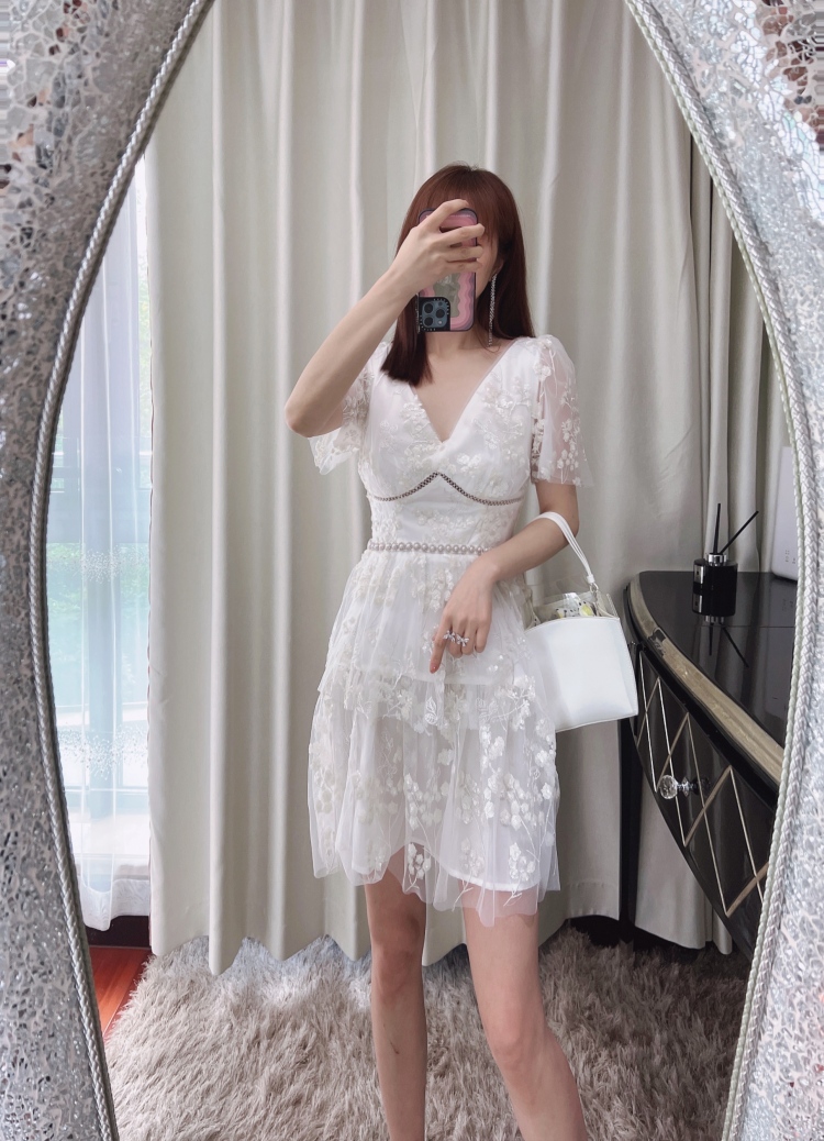 Chiếc đầm ngắn mang phong cách dễ thương với phần cổ chữ V tôn dáng. Đầm có tay ngắn, màu trắng điểm thêu hoa anh đào tinh xảo trên lớp voan mỏng, tạo thành những tầng xòe như bánh ngọt. Đi kèm là dây chuyền hạt ngọc tr để thắt eo. Mặc kèm áo lá hoặc áo khoác mỏng để tạo vẻ ngoài ấn tượng cho các buổi gặp gỡ. | Tên sản phẩm: Váy Đầm Liền Thân Nữ Lưới Mỏng Thêu Họa Tiết Hoa Cổ Chữ V - Thời Trang Nữ | Mã sản phẩm: a9269 - Giá: 1.830.000đ | Mã nhà sản xuất: HADN-G05Hình ảnh sản phẩm