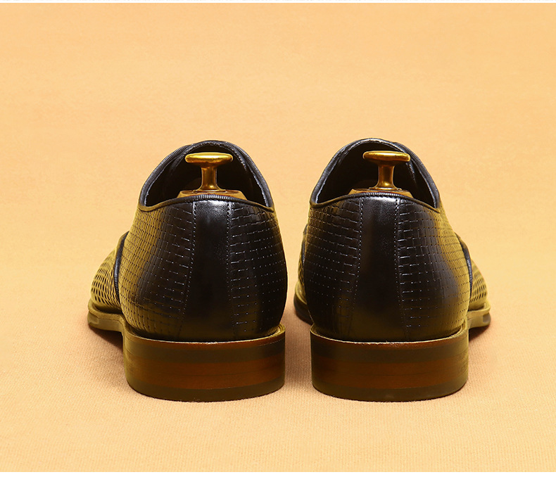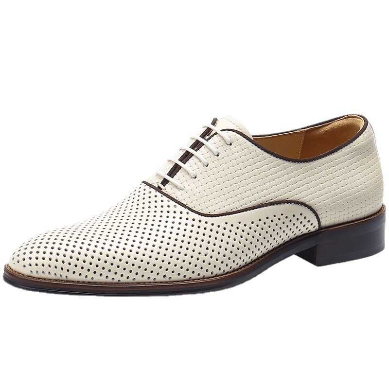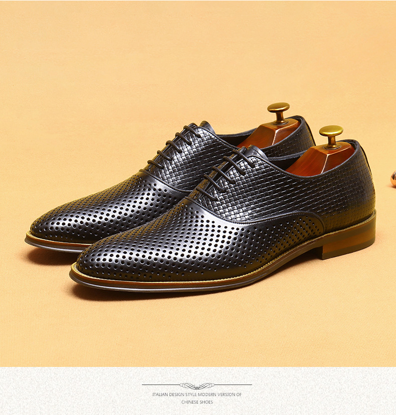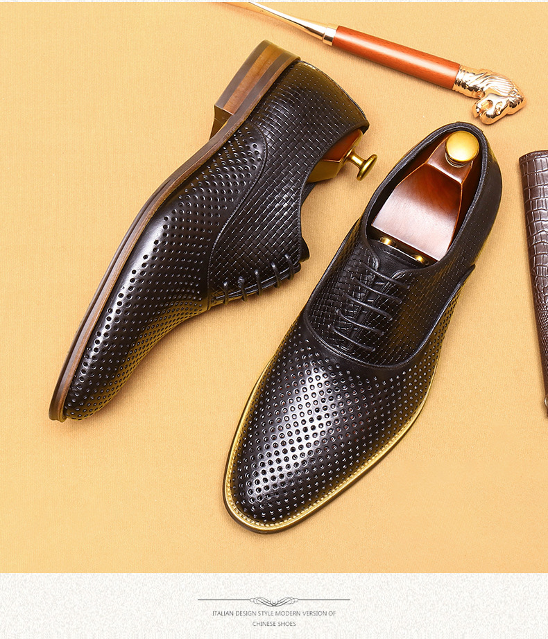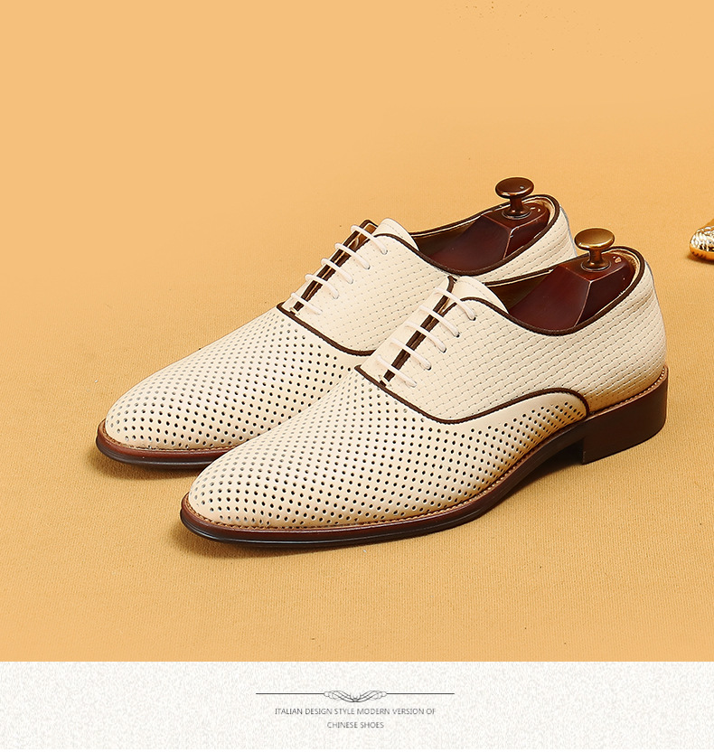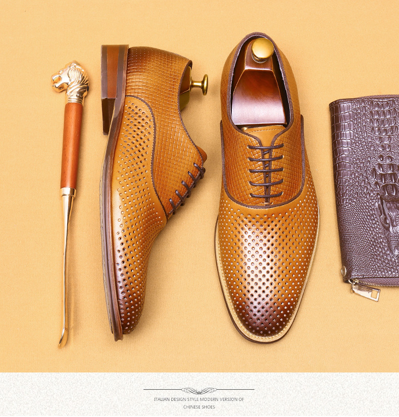 Giày da thật dành cho nam, thiết kế kiểu Oxford với mũi nhọn thanh lịch, phù hợp cho văn phòng hoặc dùng hằng ngày. Điểm nổi bật là phần trên làm từ da bò tự nhiên, kết hợp các chi tiết khoét lỗ tinh tế giúp không khí lưu thông tốt, mang lại cảm giác thoáng mát, dễ chịu cho đôi chân trong những ngày hè. Có thể phối hợp với nhiều loại trang phục khác nhau, từ quần âu cho đến quần vải thông thường. | Tên sản phẩm: Giày Da Nam Chất Liệu Da Bò Mũi Nhọn Thoáng Khí Hàng Mùa Hè - Giày Dép Nam | Mã sản phẩm: A9277 - Giá: 2.600.000đ | Mã nhà sản xuất: SHERAW-G06Hình ảnh sản phẩm