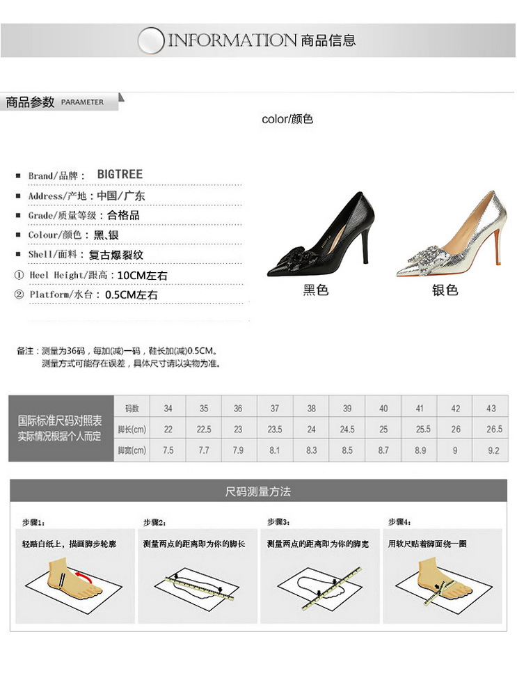 Đôi giày này mang phong cách cổ điển với phần mũi nhọn thanh lịch. Sản phẩm có kiểu dáng hở mũi chân, kết hợp nơ trang trí nhỏ xinh ở phía trước. Phần gót được thiết kế cao và thon, tôn dáng người đi. Chất liệu bề mặt có họa tiết vân nứt độc đáo, tạo điểm nhấn riêng. Bạn có thể dễ dàng phối cùng nhiều loại trang phục khác nhau để tạo nên vẻ đẹp quyến rũ và tinh tế. | Tên sản phẩm: Giày Cao Gót Nữ Thắt Nơ Bướm Mũi Nhọn Gót Nhọn Phong Cách Hàn Quốc - Giày Dép Nữ | Mã sản phẩm: A9282 - Giá: 700.000đ | Mã nhà sản xuất: PITYIN-G02Hình ảnh sản phẩm