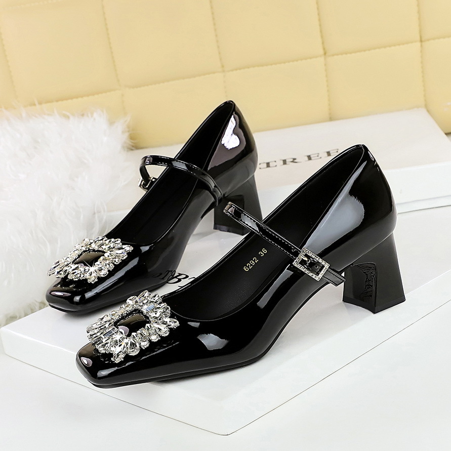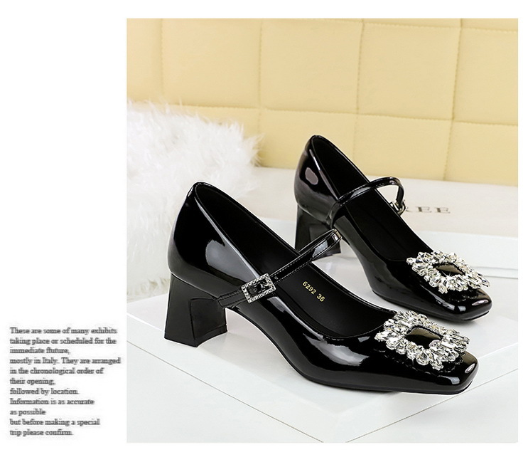Đôi giày này mang phong cách châu Âu cổ điển với thiết kế dây ngang mảnh m. Sản phẩm có phần mũi vuông nhẹ nhàng, cổ thấp và đế thô vừa phải giúp tạo dáng đẹp mà vẫn thoải mái. Bề mặt giày bóng mịn được điểm xuyết bằng viên đá lấp lánh tinh tế trên dây đeo. Bạn có thể dễ dàng phối cùng váy liền hay quần âu để tạo điểm nhấn cho trang phục hàng ngày. | Tên sản phẩm: Giày Cao Gót Nữ Gắn Đá Gót Vuông Phong Cách Âu Mỹ - Giày Dép Nữ | Mã sản phẩm: A9298 - Giá: 700.000đ | Mã nhà sản xuất: PITYIN-G02Hình ảnh sản phẩm