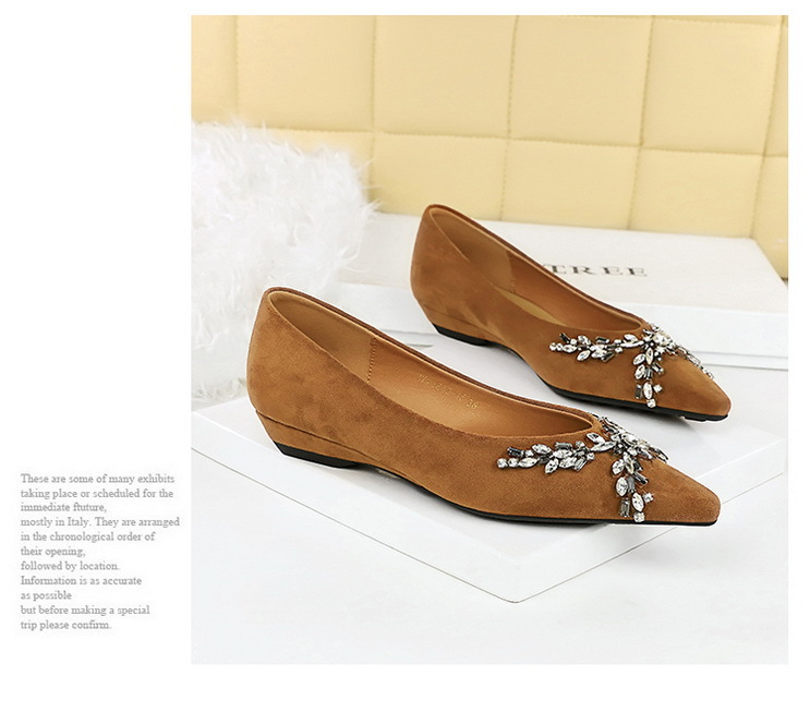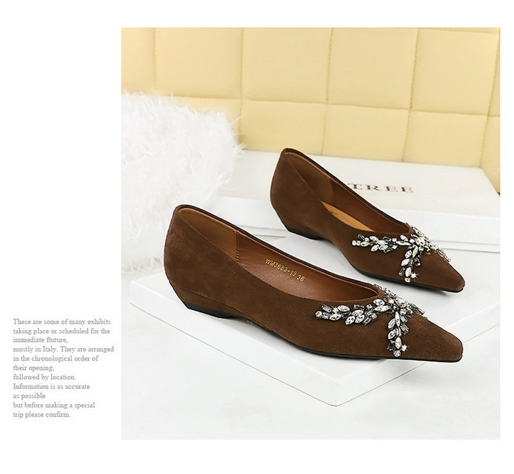 Đôi giày nữ này có kiểu dáng thanh lịch, phù hợp cho nhiều dịp. Mũi giày nhọn và cổ thấp tôn dáng bàn chân thon gọn. Chất liệu da mềm mịn cho cảm giác dễ chịu. Điểm nhấn là dây chuyền đá lấp lánh trang trí tinh tế. Đế thấp vừa phải giúp nâng đỡ bàn chân, tạo dáng đi thoải mái mà vẫn thanh thoát. Dễ dàng kết hợp với nhiều loại trang phục khác nhau. | Tên sản phẩm: Giày Cao Gót Nữ Gắn Đá Mũi Nhọn Đế Xuồng Phong Cách Hàn Quốc - Giày Dép Nữ | Mã sản phẩm: A9306 - Giá: 700.000đ | Mã nhà sản xuất: PITYIN-G02Hình ảnh sản phẩm