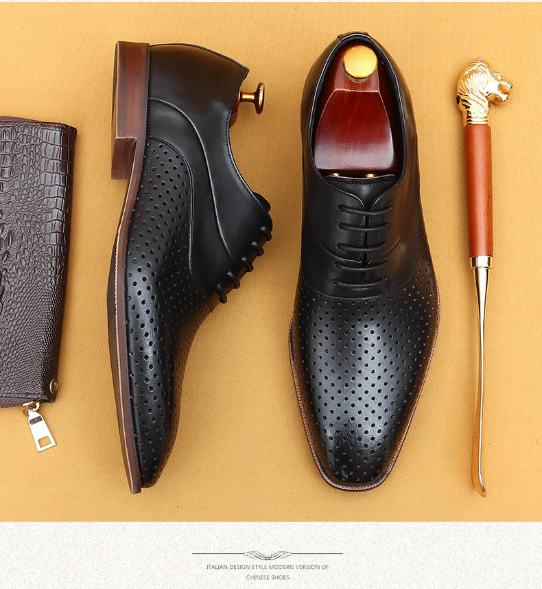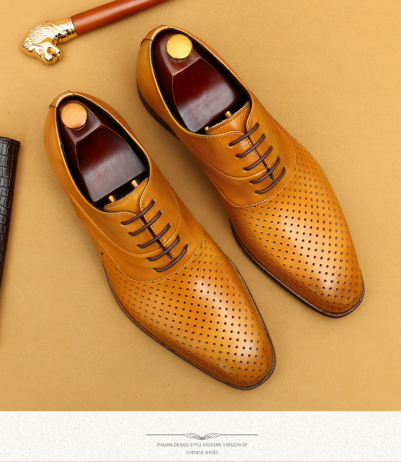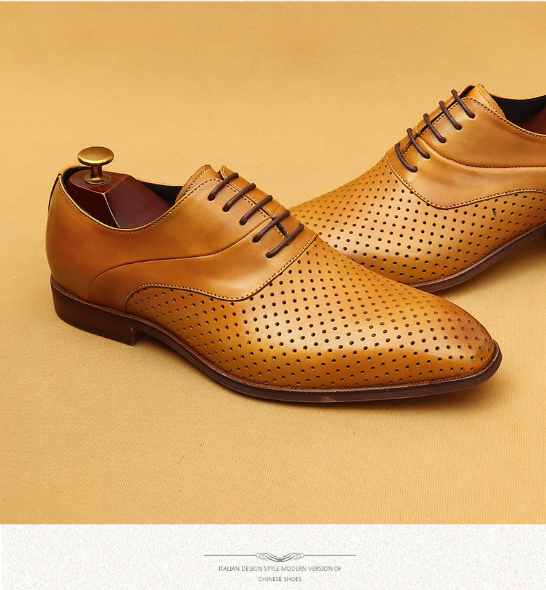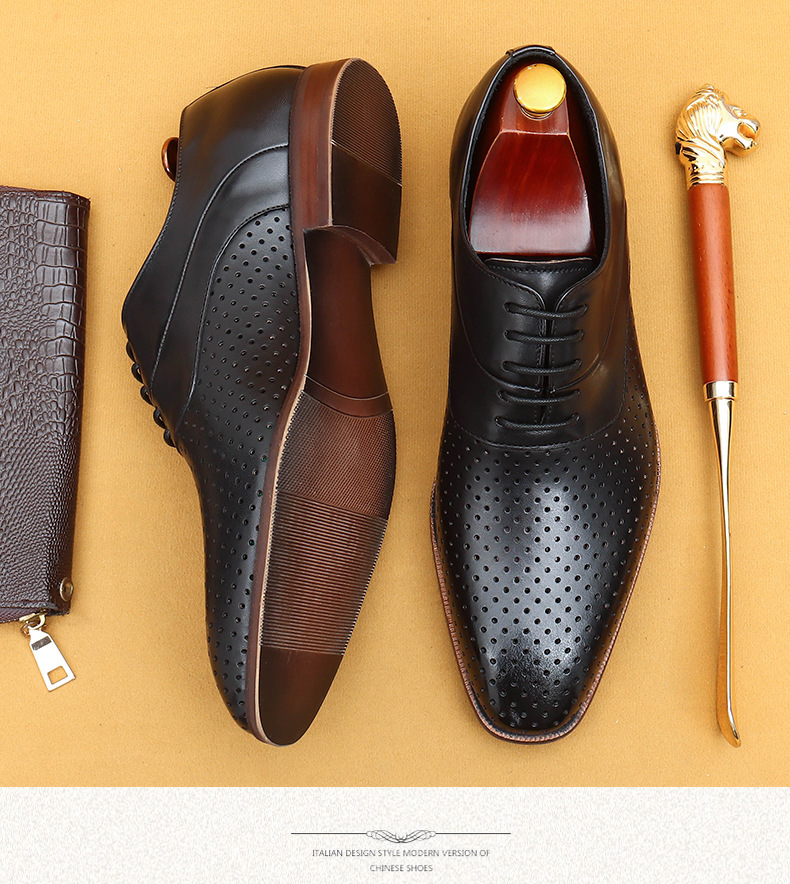 Giày da thật dành cho nam, kiểu dáng phù hợp khi làm việc hoặc lúc thư giãn. Sản phẩm có những lỗ thông hơi nhỏ giúp đôi chân luôn khô ráo và mát mẻ trong những ngày hè. Chất liệu da mềm mang lại cảm giác dễ chịu khi mang trong thời gian dài. Dễ dàng phối cùng nhiều loại trang phục khác nhau như quần tây hay quần âu. Chỉ cần vệ sinh nhẹ nhàng bằng khăn mềm để giữ giày luôn sạch đẹp. | Tên sản phẩm: Giày Da Nam Chất Liệu Da Bò Thoáng Khí Hàng Mùa Hè - Giày Dép Nam | Mã sản phẩm: A9324 - Giá: 2.870.000đ | Mã nhà sản xuất: SHERAW-G06Hình ảnh sản phẩm