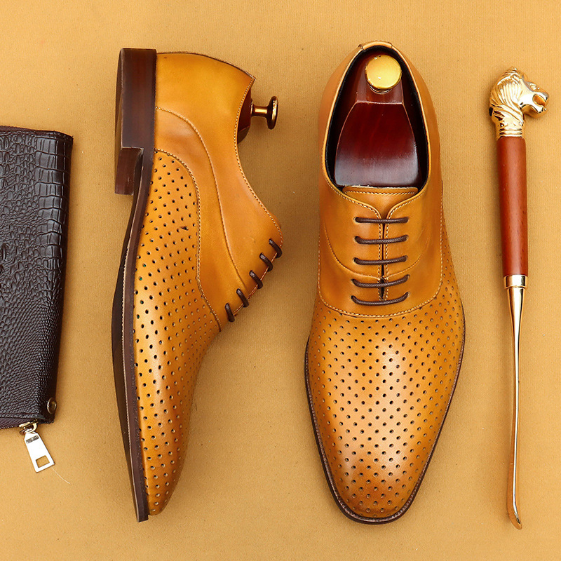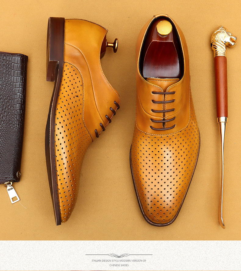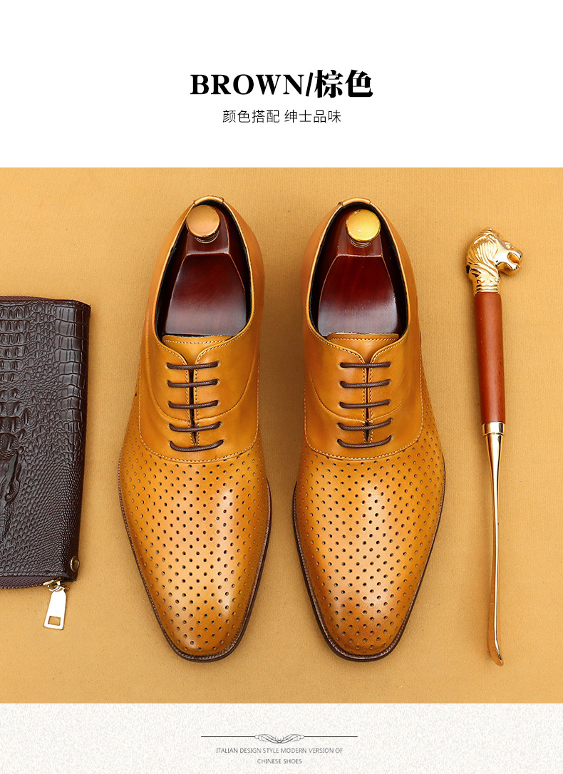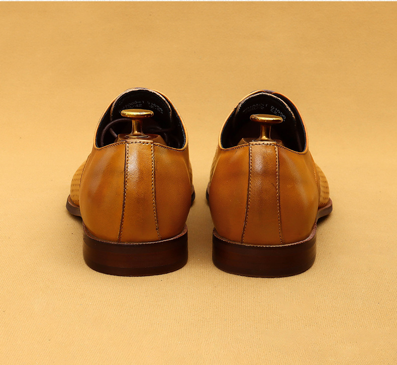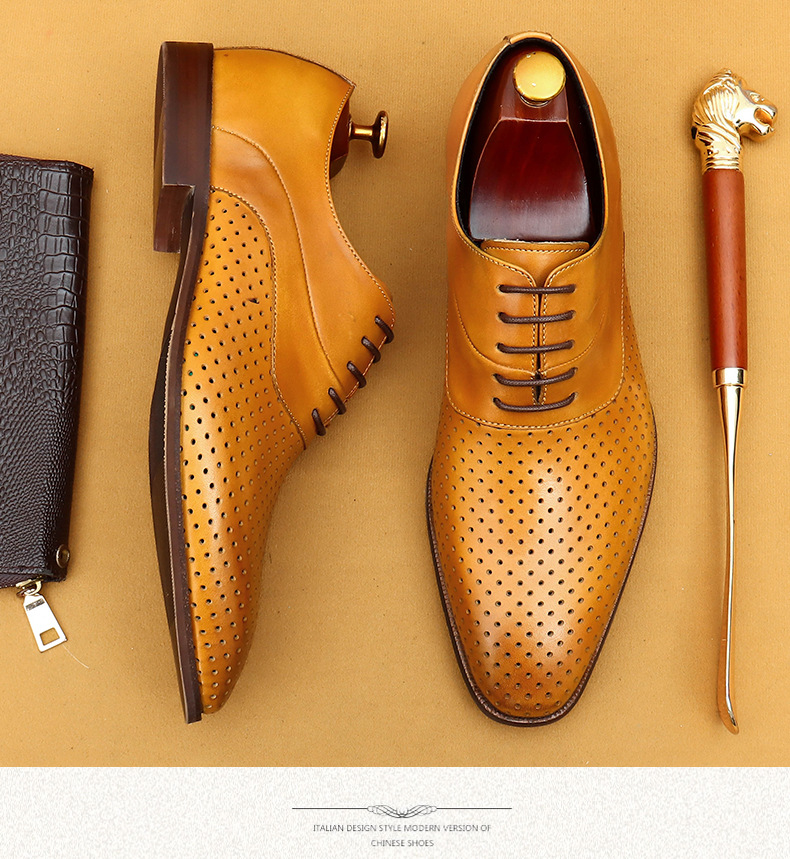 Giày da thật dành cho nam, kiểu dáng phù hợp khi làm việc hoặc lúc thư giãn. Sản phẩm có những lỗ thông hơi nhỏ giúp đôi chân luôn khô ráo và mát mẻ trong những ngày hè. Chất liệu da mềm mang lại cảm giác dễ chịu khi mang trong thời gian dài. Dễ dàng phối cùng nhiều loại trang phục khác nhau như quần tây hay quần âu. Chỉ cần vệ sinh nhẹ nhàng bằng khăn mềm để giữ giày luôn sạch đẹp. | Tên sản phẩm: Giày Da Nam Chất Liệu Da Bò Thoáng Khí Hàng Mùa Hè - Giày Dép Nam | Mã sản phẩm: A9324 - Giá: 2.870.000đ | Mã nhà sản xuất: SHERAW-G06Hình ảnh sản phẩm