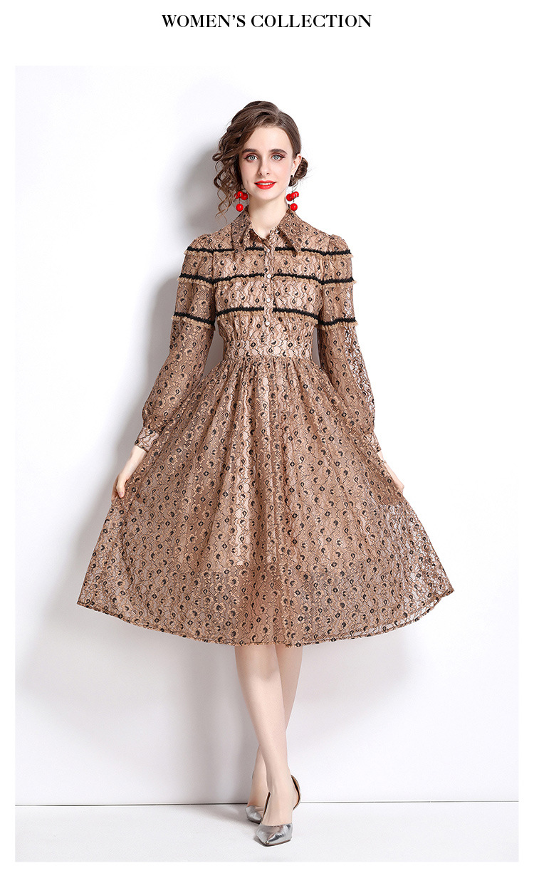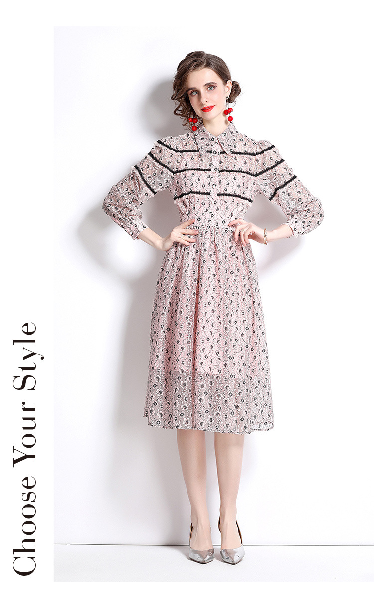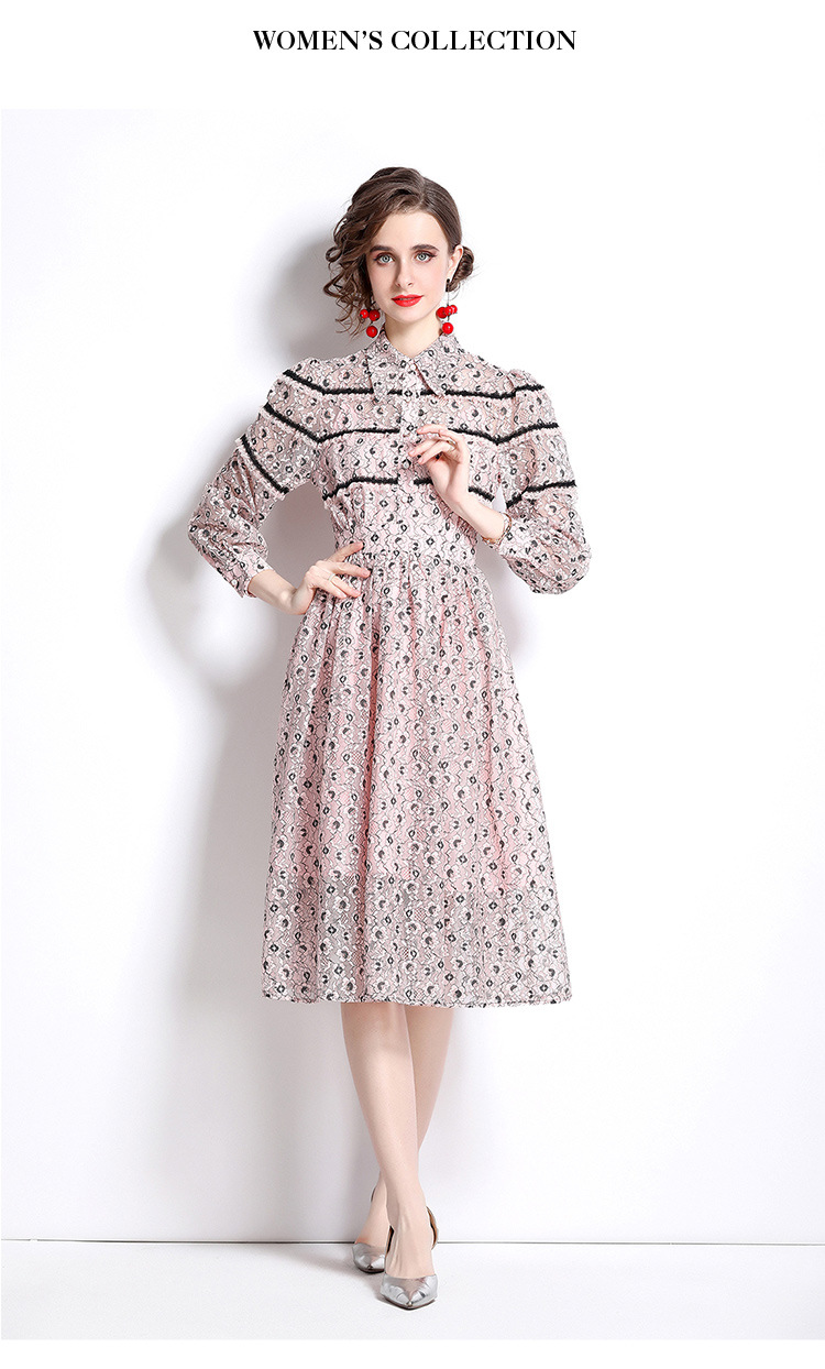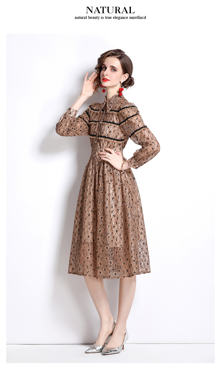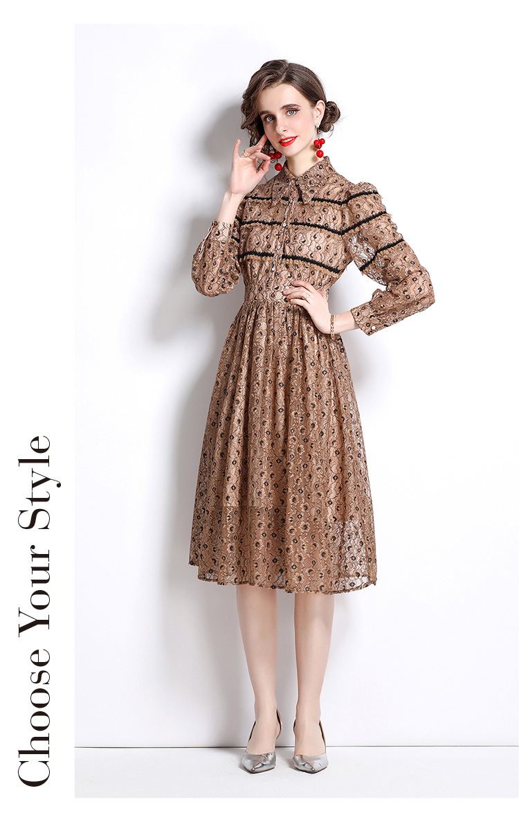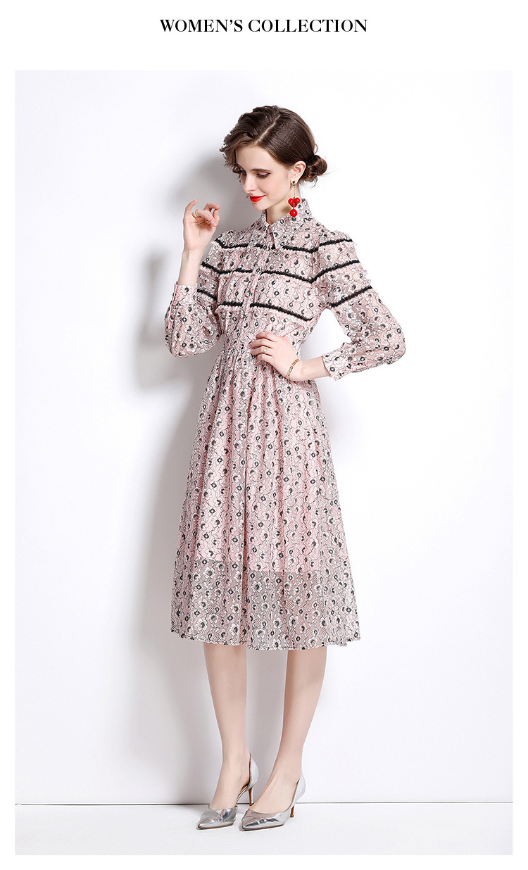 Chiếc váy mới cho nữ, kiểu dáng dài qua gối với tay áo dài. Thiết kế ôm eo nhẹ nhàng tôn dáng, kết hợp cùng chất vải xếp ly và họa tiết ren mỏng manh. Phong cách mang nét cổ điển, thanh lịch kiểu Pháp, rất phù hợp cho mùa xuân. Có thể mặc đi làm, dự tiệc nhẹ hoặc những dịp gặp mặt thân mật. Dễ dàng phối cùng giày cao gót hay giày đế bằng để tạo nên những vẻ đẹp riêng. | Tên sản phẩm: Váy Đầm Liền Thân Nữ Chất Liệu Ren Dài Quá Gối Hàng Mùa Xuân Thu Đông Phục Cổ Cổ Điển - Thời Trang Nữ | Mã sản phẩm: A9326 - Giá: 1.000.000đ | Mã nhà sản xuất: GUDG-G03Hình ảnh sản phẩm