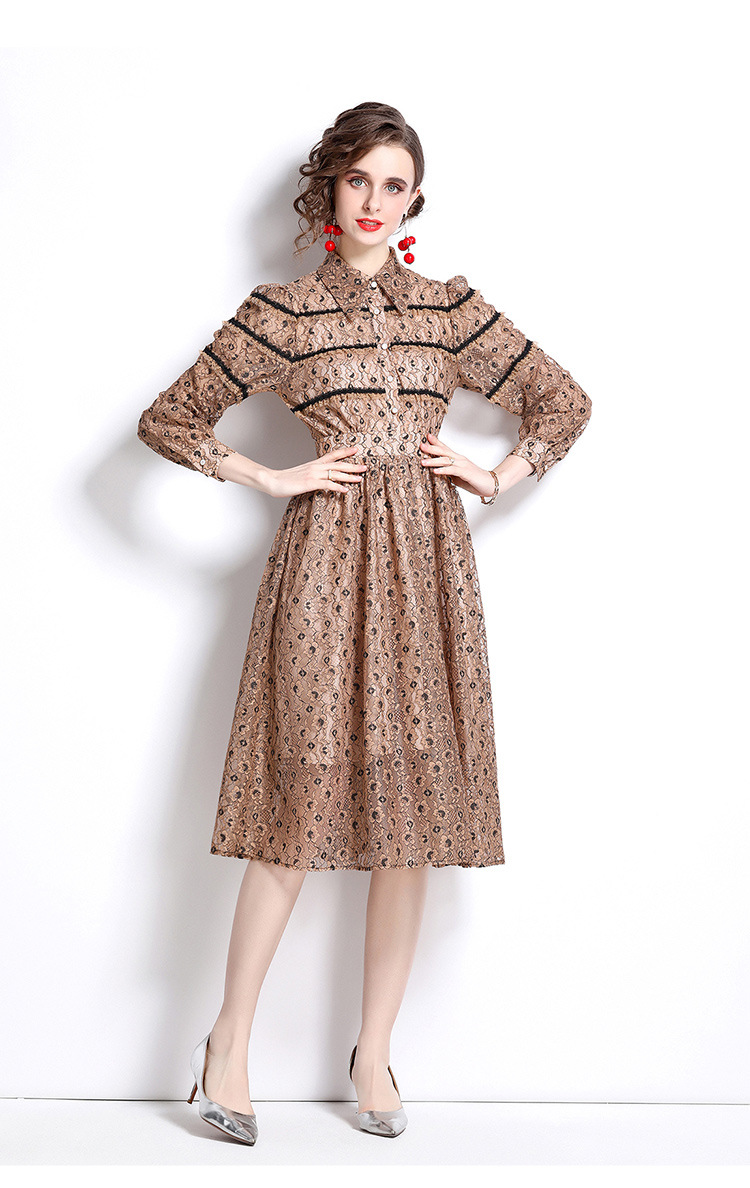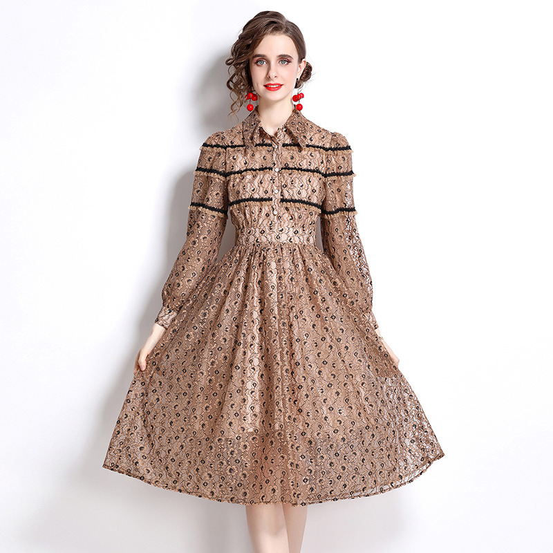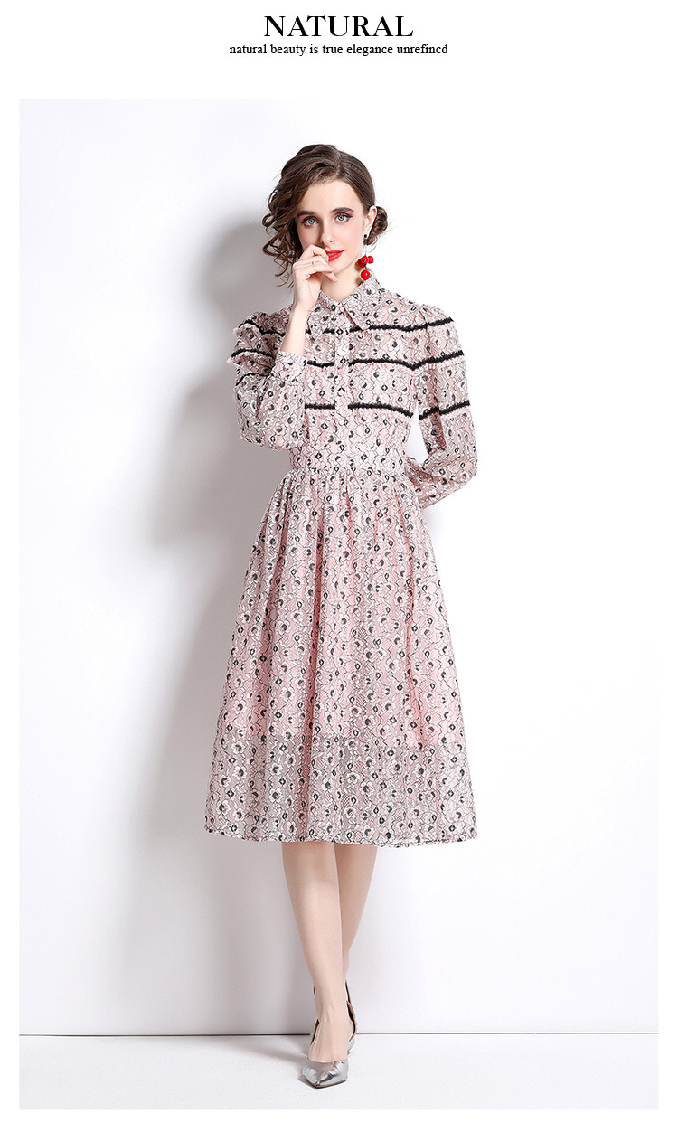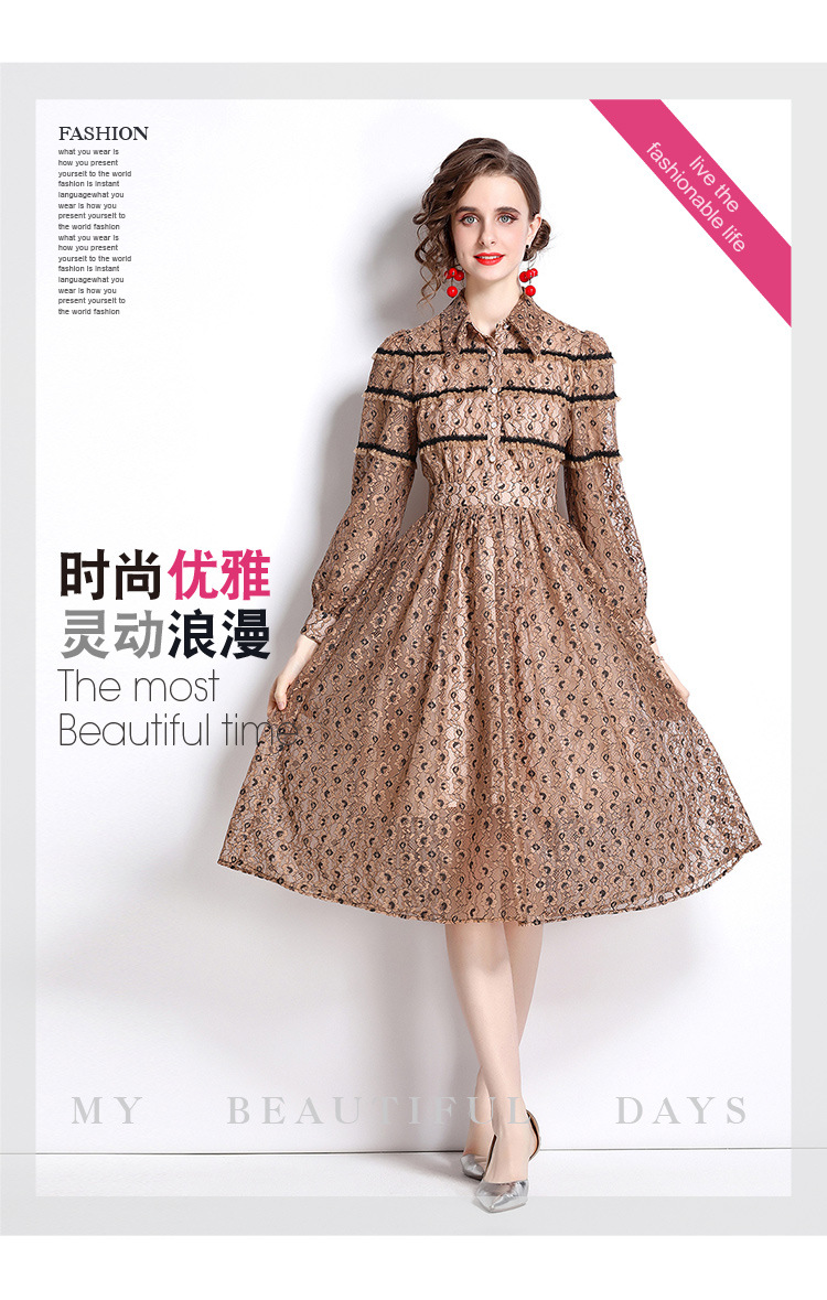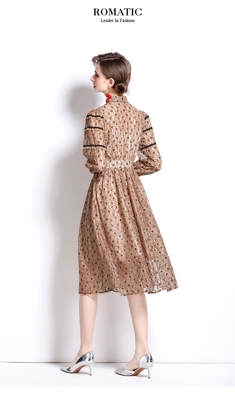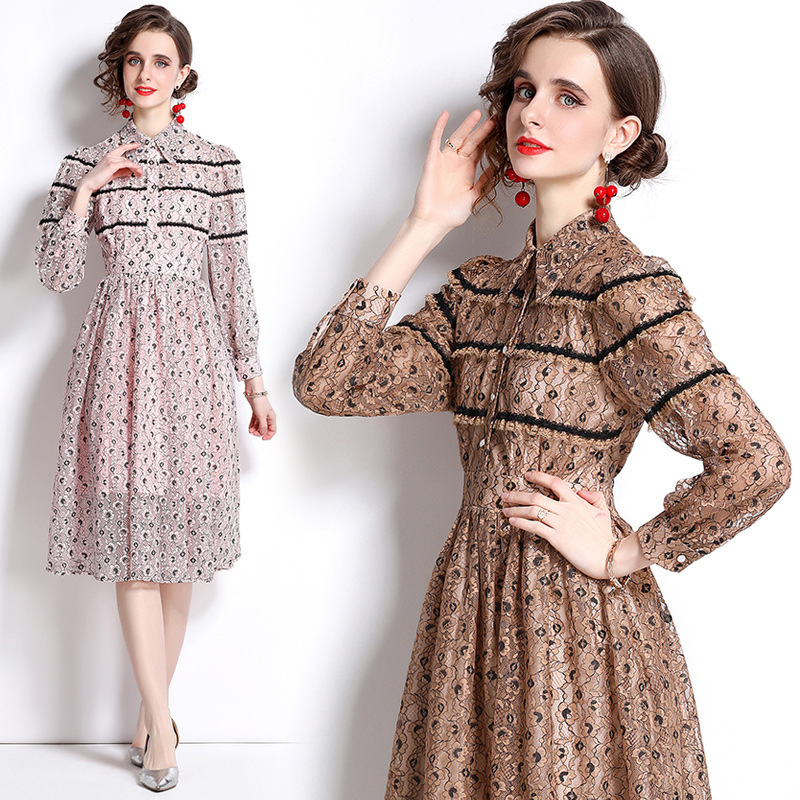 Chiếc váy mới cho nữ, kiểu dáng dài qua gối với tay áo dài. Thiết kế ôm eo nhẹ nhàng tôn dáng, kết hợp cùng chất vải xếp ly và họa tiết ren mỏng manh. Phong cách mang nét cổ điển, thanh lịch kiểu Pháp, rất phù hợp cho mùa xuân. Có thể mặc đi làm, dự tiệc nhẹ hoặc những dịp gặp mặt thân mật. Dễ dàng phối cùng giày cao gót hay giày đế bằng để tạo nên những vẻ đẹp riêng. | Tên sản phẩm: Váy Đầm Liền Thân Nữ Chất Liệu Ren Dài Quá Gối Hàng Mùa Xuân Thu Đông Phục Cổ Cổ Điển - Thời Trang Nữ | Mã sản phẩm: A9326 - Giá: 1.000.000đ | Mã nhà sản xuất: GUDG-G03Hình ảnh sản phẩm