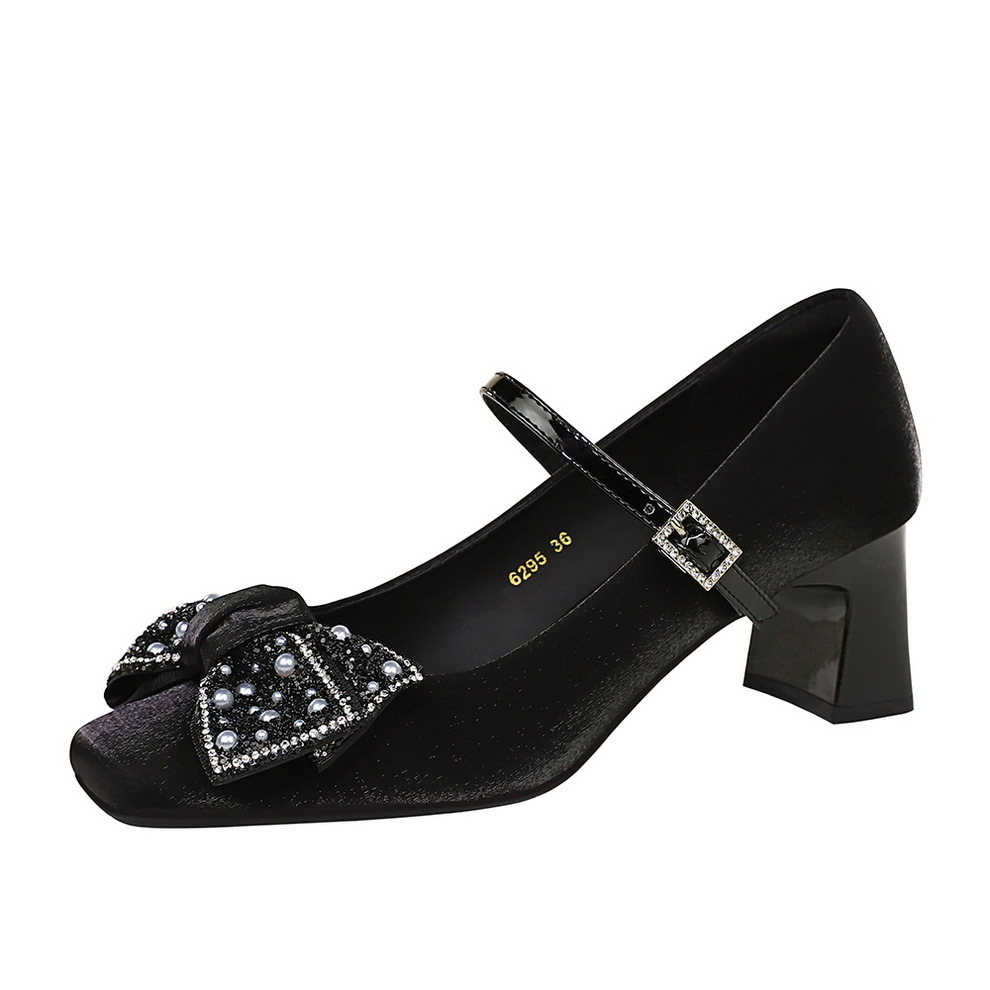 Đôi giày này có phần gót vuông vừa phải, giúp tạo dáng đẹp mà vẫn thoải mái khi di chuyển. Mũi giày vuông nhẹ nhàng, đi kèm dây đeo ngang có khóa cài tiện lợi. Điểm nhấn là nơ kết hợp đá lấp lánh ở phía trước, trên chất liệu vải mềm mại. Kiểu dáng cổ điển, dễ dàng phối hợp với nhiều trang phục khác nhau. Chỉ cần xỏ chân vào, cài khóa và bạn đã sẵn sàng để bước đi. | Tên sản phẩm: Giày Cao Gót Nữ Thắt Nơ Bướm Gắn Đá Gót Vuông Quai Hậu - Giày Dép Nữ | Mã sản phẩm: A9354 - Giá: 650.000đ | Mã nhà sản xuất: PITYIN-G02Hình ảnh sản phẩm