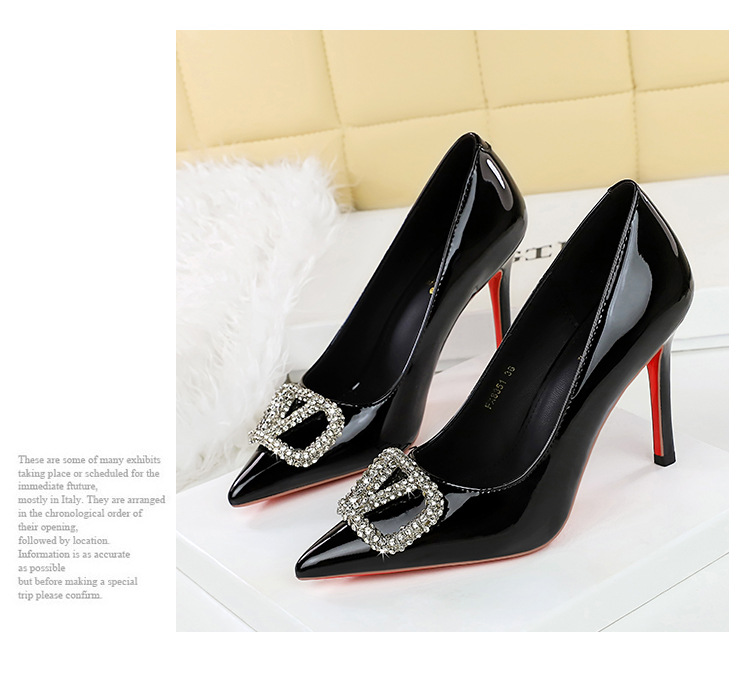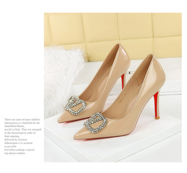 Đôi giày cao gót này có phần mũi nhọn và cổ giày thấp, tạo nên vẻ thanh thoát. Điểm nhấn là khóa kim loại gắn hạt lấp lánh, thêm phần nổi bật. Chất liệu bề mặt bóng đẹp, dễ dàng vệ sinh. Kiểu dáng phù hợp cho các buổi tiệc hoặc sự kiện. Bạn chỉ cần xỏ chân vào, cài khóa và điều chỉnh cho vừa vặn là có thể tự tin bước đi. | Tên sản phẩm: Giày Cao Gót Nữ Gắn Đá Mũi Nhọn Gót Nhọn Phong Cách Âu Mỹ - Giày Dép Nữ | Mã sản phẩm: A9360 - Giá: 750.000đ | Mã nhà sản xuất: PITYIN-G02Hình ảnh sản phẩm