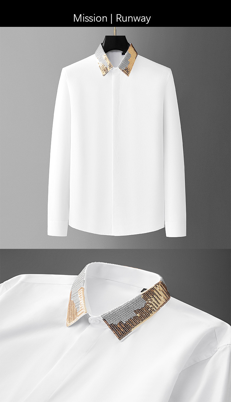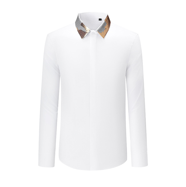 Áo sơ mi nam tay dài có thiết kế đơn giản và hiện đại. Điểm nhấn nổi bật là phần cổ áo được thêu tinh xảo bằng chỉ bạc và hạt cườm lấp lánh, tạo nên vẻ đẹp tinh tế mà không cầu kỳ. Áo được may với kiểu dáng cơ bản, dễ dàng phối hợp cùng nhiều loại trang phục khác nhau. Chất vải mềm mại, thoáng mát mang lại sự thoải mái khi mặc cả ngày dài. Sản phẩm phù hợp cho nhiều dịp sử dụng khác nhau. | Tên sản phẩm: Áo Sơ Mi Nam Dài Tay Thêu Họa Tiết Hoa - Thời Trang Nam | Mã sản phẩm: A9410 - Giá: 1.380.000đ | Mã nhà sản xuất: FODAR-G04Hình ảnh sản phẩm
