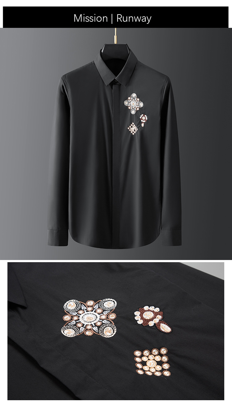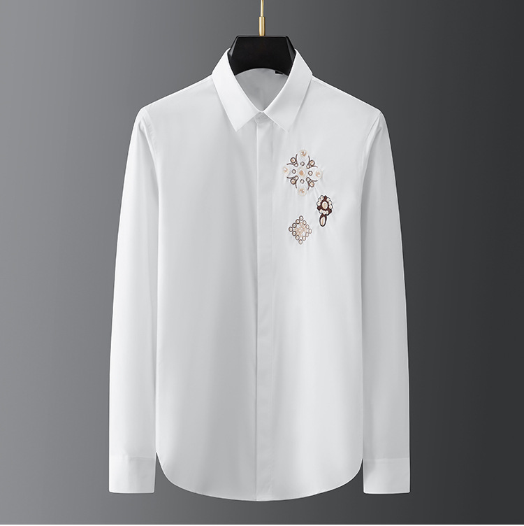 Áo sơ mi nam tay dài mang phong cách trẻ trung, nổi bật với họa tiết thêu hoa lá tinh xảo trên nền vải trơn. Thiết kế đơn giản nhưng có điểm nhấn, phù hợp cho các bạn trẻ yêu thích thời trang phóng khoáng. Chất liệu vải mềm mại, thoáng mát giúp người mặc cảm thấy dễ chịu. Có thể mặc đi làm, đi chơi hoặc dự tiệc nhẹ. Dễ dàng phối với quần jean hay quần âu để tạo nên những bộ trang phục hài hòa. | Tên sản phẩm: Áo Sơ Mi Nam Dài Tay Thêu Họa Tiết Hoa Phong Cách Trẻ Trung Phong Cách Âu Mỹ - Thời Trang Nam | Mã sản phẩm: A9415 - Giá: 1.380.000đ | Mã nhà sản xuất: FODAR-G04Hình ảnh sản phẩm