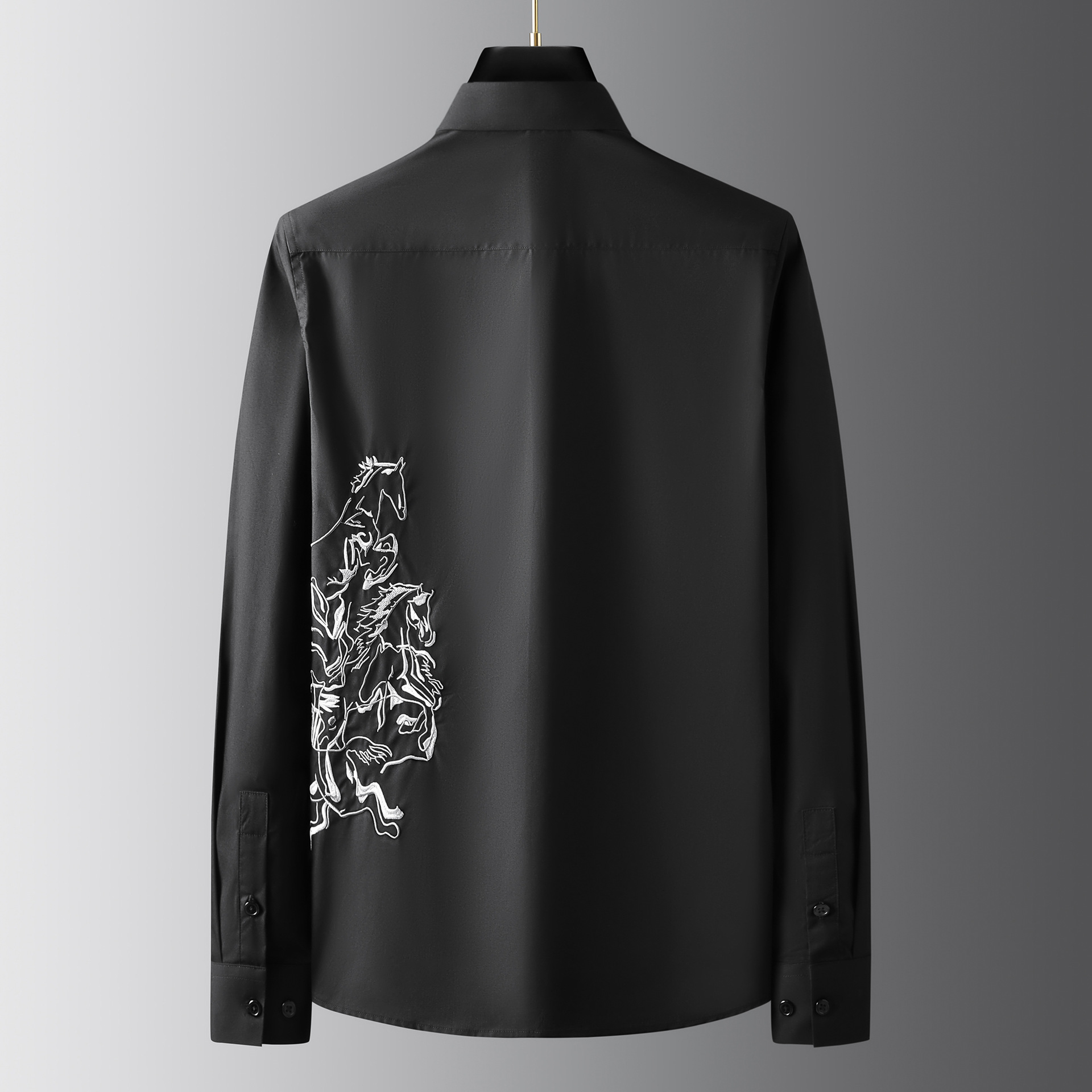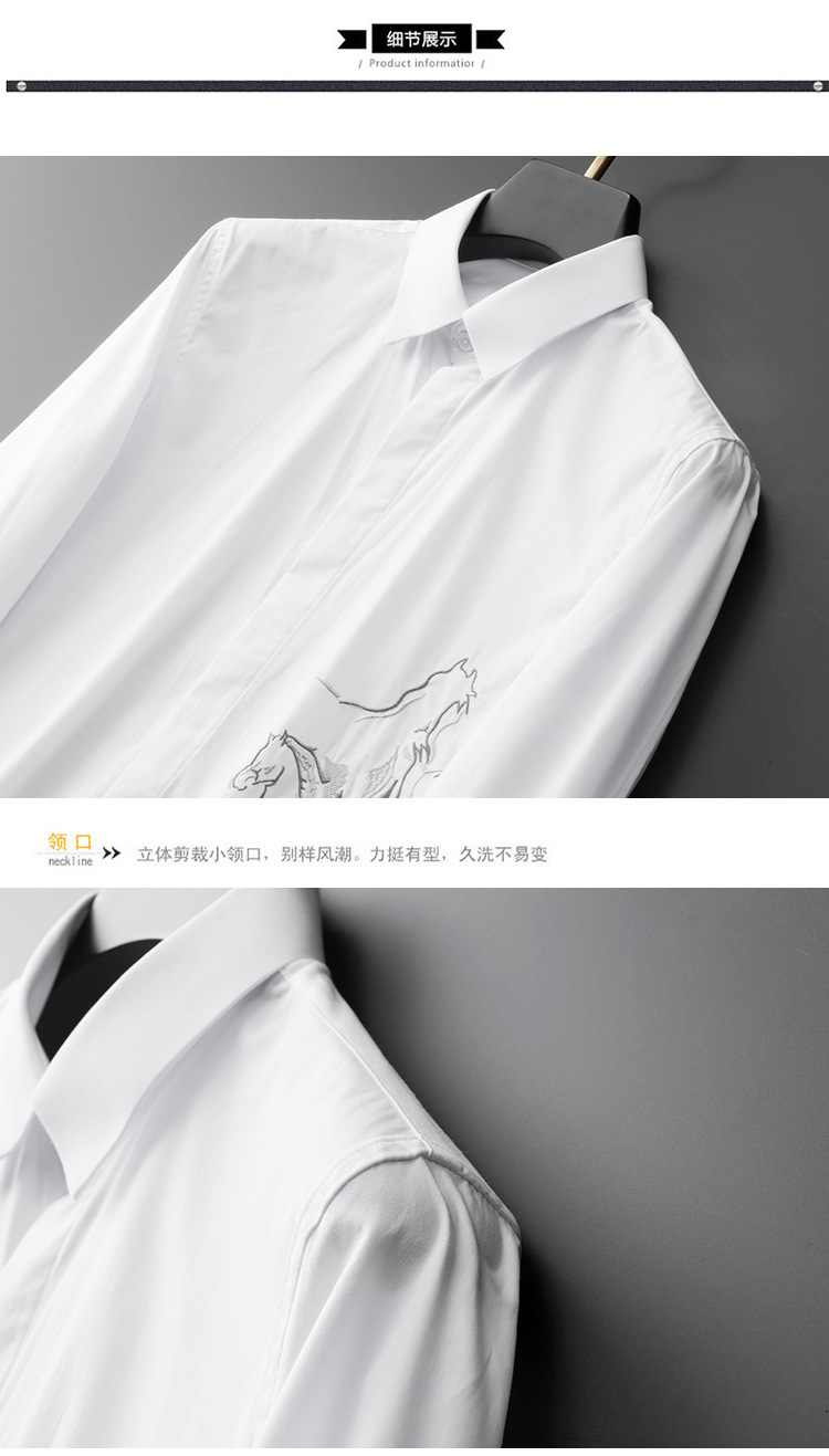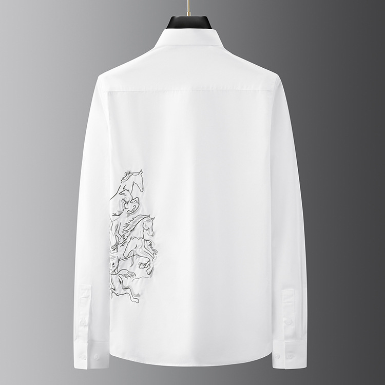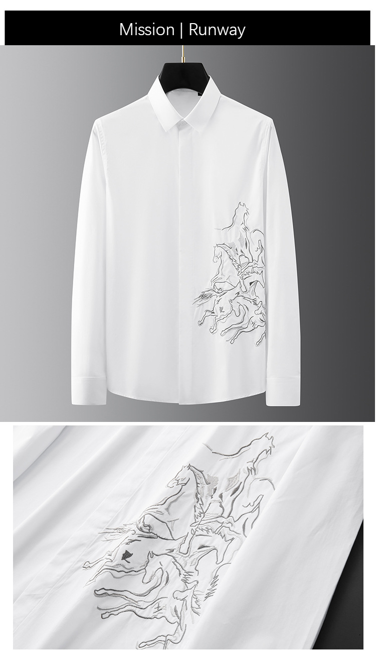 Áo sơ mi tay dài này có kiểu dáng ôm vừa vặn, phù hợp cho các bạn trẻ. Điểm nổi bật là hình thêu đàn ngựa được đặt cân đối ở cả mặt trước và mặt sau áo, tạo nên một điểm nhấn sinh động và khỏe khoắn. Chất vải mềm mại, thoáng mát giúp người mặc cảm thấy dễ chịu. Bạn có thể mặc áo đi làm, đi chơi hoặc dự các cuộc gặp mặt thông thường. Phong cách thiết kế mang hơi hướng hiện đại, trẻ trung. | Tên sản phẩm: Áo Sơ Mi Nam Dáng Ôm Thêu Họa Tiết Hoa Phong Cách Trẻ Trung Phong Cách Âu Mỹ - Thời Trang Nam | Mã sản phẩm: A9425 - Giá: 1.420.000đ | Mã nhà sản xuất: FODAR-G04Hình ảnh sản phẩm