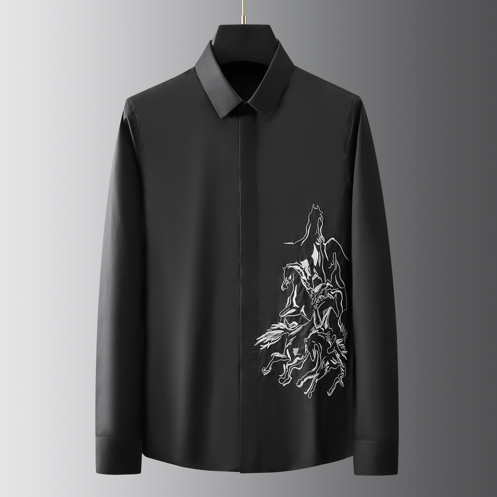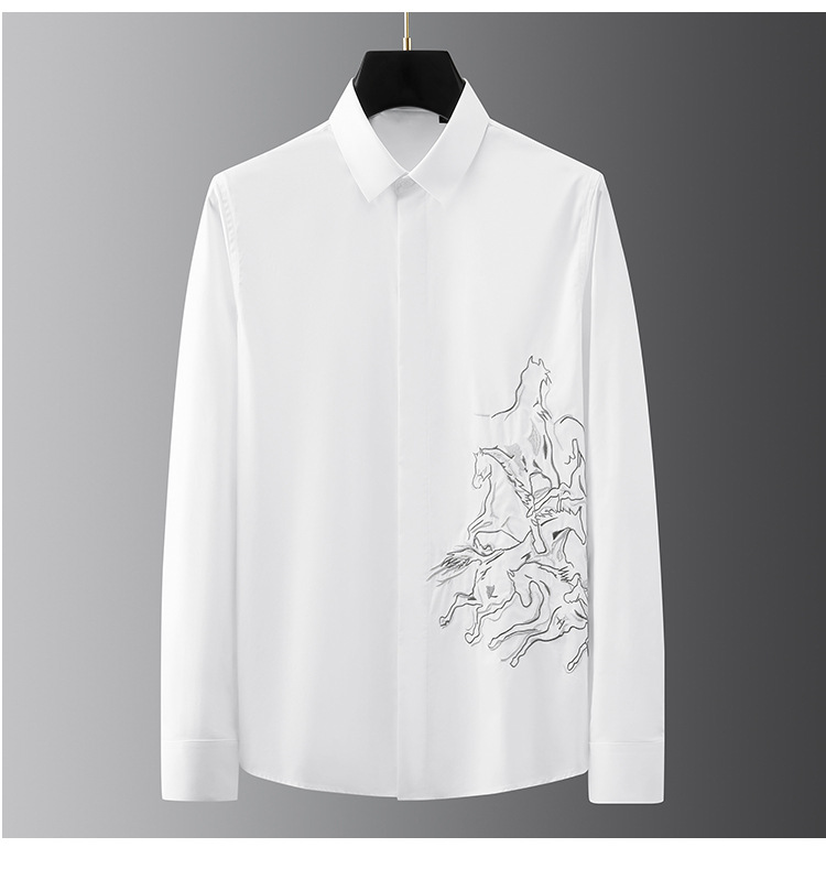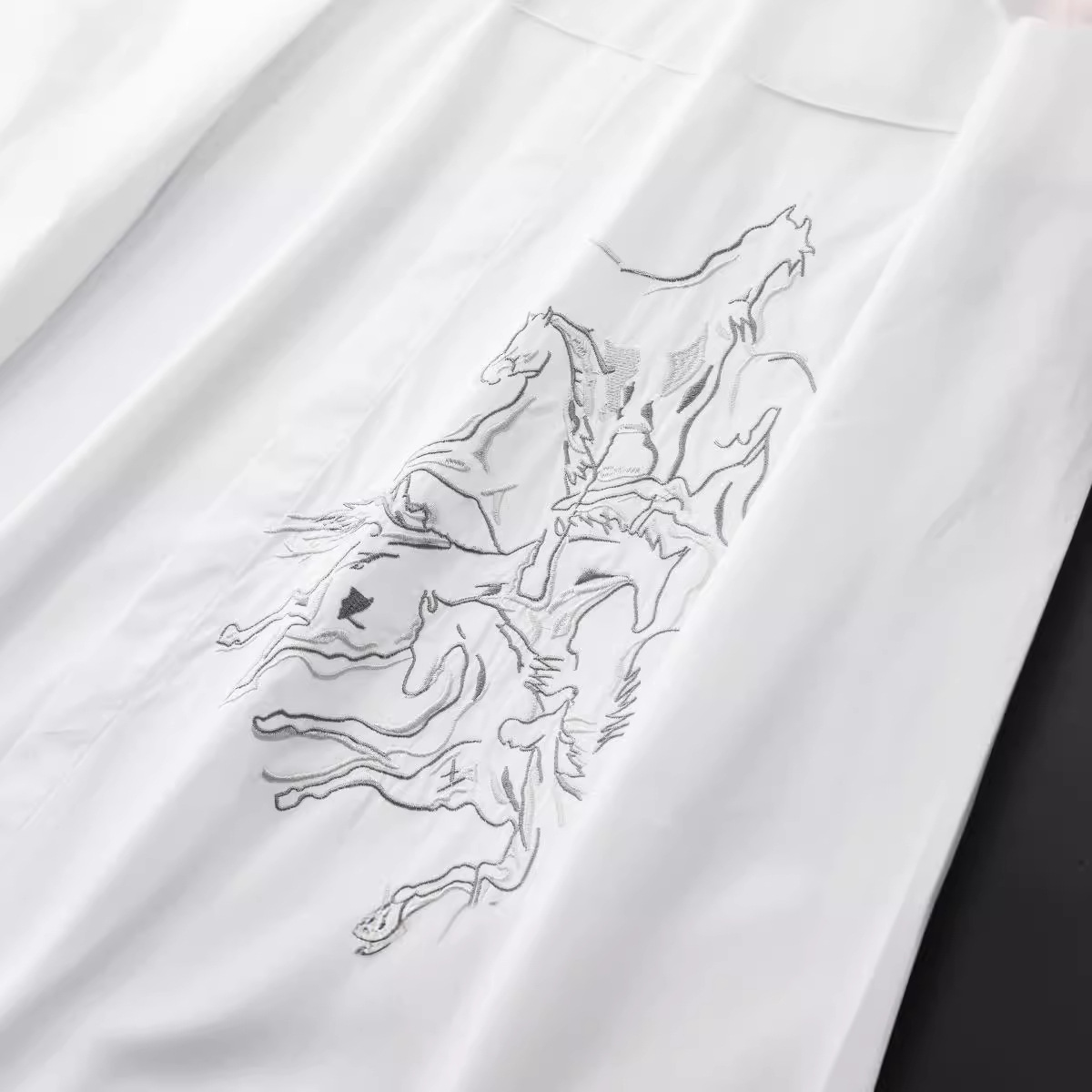 Áo sơ mi tay dài này có kiểu dáng ôm vừa vặn, phù hợp cho các bạn trẻ. Điểm nổi bật là hình thêu đàn ngựa được đặt cân đối ở cả mặt trước và mặt sau áo, tạo nên một điểm nhấn sinh động và khỏe khoắn. Chất vải mềm mại, thoáng mát giúp người mặc cảm thấy dễ chịu. Bạn có thể mặc áo đi làm, đi chơi hoặc dự các cuộc gặp mặt thông thường. Phong cách thiết kế mang hơi hướng hiện đại, trẻ trung. | Tên sản phẩm: Áo Sơ Mi Nam Dáng Ôm Thêu Họa Tiết Hoa Phong Cách Trẻ Trung Phong Cách Âu Mỹ - Thời Trang Nam | Mã sản phẩm: A9425 - Giá: 1.420.000đ | Mã nhà sản xuất: FODAR-G04Hình ảnh sản phẩm