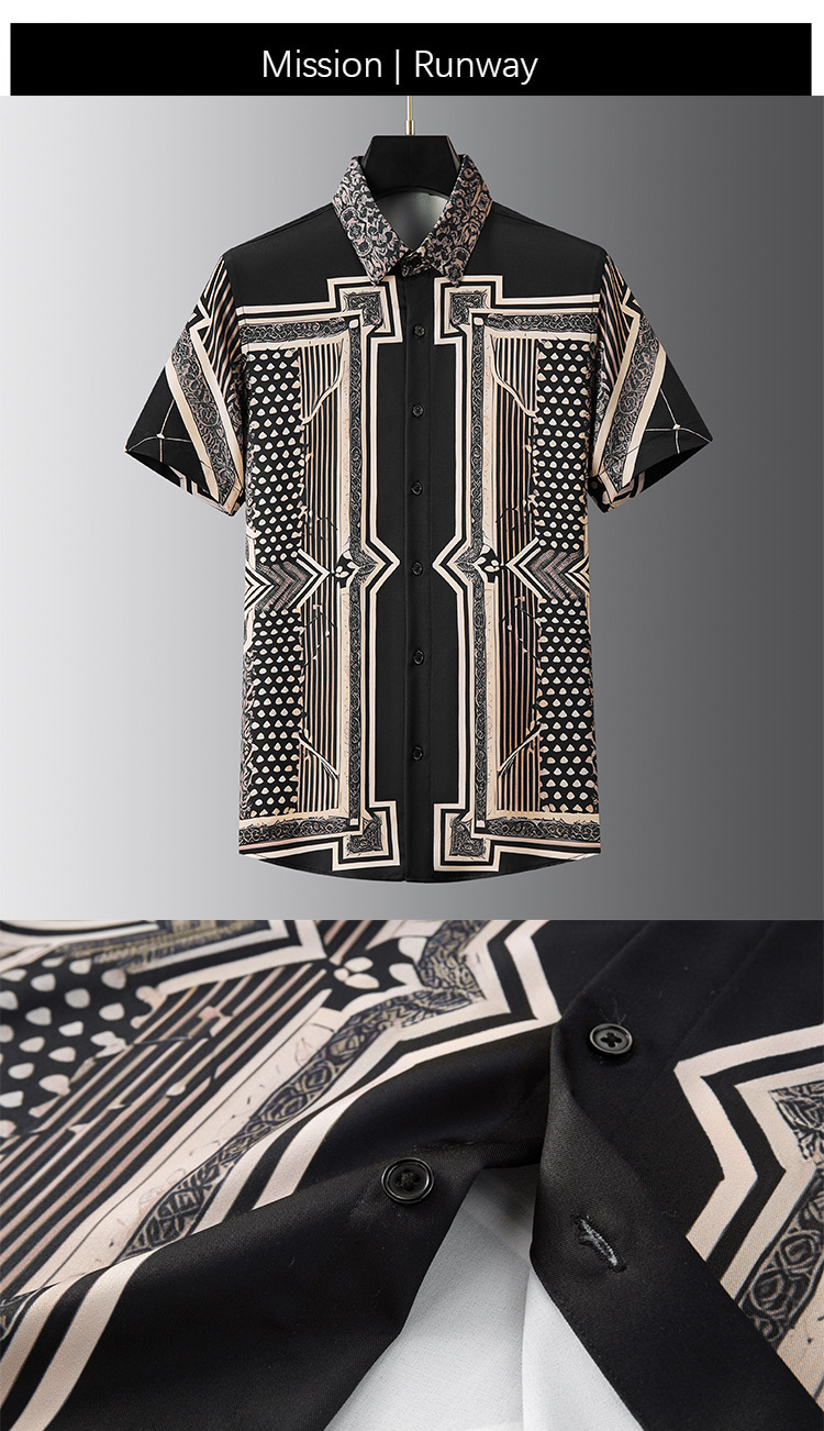 Áo sơ mi ngắn tay dành cho nam, kiểu dáng ôm vừa vặn cơ thể. Sản phẩm có họa tiết in kỹ thuật số đối xứng tạo điểm nhấn nổi bật, theo phong cách thời trang đường phố. Vải được xử lý chống nhăn, giúp áo luôn phẳng phiu sau khi giặt và không cần ủi. Mặc kèm với quần jeans hoặc quần tây để tạo phong cách trẻ trung, năng động. | Tên sản phẩm: Áo Sơ Mi Nam Dáng Ôm Ngắn Tay Họa Tiết Hoa Phong Cách Âu Mỹ - Thời Trang Nam | Mã sản phẩm: A9442 - Giá: 1.220.000đ | Mã nhà sản xuất: FODAR-G04Hình ảnh sản phẩm