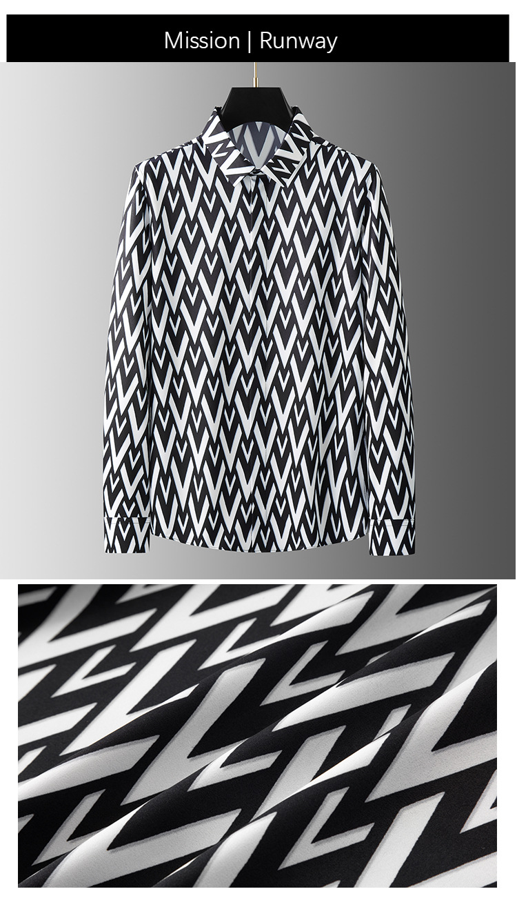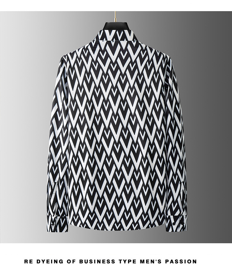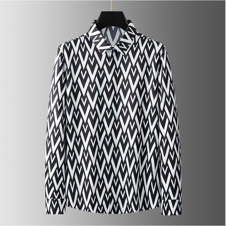 Áo sơ mi dài tay dành cho nam, kiểu dáng hợp thời với hình in chữ V cách điệu đối xứng ở hai bên. Chất vải mềm mại, ít nhăn nên rất tiện lợi khi mặc hàng ngày hoặc đi chơi. Sản phẩm phù hợp cho những ngày tiết trời mát mẻ. Có thể phối cùng quần tây hoặc quần jeans để tạo vẻ ngoài lịch sự và trẻ trung. Giặt máy nhẹ nhàng để giữ form áo và màu in lâu bền. | Tên sản phẩm: Áo Sơ Mi Nam Dài Tay Họa Tiết Hoa Hàng Mùa Hè - Thời Trang Nam | Mã sản phẩm: A9452 - Giá: 1.380.000đ | Mã nhà sản xuất: FODAR-G04Hình ảnh sản phẩm