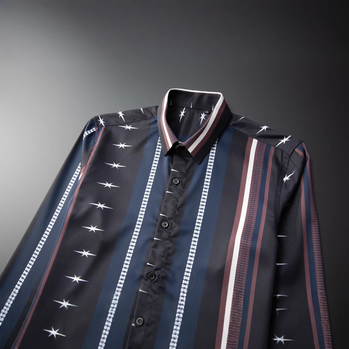 Áo sơ mi dài tay dành cho nam với phong cách trẻ trung, nổi bật nhờ họa tiết in kết hợp sắp xếp theo sọc dọc, lấy cảm hứng từ vũ trụ đầy màu sắc. Thiết kế có cổ nhọn, kiểu dáng phù hợp cho nhiều dịp. Chất vải ít nhăn, giúp bảo quản dễ dàng. Có thể mặc cùng quần tây hoặc quần jean để tạo nên vẻ ngoài cá tính. | Tên sản phẩm: Áo Sơ Mi Nam Dài Tay Họa Tiết Hoa Phong Cách Trẻ Trung - Thời Trang Nam | Mã sản phẩm: A9468 - Giá: 1.380.000đ | Mã nhà sản xuất: FODAR-G04Hình ảnh sản phẩm