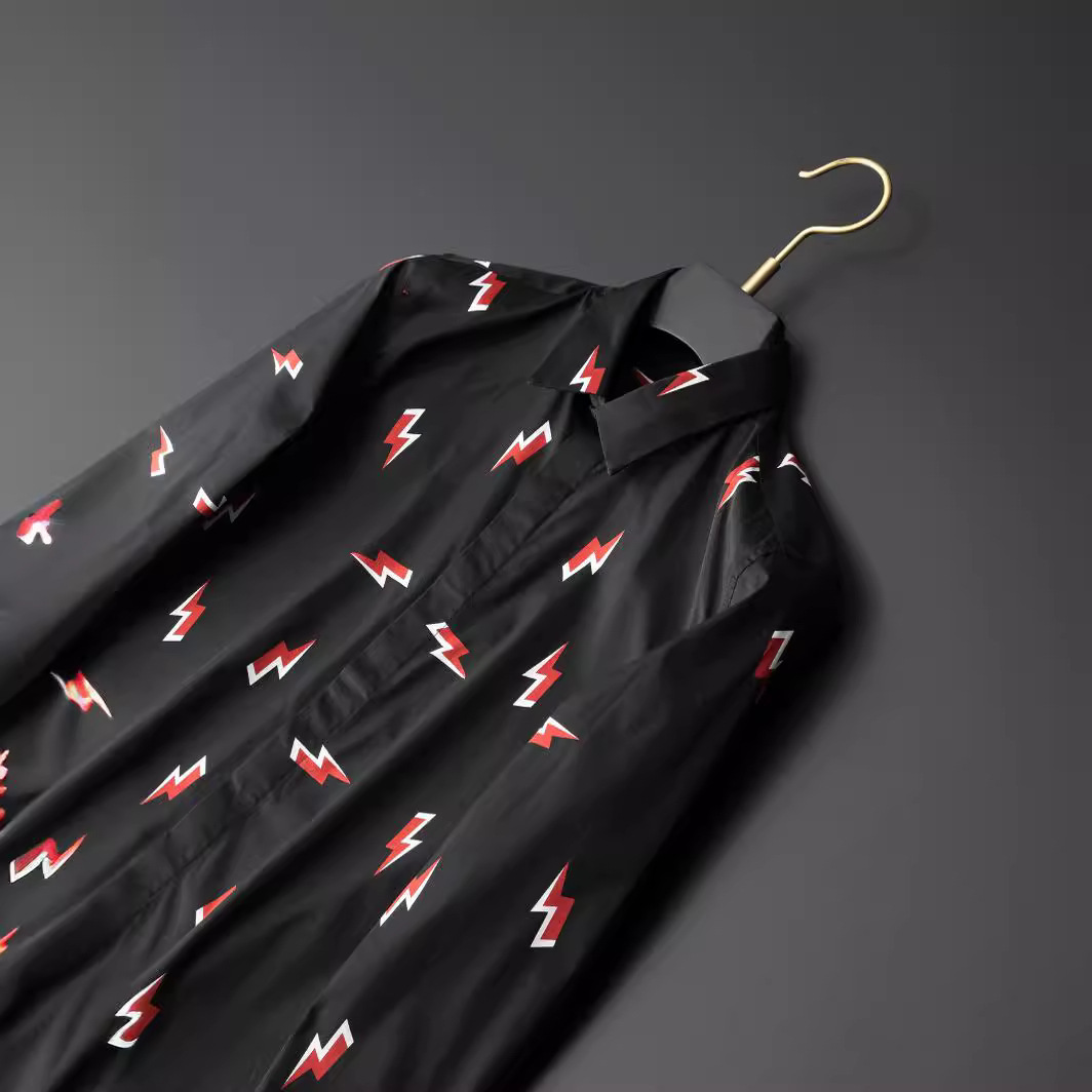 Áo sơ mi dáng ôm dành cho nam, được làm từ chất liệu bông mềm mại, mang đến sự thoải mái khi mặc. Điểm nhấn nổi bật là họa tiết tia chớp in khắp mặt áo, tạo phong cách trẻ trung và năng động. Sản phẩm phù hợp cho các dịp đi chơi, gặp gỡ bạn bè. Có thể mặc kết hợp với quần jean hoặc quần âu để tạo nên những bộ trang phục đẹp. Giặt ở nhiệt độ bình thường để giữ màu sắc và hình in được bền lâu. | Tên sản phẩm: Áo Sơ Mi Nam Chất Liệu Vải Bông Dáng Ôm Họa Tiết Hoa Phong Cách Âu Mỹ - Thời Trang Nam | Mã sản phẩm: A9489 - Giá: 1.380.000đ | Mã nhà sản xuất: FODAR-G04Hình ảnh sản phẩm