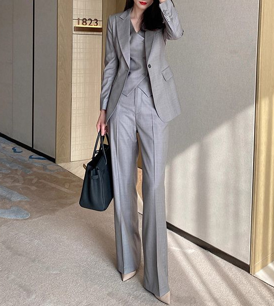 Bộ trang phục công sở dành cho nữ, phù hợp cho mùa thu đông. Thiết kế gồm áo vest và áo gilê tạo phong cách lịch sự, năng động, giúp tôn dáng người mặc. Chất vải dày dặn, giữ form đẹp, mang lại cảm giác chỉn chu. Có thể mặc nguyên bộ hoặc phối cùng quần âu, chân váy khác để đa dạng phong cách. Phù hợp cho môi trường làm việc và những dịp cần sự gọn gàng, tự tin. | Tên sản phẩm: Áo Vest Nữ Vest Hàng Mùa Xuân Thu Đông Đồ Công Sở - Thời Trang Nữ | Mã sản phẩm: A9521 - Giá: 3.560.000đ | Mã nhà sản xuất: CHTYAI-G06Hình ảnh sản phẩm