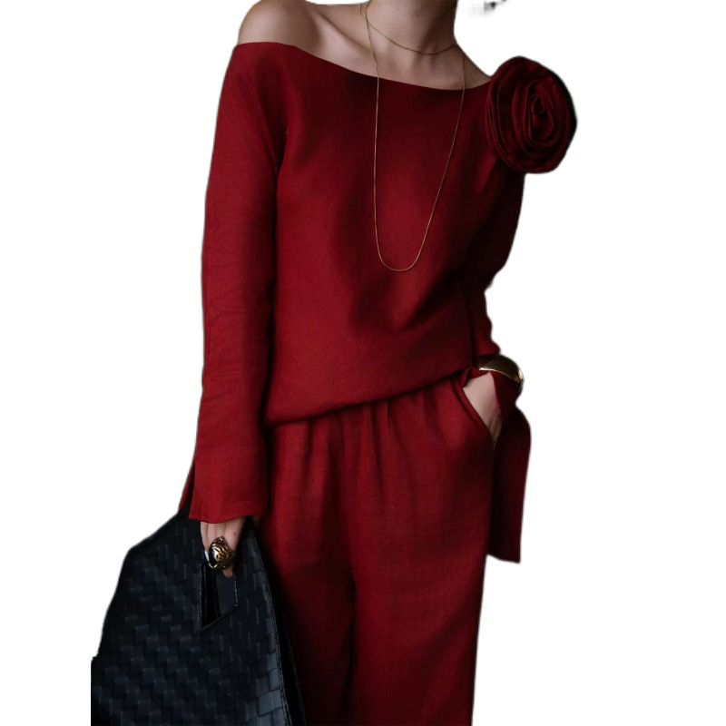 Bộ trang phục hai mảnh này có điểm nhấn là phần cổ áo khoét v tinh tế, điểm xuyến họa tiết hoa nổi bật trên v. Áo tay dài và quần dài tạo nên sự kín đáo nhưng vẫn rất duyên dáng. Chất vải mềm mại mang đến sự dễ chịu cho người mặc. Bộ sản phẩm phù hợp cho những dịp gặp mặt bạn bè hoặc dạo phố cuối tuần. Bạn có thể phối cùng giày thể thao hoặc sandal để tạo nên phong cách riêng. | Tên sản phẩm: Đồ Bộ Nữ Dài Tay Cả Bộ 2 Món Họa Tiết Hoa Hàng Mùa Xuân Thu Đông - Thời Trang Nữ | Mã sản phẩm: A9525 - Giá: 2.730.000đ | Mã nhà sản xuất: CHTYAI-G06Hình ảnh sản phẩm