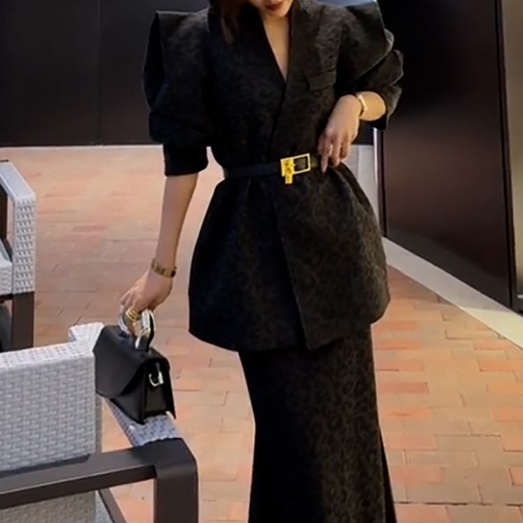 Bộ trang phục hai mảnh này gồm áo khoác và chân váy, mang kiểu dáng dành riêng cho mùa thu đông. Áo khoác có họa tiết vằn da beo nổi bật, phối cùng chân váy dáng cao eo tôn dáng. Chất liệu mềm mại giữ ấm tốt, phù hợp mặc đi làm hoặc dạo phố. Có thể mặc nguyên bộ hoặc phối với các trang phục khác để tạo nên những phong cách đa dạng. | Tên sản phẩm: Áo Khoác Nữ Cả Bộ 2 Món Họa Tiết Hoa Hàng Mùa Xuân Thu Đông - Thời Trang Nữ | Mã sản phẩm: A9537 - Giá: 1.680.000đ | Mã nhà sản xuất: CHTYAI-G05Hình ảnh sản phẩm