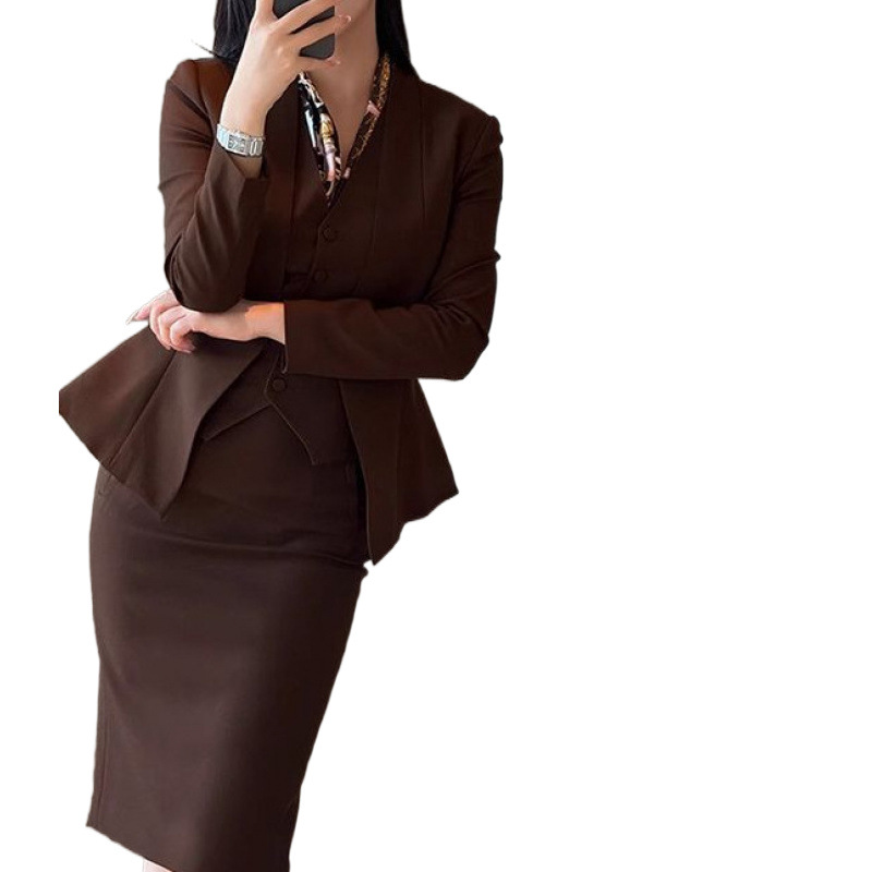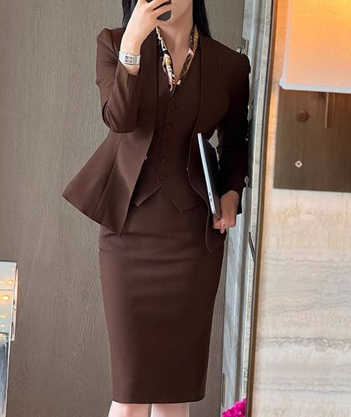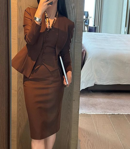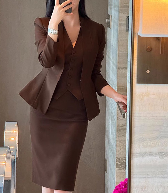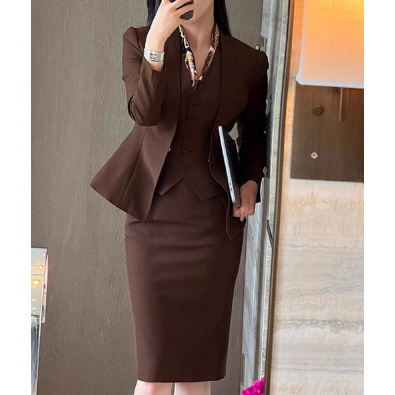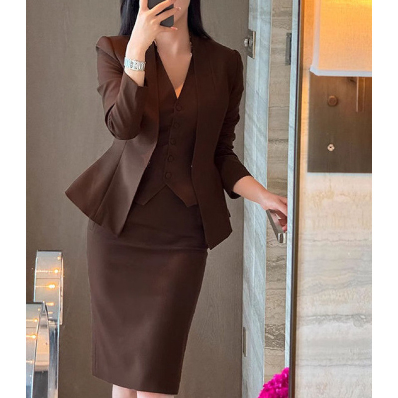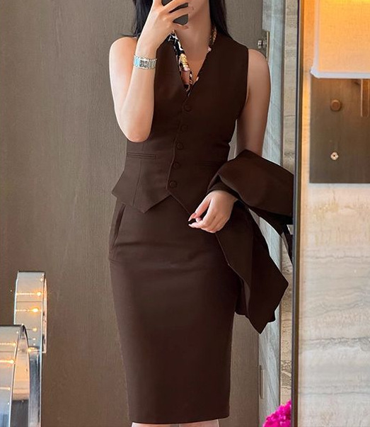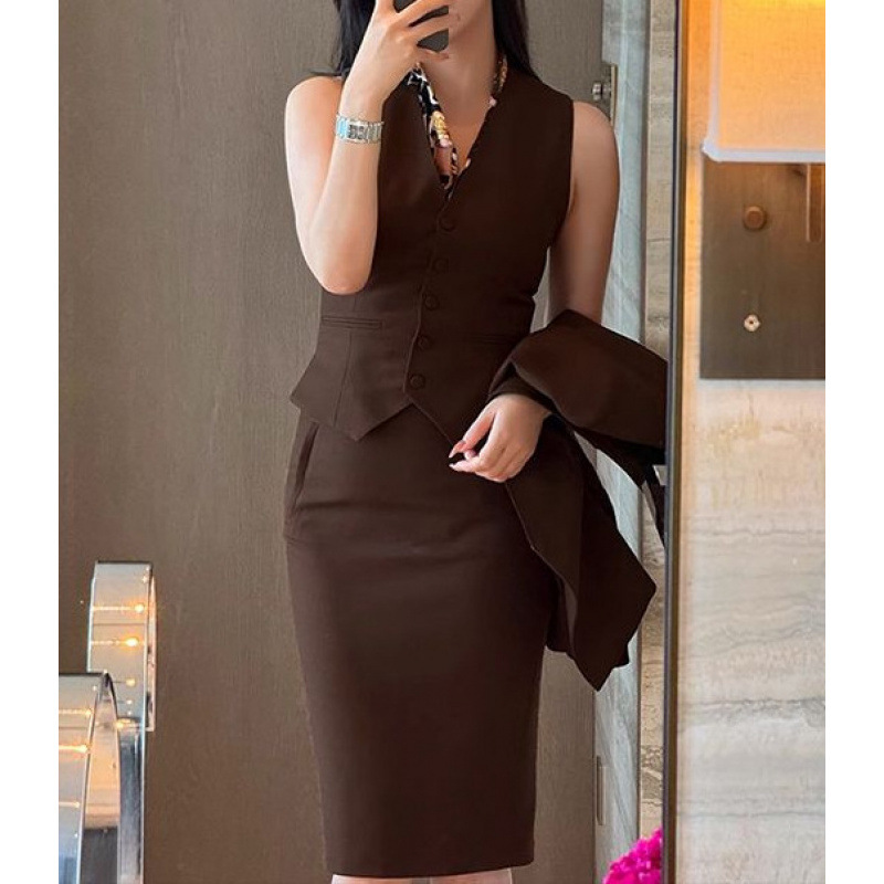 Bộ trang phục ba món này được thiết kế dành riêng cho dịp thu đông. Kiểu dáng ôm vừa vặn giúp tôn lên những đường nét cơ thể một cách tinh tế. Bộ sản phẩm bao gồm áo vest, áo gile và quần/chân váy, rất phù hợp để mặc đi làm hoặc dạo phố. Bạn có thể phối cả bộ để trông chỉn chu, hoặc tách riêng từng món để phối với các trang phục khác nhau, tạo nên nhiều vẻ đẹp linh hoạt. Chất vải mềm mại giúp người mặc cảm thấy thoải mái suốt cả ngày dài. | Tên sản phẩm: Áo Vest Nữ Vest Dáng Ôm Cả Bộ 3 Món Hàng Mùa Xuân Thu Đông - Thời Trang Nữ | Mã sản phẩm: A9539 - Giá: 3.380.000đ | Mã nhà sản xuất: CHTYAI-G06Hình ảnh sản phẩm