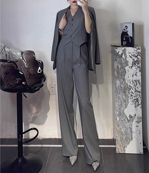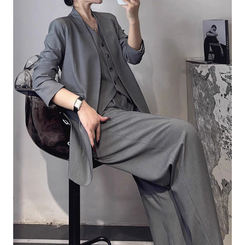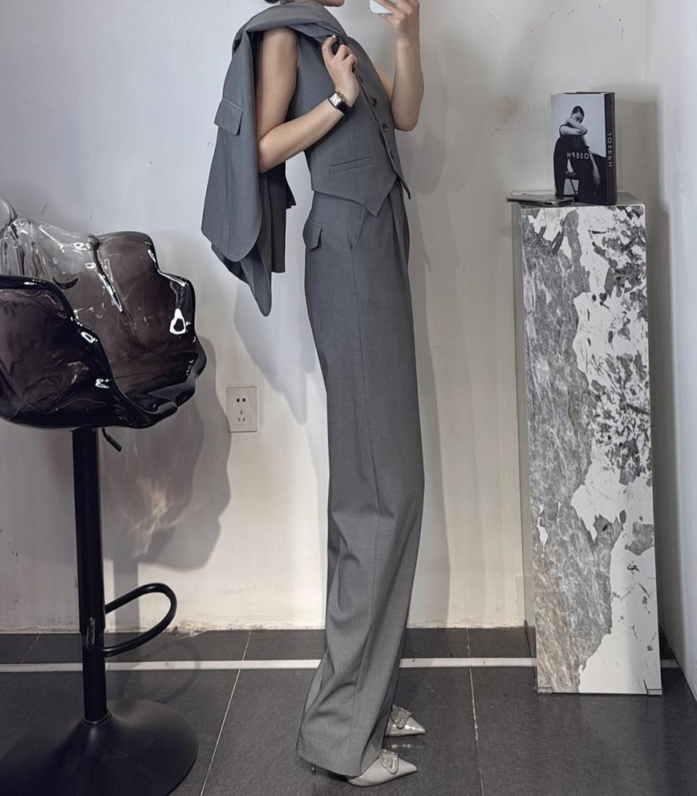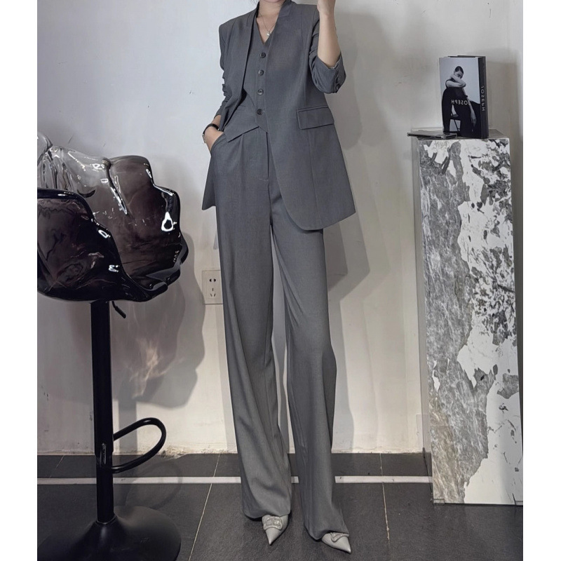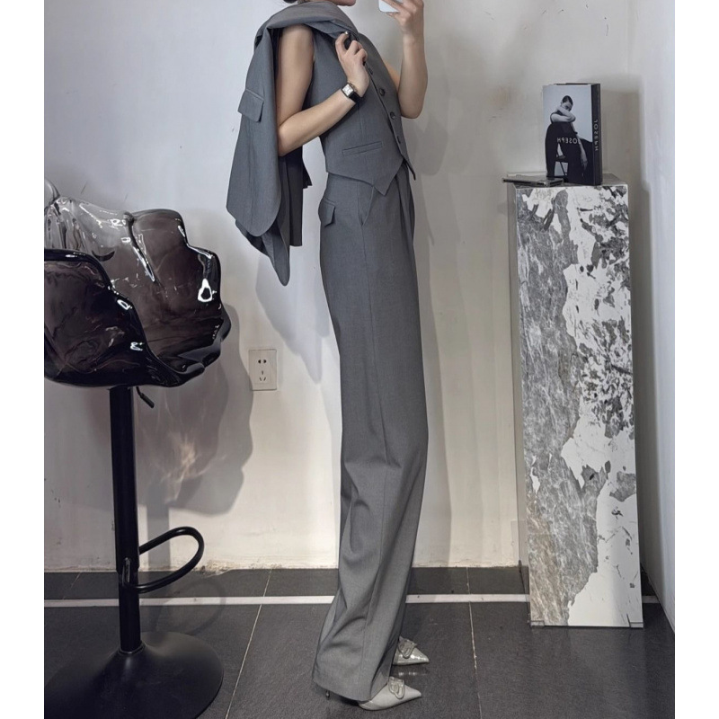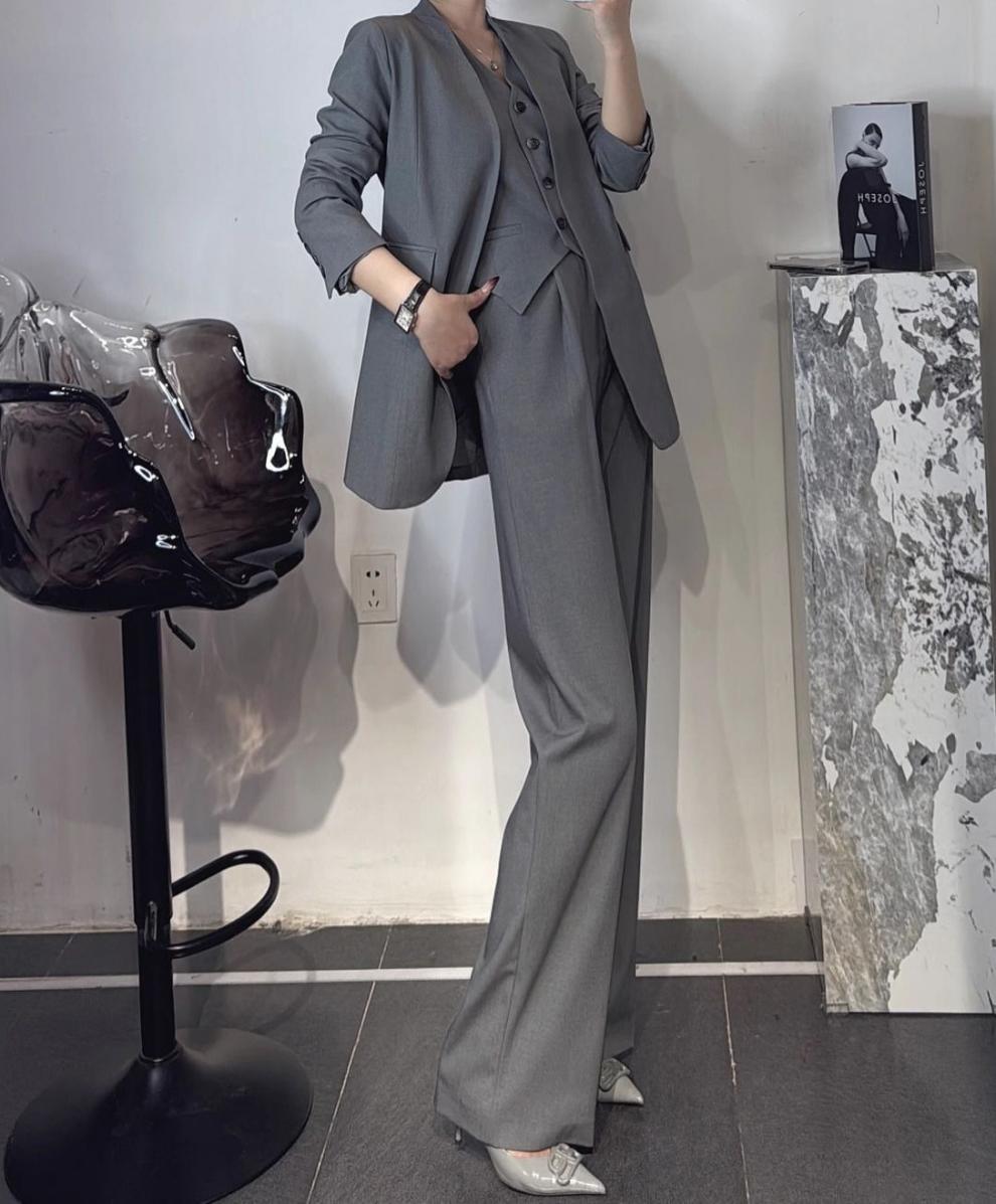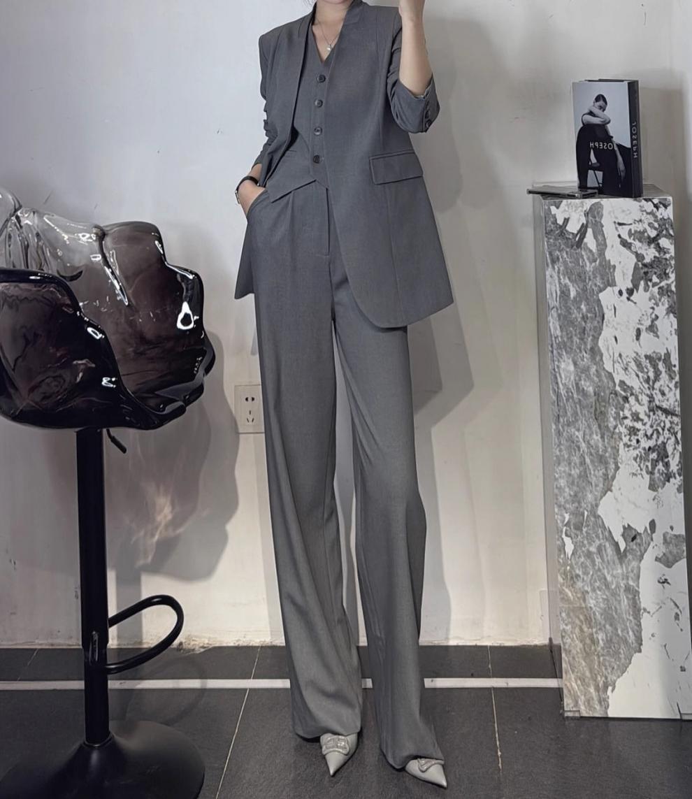Bộ trang phục ba mảnh này gồm áo vest, áo trong và quần ống rộng, được thiết kế dành riêng cho mùa thu đông. Kiểu dáng ôm vừa vặn, tôn lên đường nét cơ thể. Chất liệu vải dày dặn giữ ấm tốt, phù hợp với môi trường công sở hoặc những dịp đi làm. Bạn có thể mặc nguyên bộ để tạo sự chỉn chu, hoặc phối riêng từng món với áo cơ bản khác để đa dạng phong cách. | Tên sản phẩm: Áo Vest Nữ Vest Dáng Ôm Cả Bộ 3 Món Hàng Mùa Xuân Thu Đông Đồ Công Sở - Thời Trang Nữ | Mã sản phẩm: A9540 - Giá: 3.280.000đ | Mã nhà sản xuất: CHTYAI-G06Hình ảnh sản phẩm