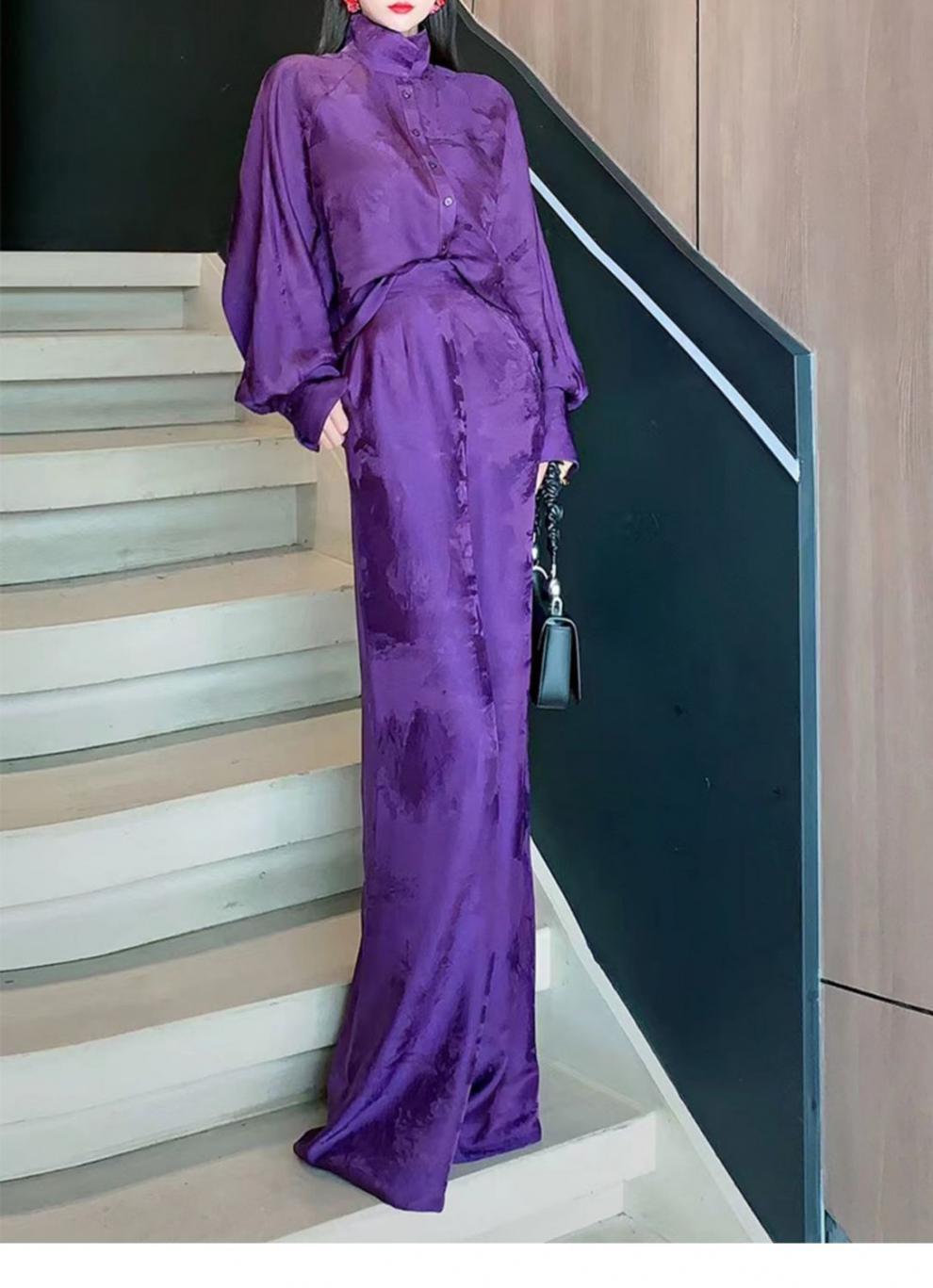 Bộ trang phục hai mảnh này có sắc tím dịu nhẹ, phù hợp cho mùa xuân và thu. Kiểu dáng thiết kế tinh gọn, tôn dáng cho người có chiều cao khiêm tốn. Áo và quần/skirt kết hợp hài hòa, tạo nên vẻ ngoài chỉn chu, lịch sự. Chất vải mềm mại, thoải mái khi mặc cả ngày dài. Dễ dàng phối với giày cao gót hay giày đế bằng, thích hợp cho nhiều dịp đi làm hoặc gặp gỡ. | Tên sản phẩm: Đồ Bộ Nữ Cả Bộ 2 Món Hàng Mùa Xuân Thu Đông - Thời Trang Nữ | Mã sản phẩm: A9541 - Giá: 2.200.000đ | Mã nhà sản xuất: CHTYAI-G05Hình ảnh sản phẩm