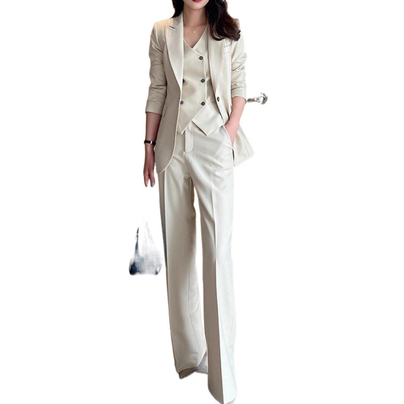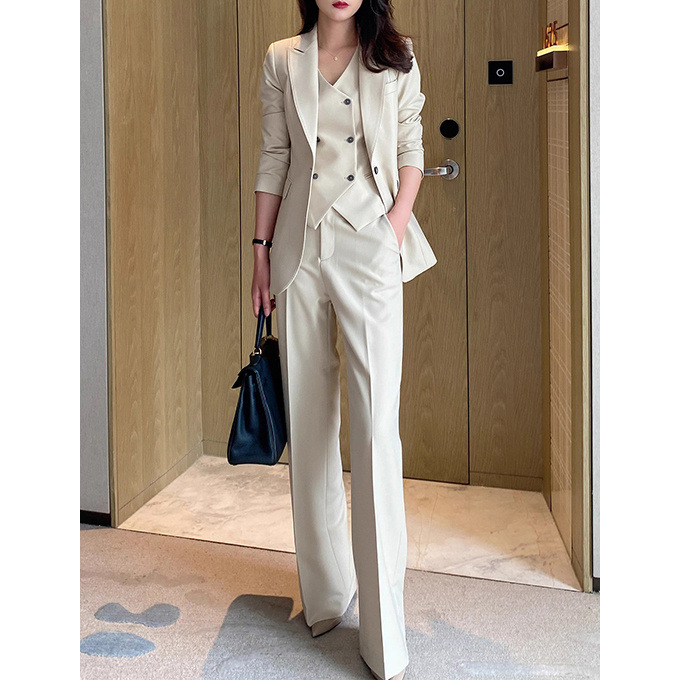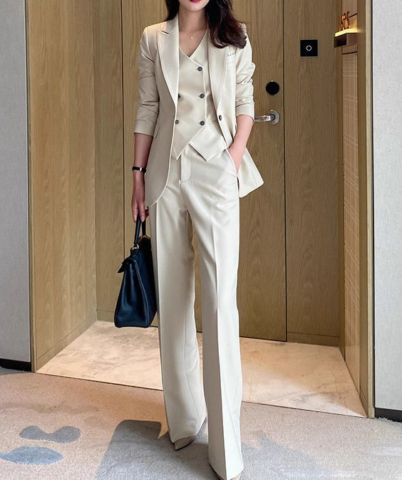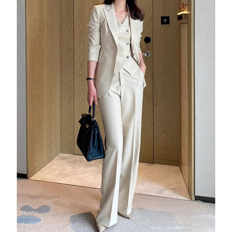 Bộ trang phục ba món này mang đến cho bạn vẻ ngoại chỉn chu, lịch sự, rất phù hợp cho dịp đi làm. Thiết kế gồm áo khoác nhẹ, áo vét bên trong và quần ống thẳng, tạo thành một bộ đồ đồng bộ, dễ dàng phối đồ. Kiểu dáng giúp tôn dáng, tạo cảm giác người mặc cao hơn và thon gọn hơn. Chất vải mềm mại, thoải mái vận động. Bạn có thể mặc nguyên bộ để tạo sự trang trọng, hoặc tách riêng từng món để phối với các trang phục khác nhau. | Tên sản phẩm: Áo Vest Nữ Vest Cả Bộ 3 Món Hàng Mùa Xuân Thu Đông - Thời Trang Nữ | Mã sản phẩm: A9544 - Giá: 3.650.000đ | Mã nhà sản xuất: CHTYAI-G06Hình ảnh sản phẩm