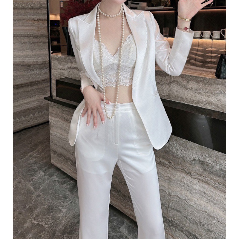 Bộ trang phục hai mảnh này rất phù hợp cho môi trường công sở và những dịp cần trang trọng. Áo khoác dáng ôm tôn dáng, kết hợp cùng chiếc quần ống rộng có phần eo cao giúp tạo cảm giác thon gọn. Chất vải mềm mại, thoáng mát, dễ chịu khi mặc suốt ngày dài. Bạn có thể mặc nguyên bộ để có vẻ ngoài chỉn chu, hoặc phối riêng từng món với các trang phục khác nhau. | Tên sản phẩm: Áo Vest Nữ Vest Dáng Ôm Cả Bộ 2 Món Hàng Mùa Xuân Thu Đông Đồ Công Sở - Thời Trang Nữ | Mã sản phẩm: A9560 - Giá: 2.640.000đ | Mã nhà sản xuất: CHTYAI-G06Hình ảnh sản phẩm
