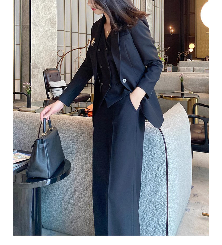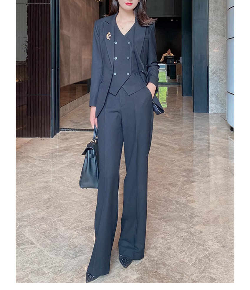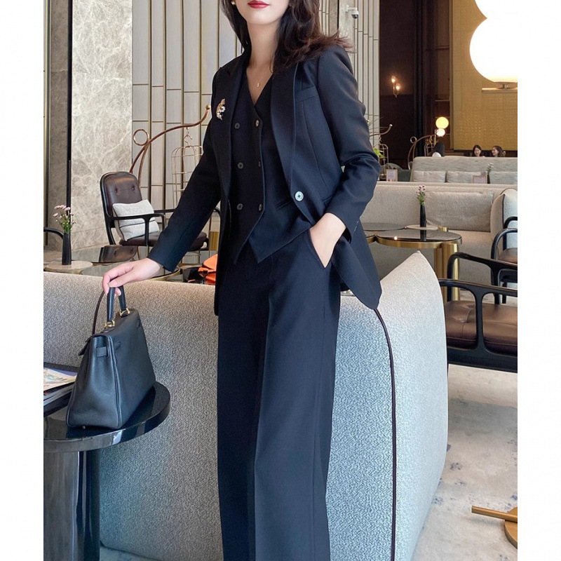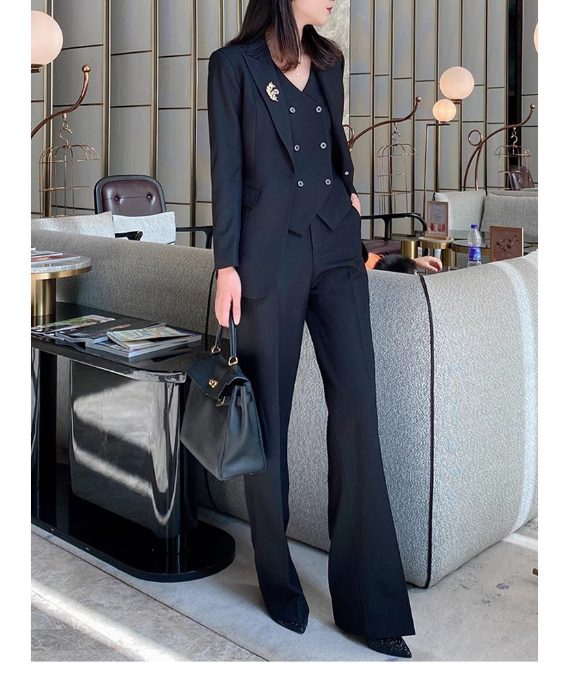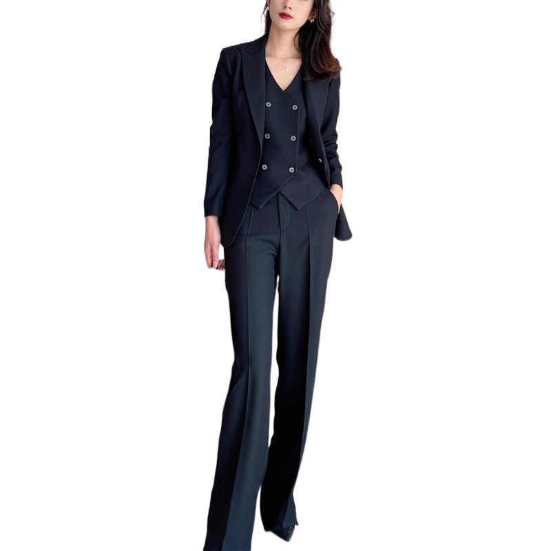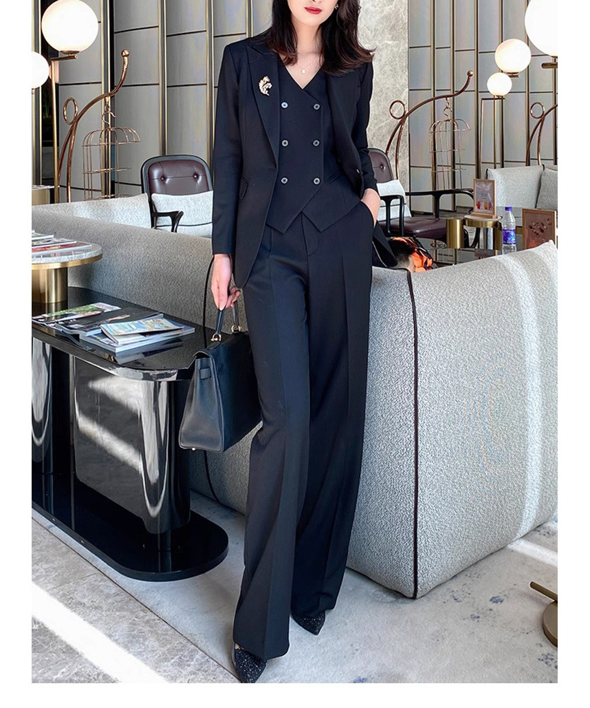 Bộ trang phục gồm ba món: áo khoác, áo vest và quần dáng suông. Thiết kế tôn dáng với áo vest ôn gọn và quần ống thẳng, tạo phong cách mạnh mẽ và lịch sự. Chất liệu vải mềm mại, thoáng mát, phù hợp mặc trong tiết trời mùa xuân và mùa thu. Có thể mặc nguyên bộ để tạo vẻ chỉn chu khi làm việc, hoặc phối riêng từng món với áo phông, áo sơ mi để đa dạng phong cách hàng ngày. | Tên sản phẩm: Áo Vest Nữ Vest Dáng Ôm Cả Bộ 3 Món Hàng Mùa Xuân Thu Đông Đồ Công Sở - Thời Trang Nữ | Mã sản phẩm: A9564 - Giá: 3.650.000đ | Mã nhà sản xuất: CHTYAI-G06Hình ảnh sản phẩm