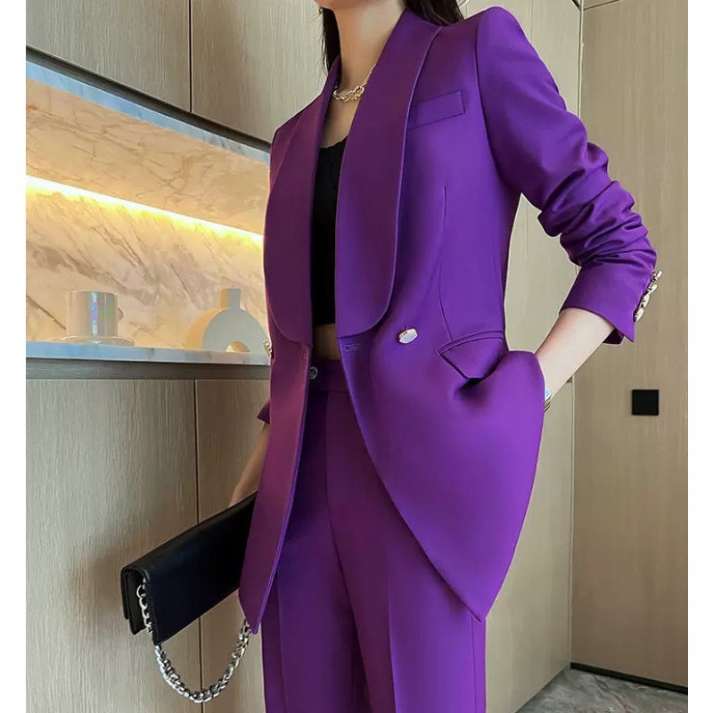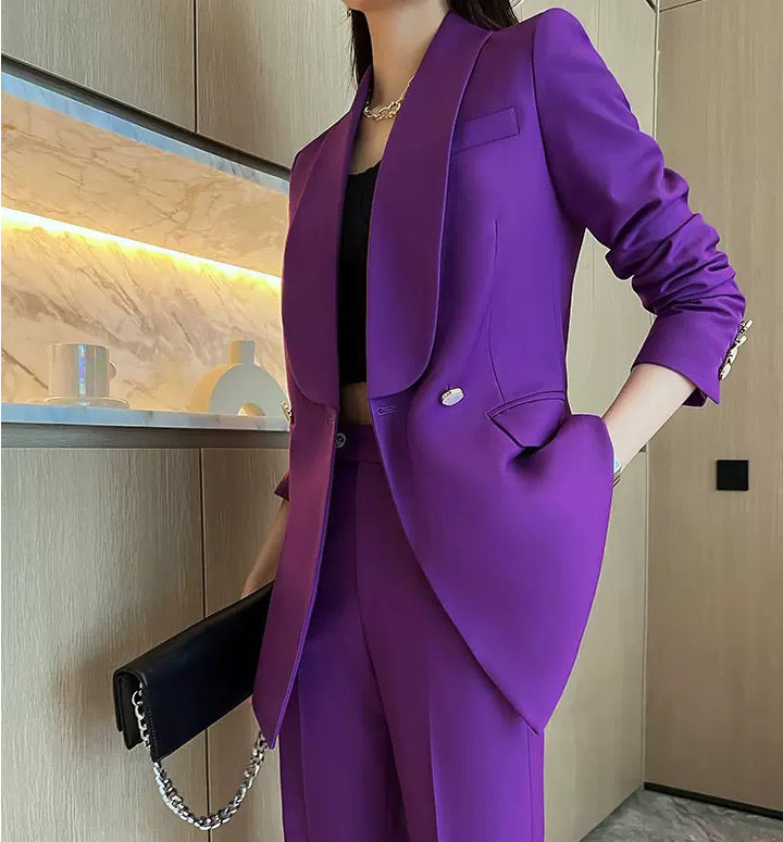 Bộ trang phục hai mảnh dành cho nữ, có sắc tím phớt hồng đặc trưng của kho môn. Thiết kế kết hợp hài hòa giữa phong cách công sở lịch sự và nét trẻ trung, thoải mái cho những ngày thu đông. Áo khoác và quần tây tạo nên một bộ đồ chỉn chu, phù hợp cho nhiều dịp khác nhau. Bạn có thể mặc nguyên bộ để đi làm hoặc phối cùng áo thun, giày thể thao cho những lúc thư giãn. | Tên sản phẩm: Áo Vest Nữ Vest Cả Bộ 2 Món Hàng Mùa Xuân Thu Đông Đồ Công Sở - Thời Trang Nữ | Mã sản phẩm: A9585 - Giá: 2.650.000đ | Mã nhà sản xuất: CHTYAI-G06Hình ảnh sản phẩm