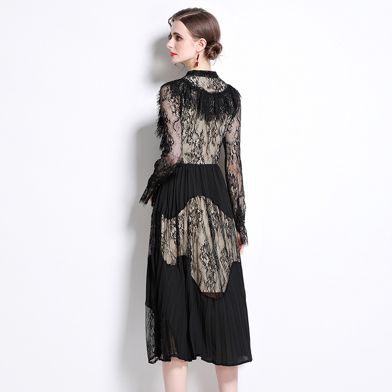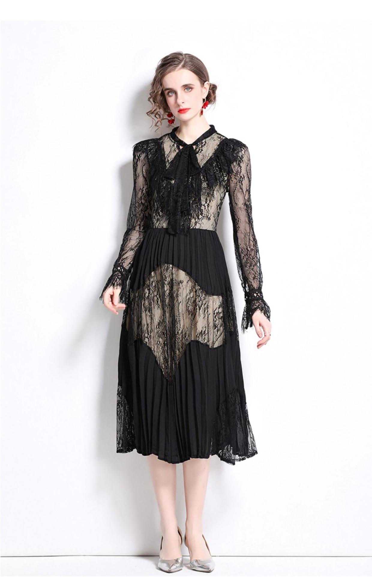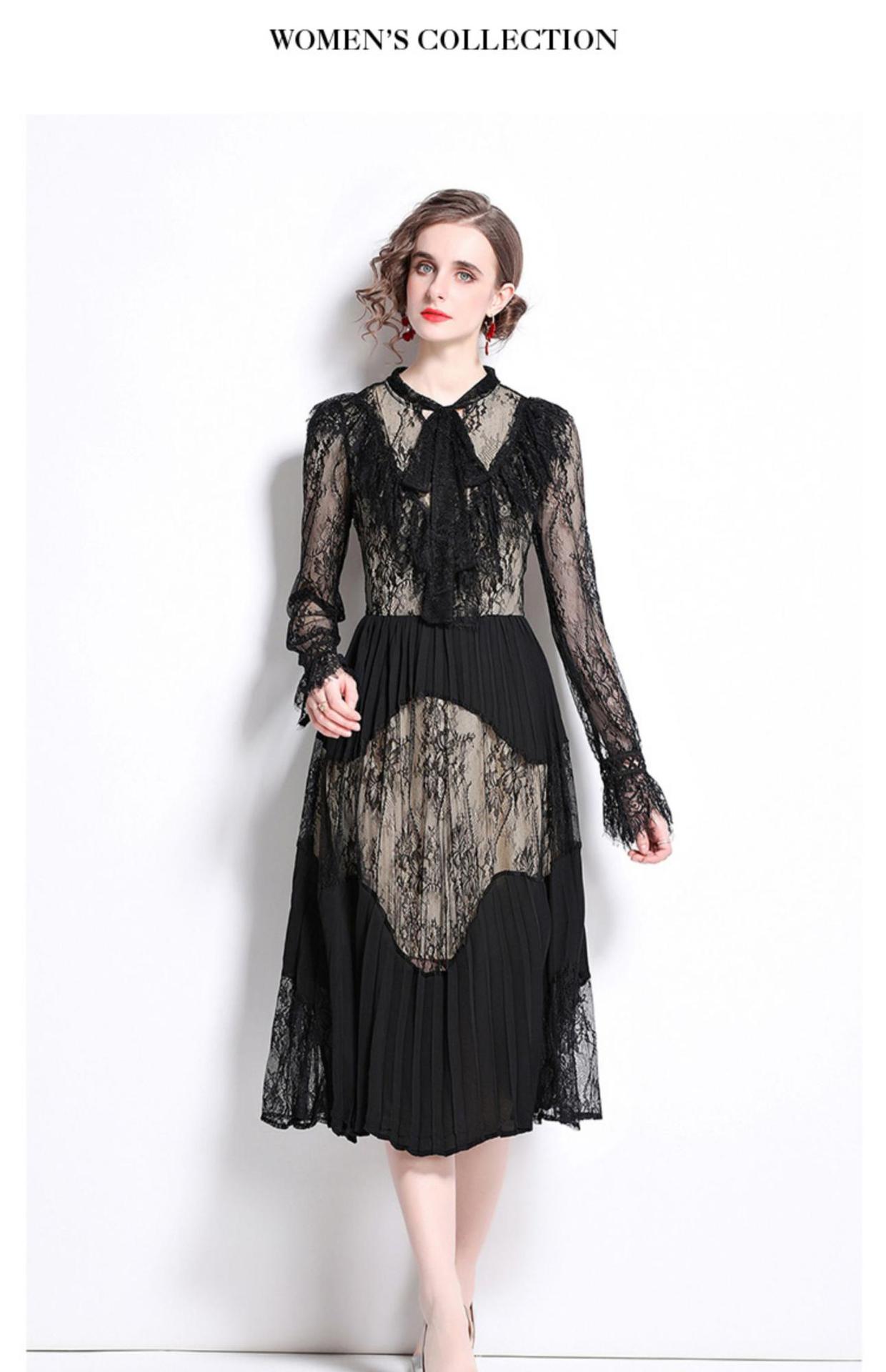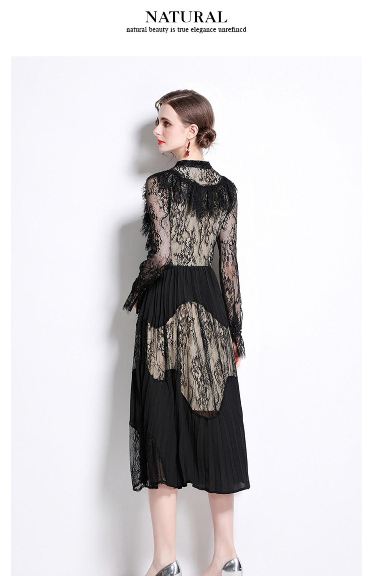 Chiếc đầm dành cho mùa xuân với điểm nhấn là phần cổ có nơ điều chỉnh được. Tay áo dài sử dụng chất liệu có hiệu ứng xuyên thấu tinh tế, kết hợp cùng đường diềm đăng ten mềm mại. Thiết kế ôm eo, phối cùng phần thân dưới xếp li và vạt rộng tạo dáng điệu thướt tha. Mặc cùng giày cao gót hoặc giày búp bê đều phù hợp để tôn lên vẻ nữ tính. | Tên sản phẩm: Váy Đầm Liền Thân Nữ Chất Liệu Ren Dài Tay Hàng Mùa Xuân Thu Đông - Thời Trang Nữ | Mã sản phẩm: A9593 - Giá: 940.000đ | Mã nhà sản xuất: GUDG-G03Hình ảnh sản phẩm