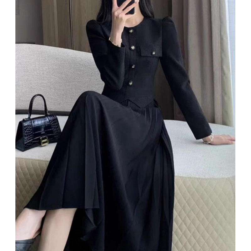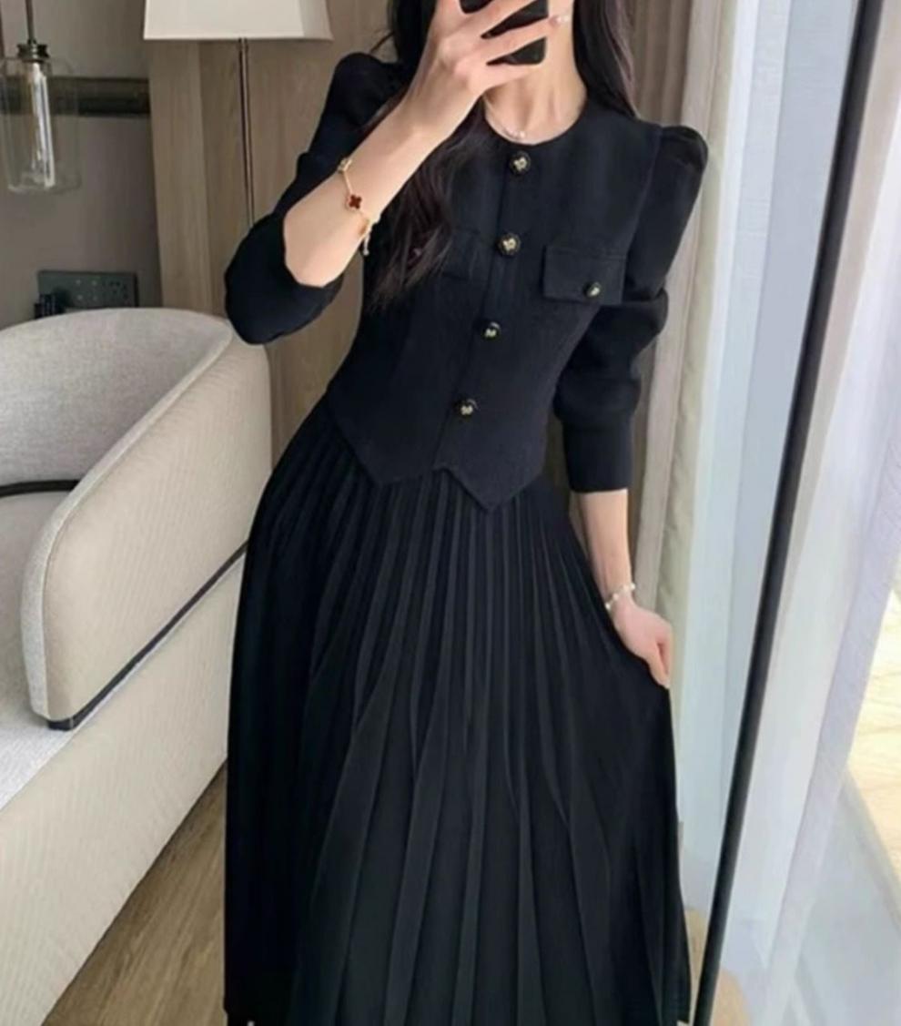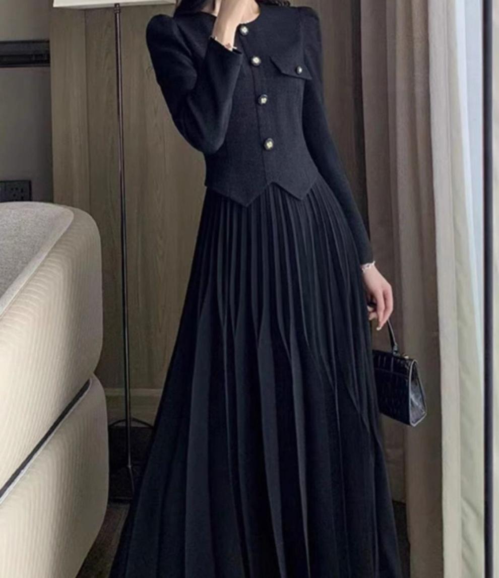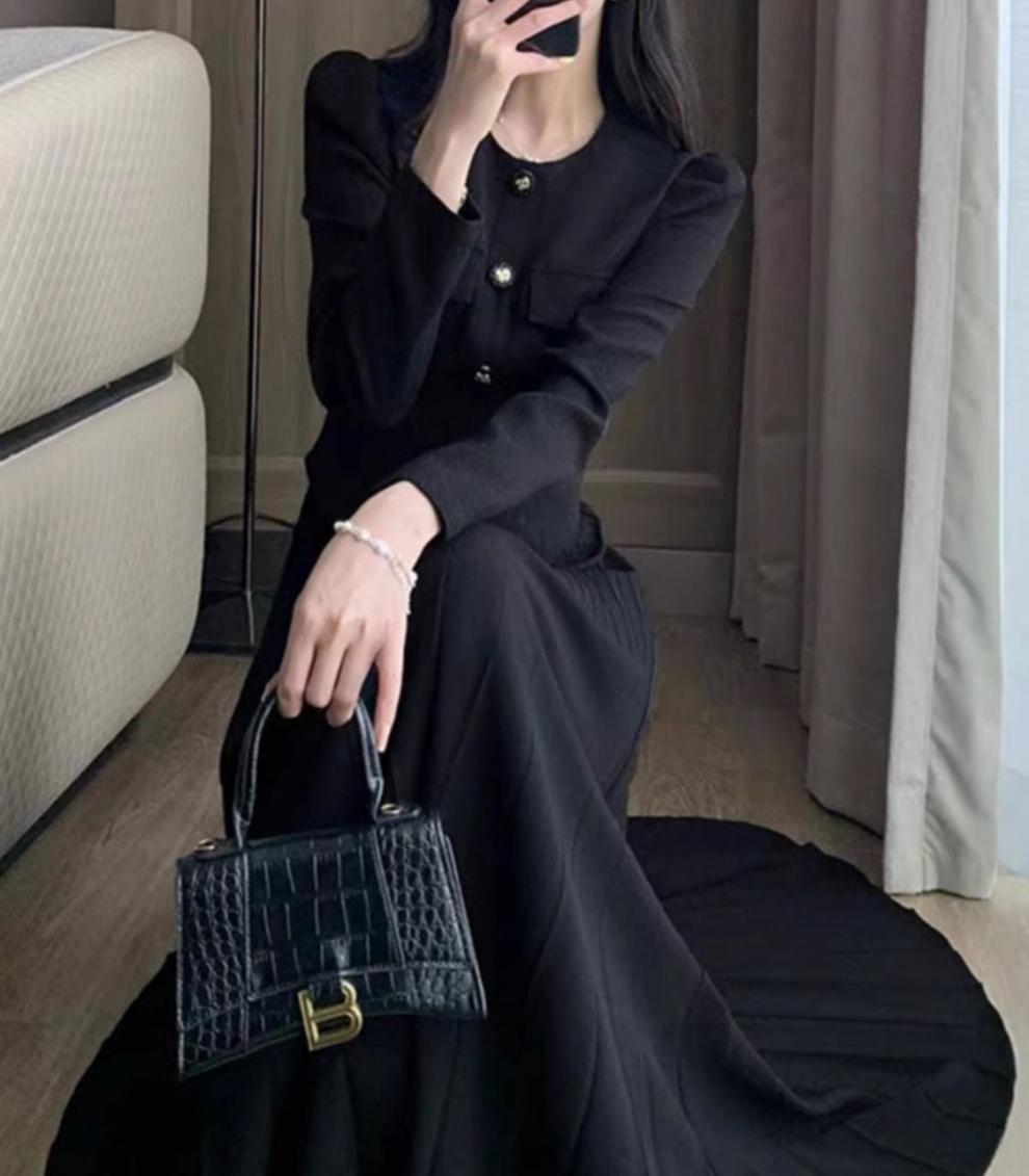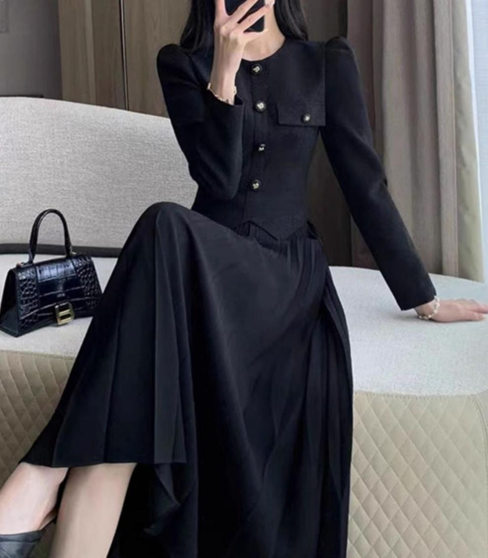 Đầm dài mới cho mùa thu, thiết kế dành cho các bạn nữ có thân hình đầy đặn. Chất liệu vải mềm mại, form đầm ôn hờn eo tôn dáng. Kiểu dáng kết hợp tạo hiệu ứng hai lớp, phần chân váy xếp ly nhẹ nhàng. Sản phẩm có màu đen dễ phối đồ, mặc đi làm hoặc dạo phố đều phù hợp. Giặt nhẹ và phơi trong bóng mát để giữ dáng đầm bền lâu. | Tên sản phẩm: Váy Đầm Liền Thân Dáng Dài Nữ Big Size Ngoại Cỡ Cả Bộ 2 Món Hàng Mùa Xuân Thu Đông - Thời Trang Nữ | Mã sản phẩm: A9605 - Giá: 1.490.000đ | Mã nhà sản xuất: CHTYAI-G04Hình ảnh sản phẩm