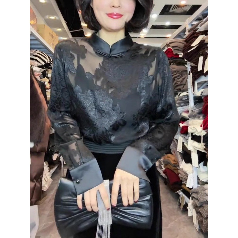 Áo kiểu nữ tay dài, thiết kế rộng rãi thoải mái, màu đen dễ phối đồ. Chất vải dày dặn có hoa văn dệt nổi mang nét đẹp truyền thống. Cổ tròn đơn giản, phù hợp mặc trong tiết trời thu đông. Có thể mặc cùng quần jeans hoặc chân váy để tạo vẻ ngoài thanh lịch. Dễ dàng giặt bằng tay hoặc máy để giữ form áo lâu bền. | Tên sản phẩm: Áo Sơ Mi Nữ Dài Tay Họa Tiết Hoa Hàng Mùa Xuân Thu Đông - Thời Trang Nữ | Mã sản phẩm: A9610 - Giá: 720.000đ | Mã nhà sản xuất: CHTYAI-G02Hình ảnh sản phẩm