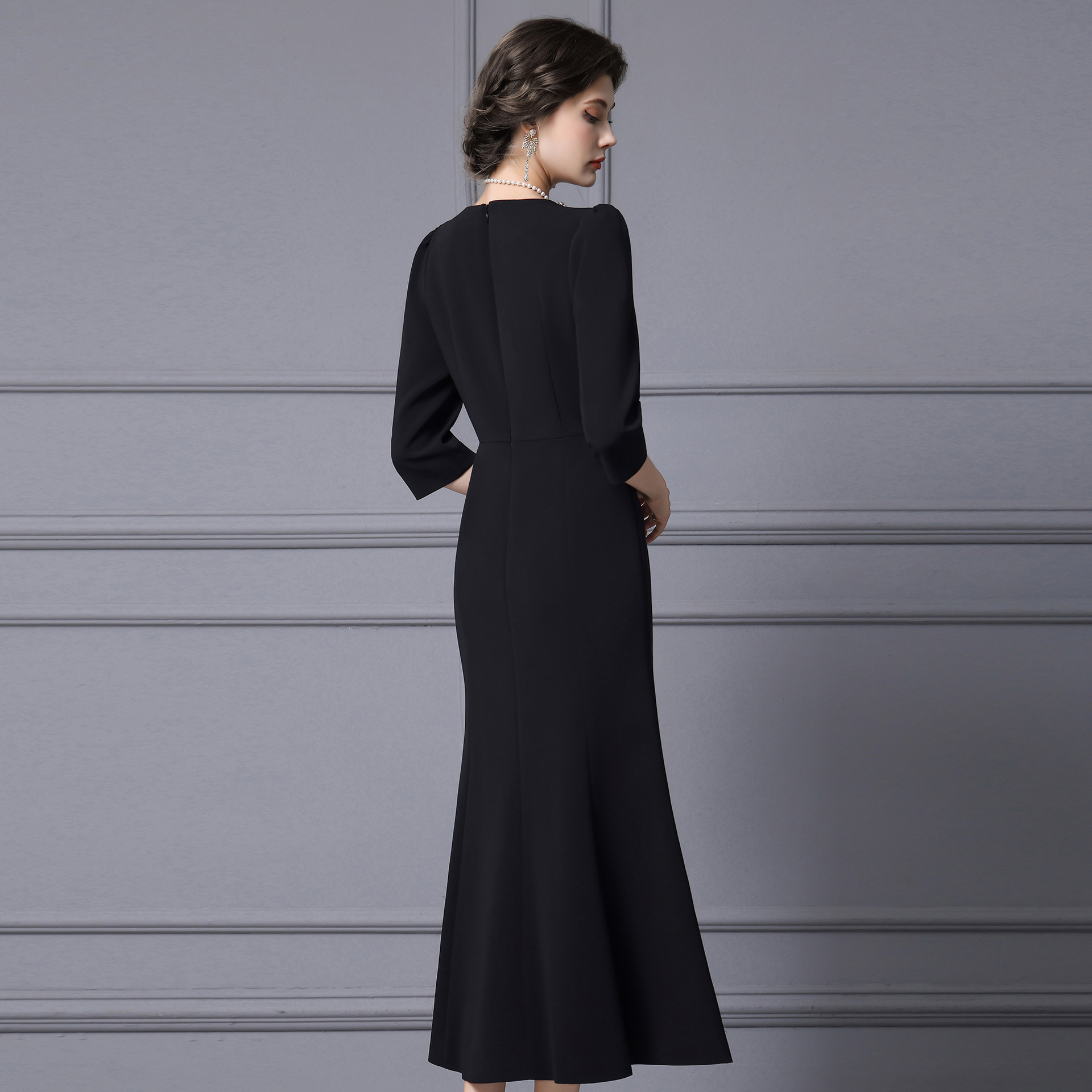 Đầm dự tiệc dáng dài cho người có vóc dáng đầy đặn, lấy cảm hứng từ phong cách cổ điển. Thiết kế điểm nhấn là nơ thắt eo và các hạt đá lấp lánh được đính tinh tế. Kiểu dáng đuôi cá giúp tôn lên các đường nét cơ thể một cách dịu dàng và nữ tính. Phù hợp cho các buổi tiệc quan trọng hay sự kiện cần sự chỉn chu. Mặc kèm với giày cao gót và phụ kiện đơn giản để hoàn thiện vẻ ngoài thanh lịch. | Tên sản phẩm: Váy Đầm Liền Thân Nữ Thắt Nơ Bướm Kiểu Đuôi Cá Hàng Mùa Xuân Thu Đông - Thời Trang Nữ | Mã sản phẩm: A9618 - Giá: 3.470.000đ | Mã nhà sản xuất: SHDAP-G06Hình ảnh sản phẩm