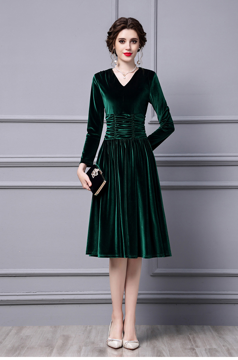 Chiếc đầm dành cho mùa thu với chất liệu thun lụa mềm mại, có độ co giãn nhẹ. Thiết kế cổ chữ V giúp tôn dáng, eo được may chiết liền tạo điểm nhấn. Phần tay và viền chân váy điểm xuyến đường diềm lượn sóng, tăng thêm nét duyên dáng. Kiểu dáng dáng dài qua gối dễ mặc, phù hợp cho nhiều dịp đi làm hoặc dạo phố. Có thể giặt bằng máy và phơi trong bóng râm. | Tên sản phẩm: Váy Đầm Liền Thân Nữ Cổ Chữ V Hàng Mùa Xuân Thu Đông - Thời Trang Nữ | Mã sản phẩm: A9633 - Giá: 2.450.000đ | Mã nhà sản xuất: SHDAP-G05Hình ảnh sản phẩm