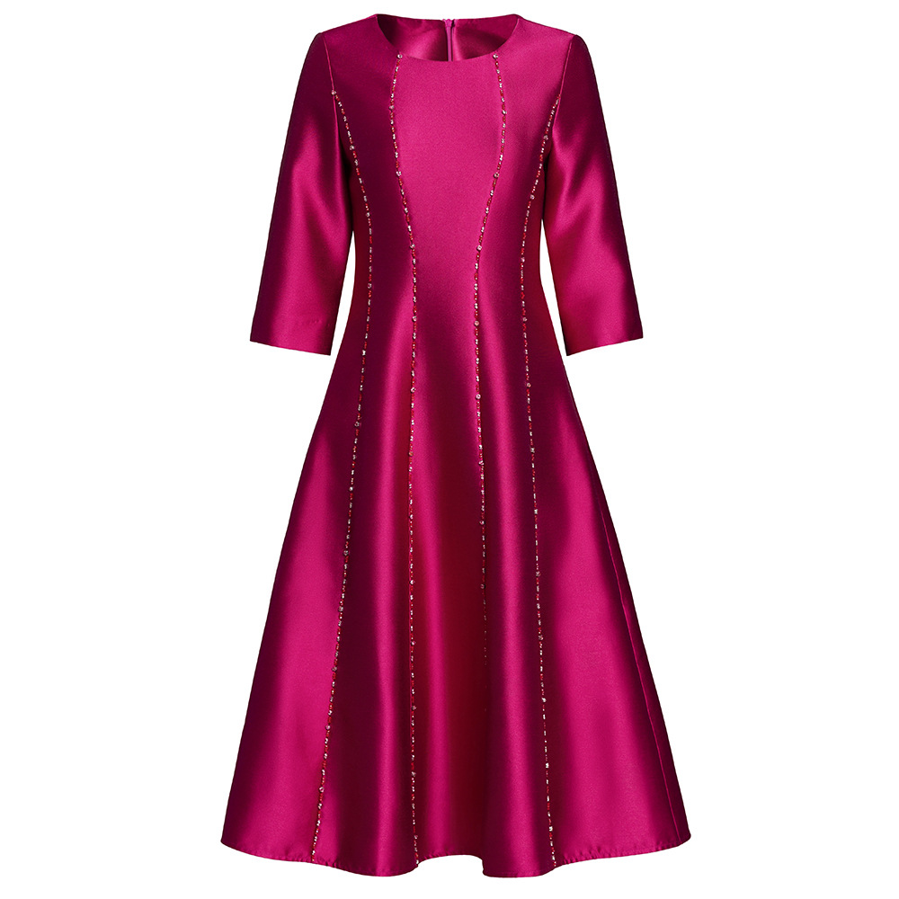 Chiếc đầm dáng chữ A thanh thoát, điểm nhấn là những hạt đính lấp lánh tinh tế khắp thân. Thiết kế này phù hợp cho những buổi họp mặt hoặc sự kiện cần sự chỉn chu. Bạn có thể phối cùng giày cao gót và túi xách nhỏ để hoàn thiện phong cách. Chất vải mềm mại giúp bạn dễ dàng vận động và cảm thấy dễ chịu khi mặc trong thời gian dài. | Tên sản phẩm: Váy Đầm Liền Thân Nữ Dáng Chữ A Hàng Mùa Xuân Thu Đông - Thời Trang Nữ | Mã sản phẩm: A9636 - Giá: 3.790.000đ | Mã nhà sản xuất: SHDAP-G06Hình ảnh sản phẩm