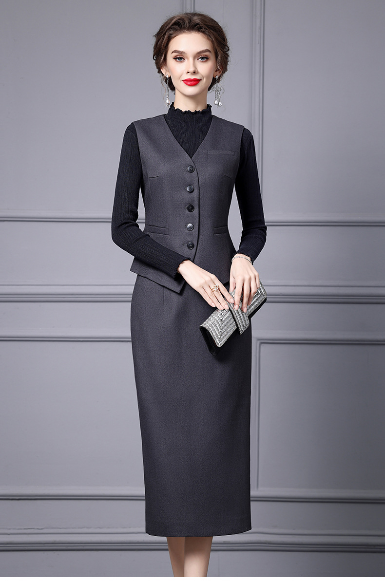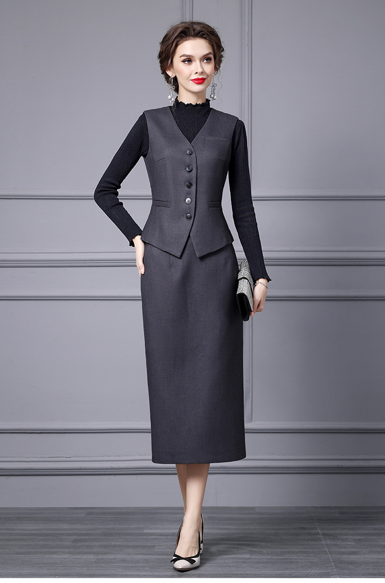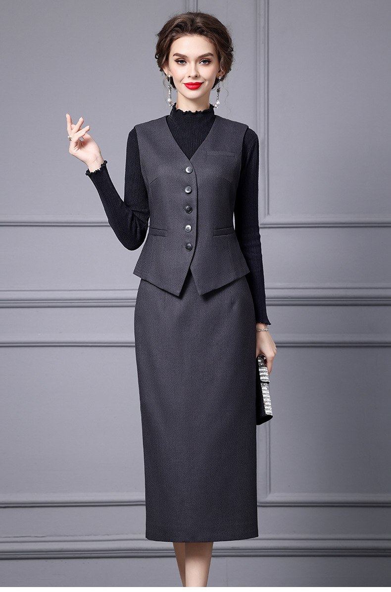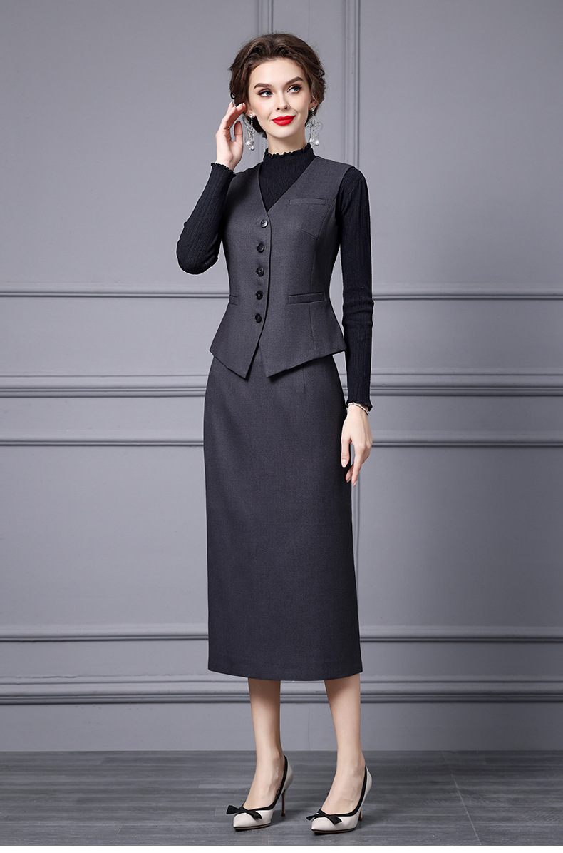 Bộ trang phục hai mảnh này gồm áo khoác dáng dài và chân váy dài, phù hợp cho dịp đi làm hoặc dạo phố. Chất vải dày dặn, giữ ấm tốt trong tiết trời thu. Kiểu dáng lịch sự, tôn dáng người mặc. Có thể phối cùng áo sơ mi hoặc áo len bên trong. Dễ dàng phối đồ và di chuyển thoải mái cả ngày. | Tên sản phẩm: Đồ Bộ Nữ Cả Bộ 2 Món Hàng Mùa Xuân Thu Đông - Thời Trang Nữ | Mã sản phẩm: A9644 - Giá: 3.400.000đ | Mã nhà sản xuất: SHDAP-G06Hình ảnh sản phẩm