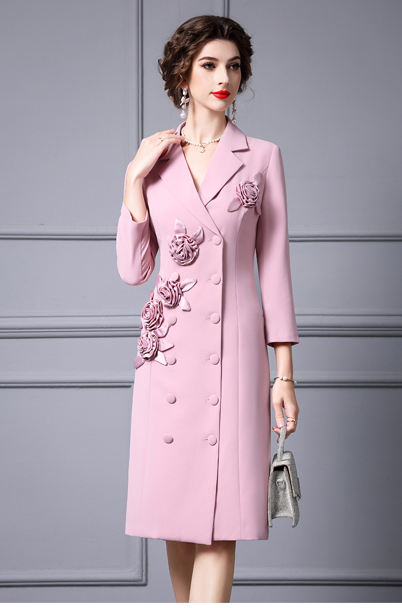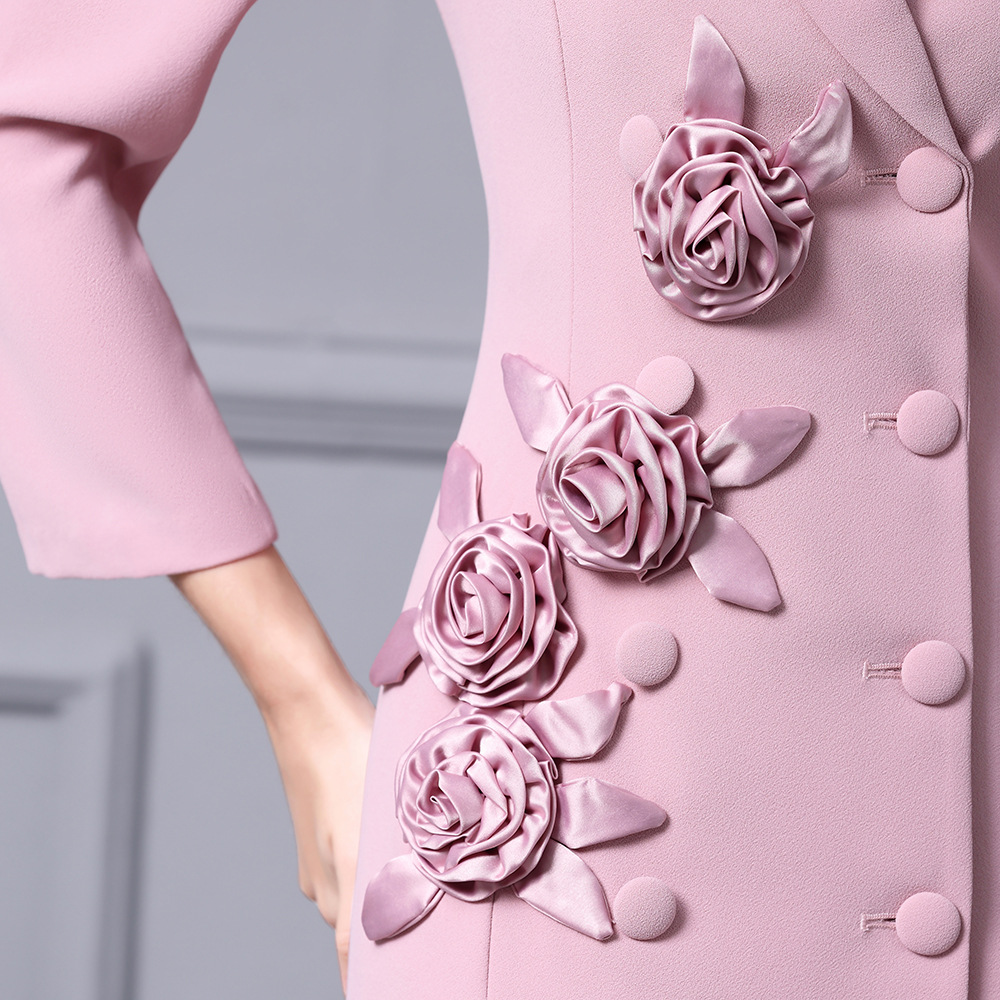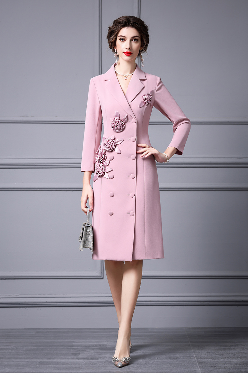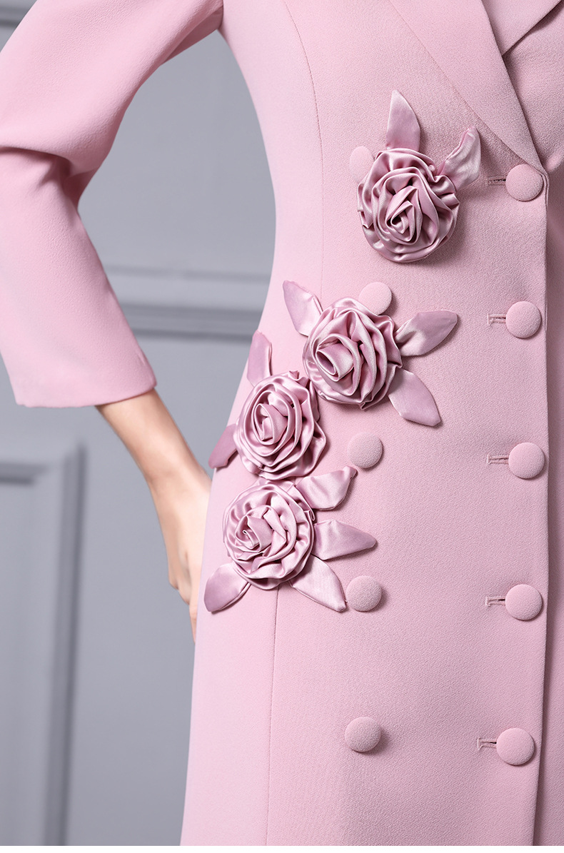 Chiếc đầm áo khoác hai lớp này có điểm nhấn là những bông hoa nổi được đính trên ve áo, tạo nên nét đẹp mới lạ và nữ tính. Thiết kế dáng dài, có hai hàng cúc cài, phù hợp cho thời tiết mùa thu. Bạn có thể mặc nguyên bộ như một chiếc đầm hoặc tách rời phần áo để phối đồ linh hoạt. Sản phẩm có màu hồng nhạt, kiểu dáng trẻ trung và hiện đại. | Tên sản phẩm: Áo Vest Nữ Vest Họa Tiết Hoa Hàng Mùa Xuân Thu Đông - Thời Trang Nữ | Mã sản phẩm: A9655 - Giá: 3.380.000đ | Mã nhà sản xuất: SHDAP-G06Hình ảnh sản phẩm