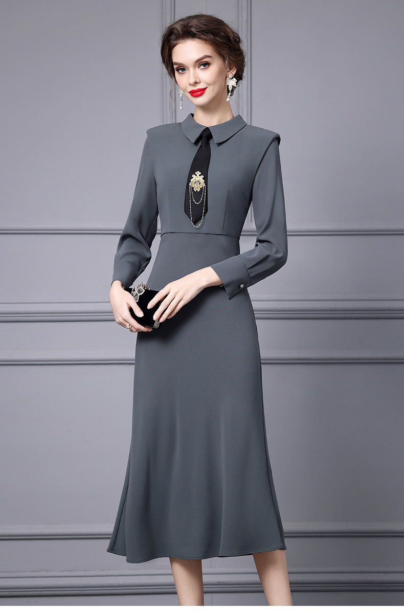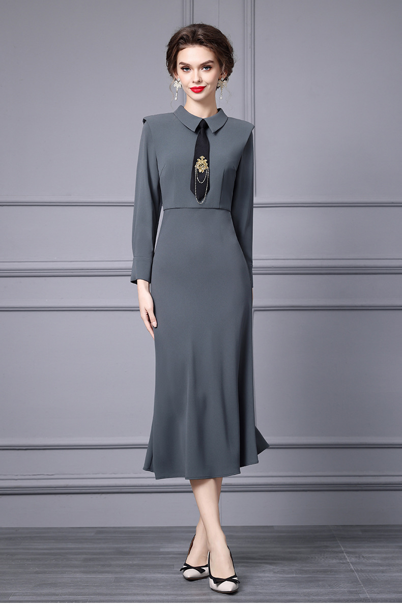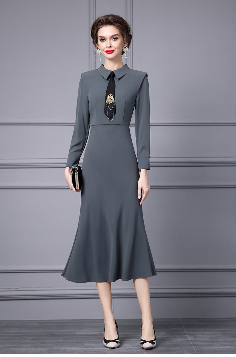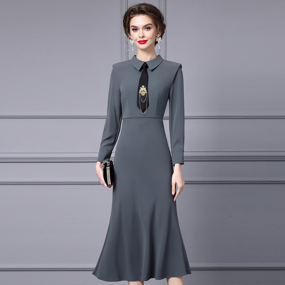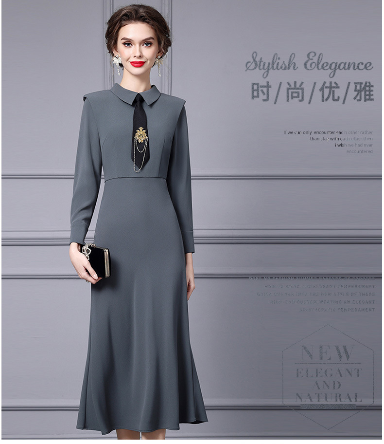 Chiếc đầm dáng dài với tay dài, được thiết kế để mặc bên trong áo khoác rất tiện lợi. Kiểu dáng ôn hòa, phù hợp cho cả tiết trời mát mẻ. Điểm nhấn đặc biệt là phần chân váy xòe nhẹ tựa như đuôi cá, tạo nên sự uyển chuyển khi di chuyển. Chất vải mềm mại giúp người mặc cảm thấy dễ chịu. Có thể phối cùng giày cao gót hoặc giày đế bằng để tạo nhiều phong cách khác nhau. | Tên sản phẩm: Váy Đầm Liền Thân Nữ Dài Tay Kiểu Đuôi Cá Hàng Mùa Xuân Thu Đông - Thời Trang Nữ | Mã sản phẩm: A9659 - Giá: 3.430.000đ | Mã nhà sản xuất: SHDAP-G06Hình ảnh sản phẩm