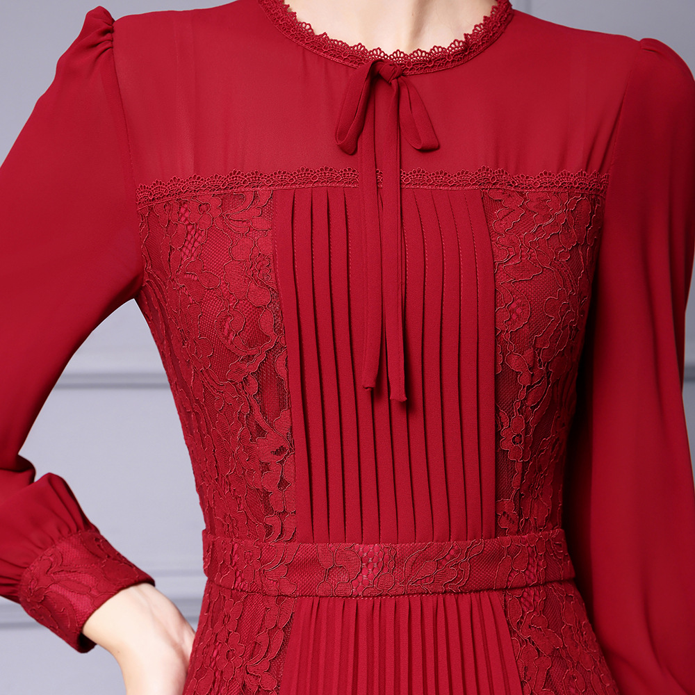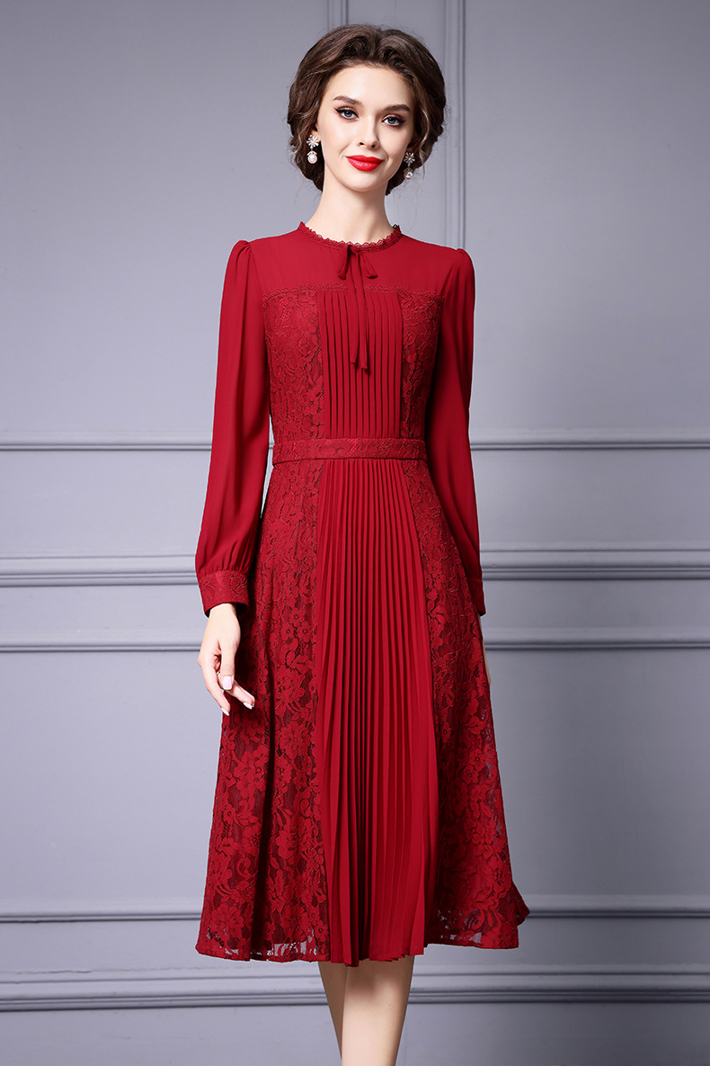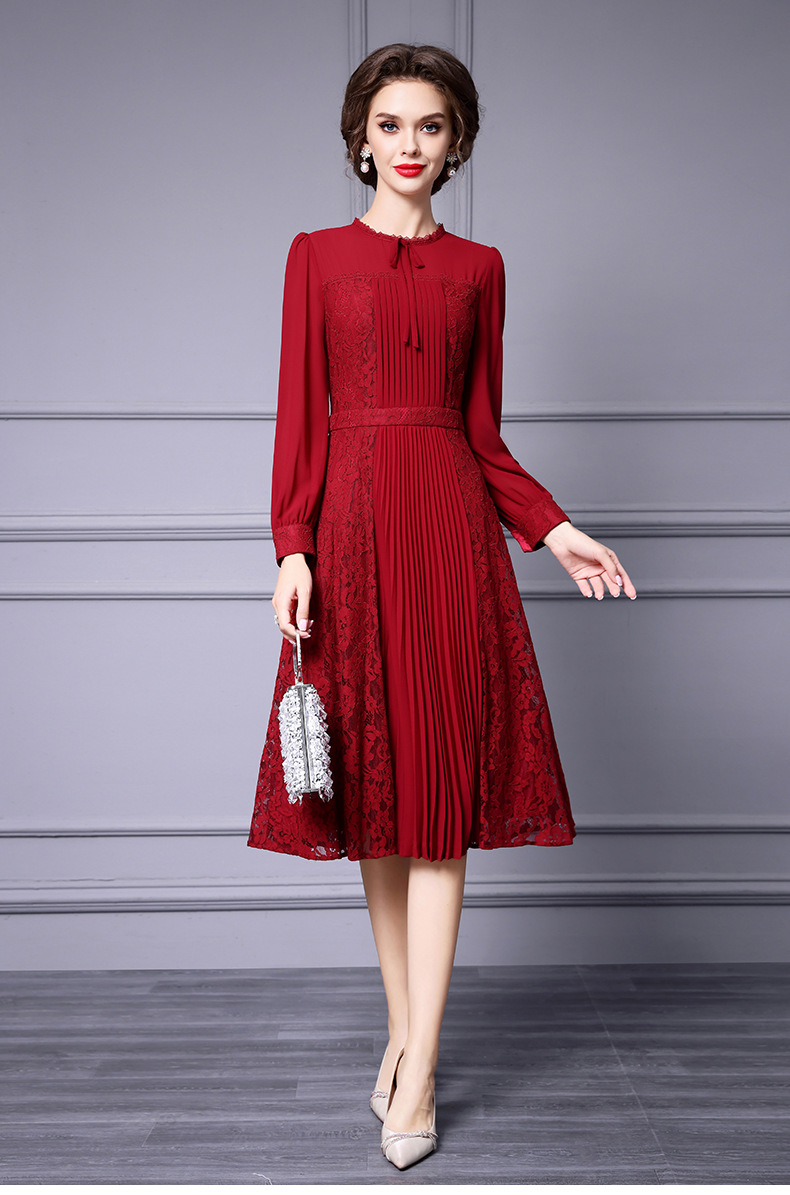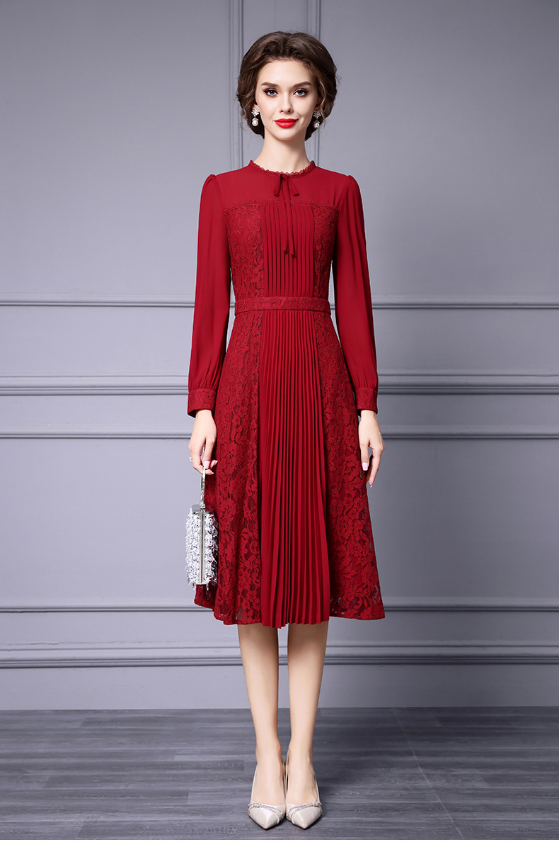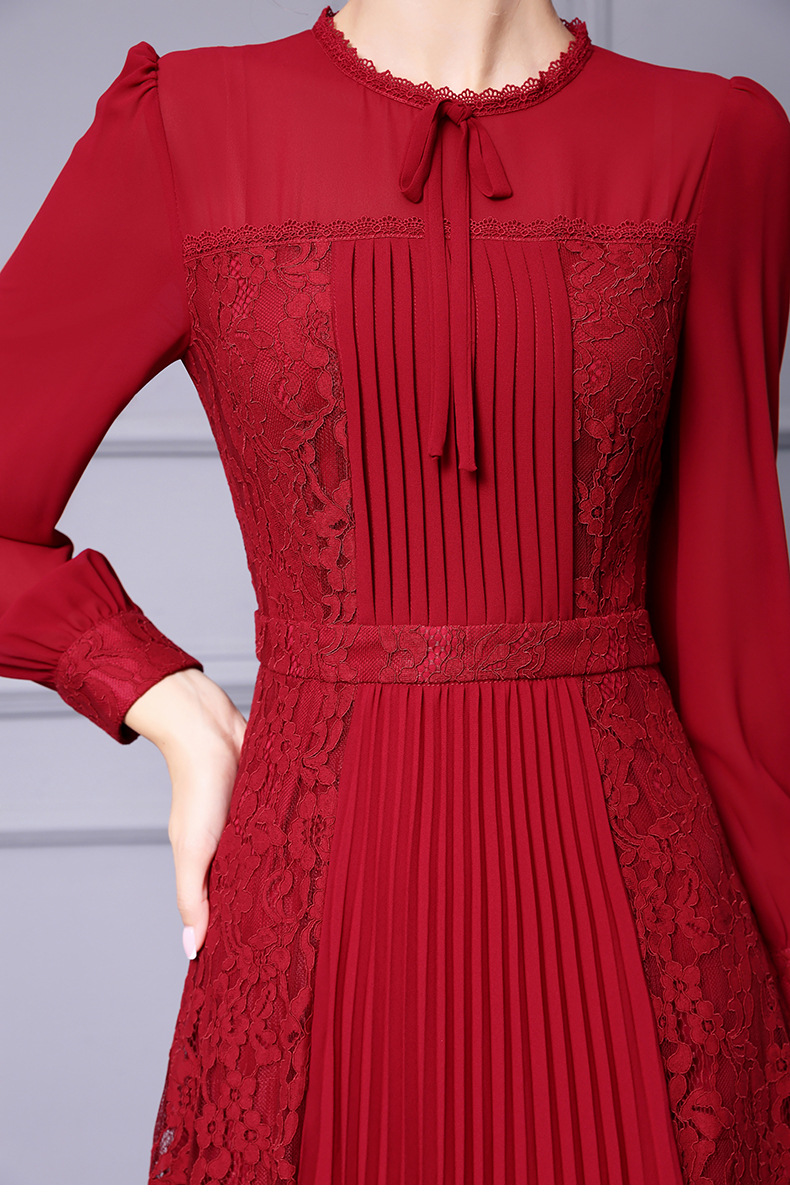 Chiếc đầm dành cho nữ này có kiểu dáng chữ A thanh lịch, được may từ chất liệu ren kết hợp cùng những đường ly vải tinh tế. Tay dài và sắc đỏ rượu vang tạo nên vẻ đẹp dịu dàng, phù hợp cho mùa thu. Bạn có thể mặc đi làm, dự tiệc hoặc những dịp gặp mặt. Sản phẩm mặc cùng giày cao gót hoặc giày đế bằng đều rất phù hợp, giúp bạn tự tin và thoải mái suốt cả ngày dài. | Tên sản phẩm: Váy Đầm Liền Thân Nữ Chất Liệu Ren Dáng Chữ A Hàng Mùa Xuân Thu Đông - Thời Trang Nữ | Mã sản phẩm: A9662 - Giá: 3.010.000đ | Mã nhà sản xuất: SHDAP-G06Hình ảnh sản phẩm