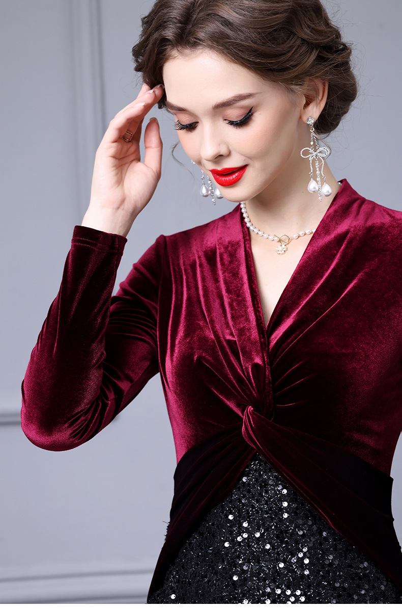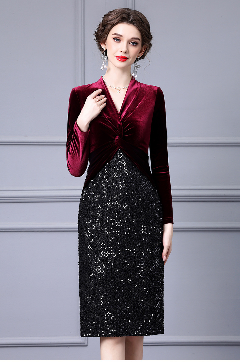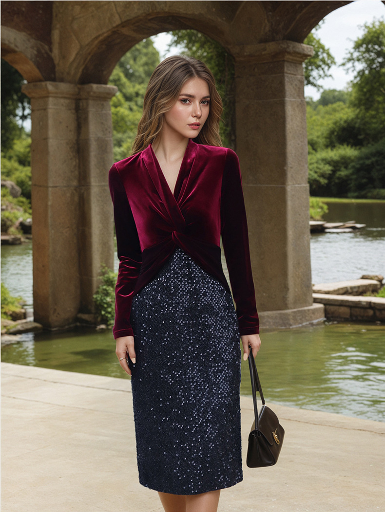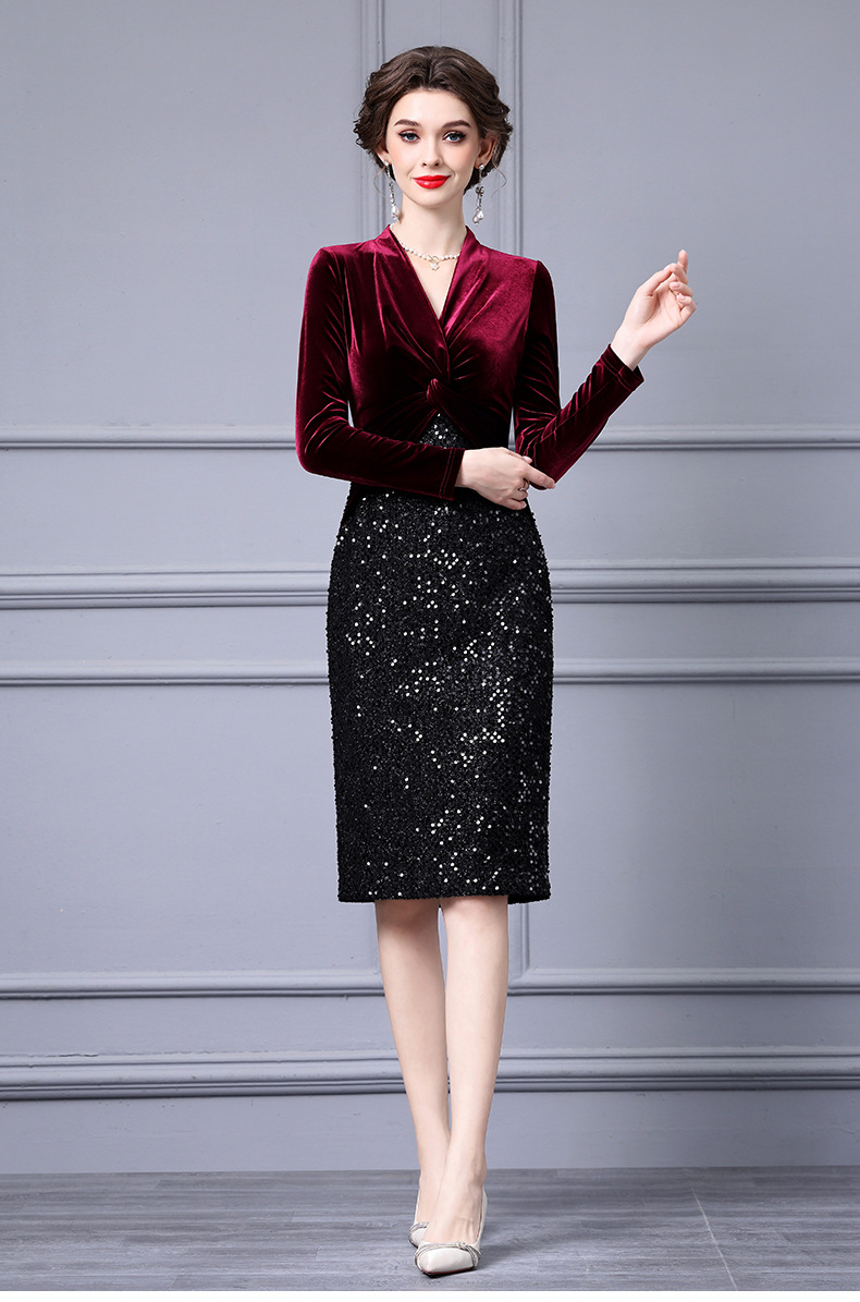 Chiếc đầm hai lớp thiết kế thông minh với phần thân trên ôm sát, cổ chữ V tôn dáng. Điểm nhấn là sự kết hợp giữa màu rượu vang đậm và những đường ghép vải tinh tế, được điểm xuyến bằng các hạt ánh sáng lấp lánh. Eo có dây rút điều chỉnh giúp tạo đường nét cơ thể. Đây là lựa chọn phù hợp cho những ngày thu, mặc cùng giày cao gót hoặc giày thể thao đều hợp. | Tên sản phẩm: Váy Đầm Liền Thân Nữ Dáng Ôm Cả Bộ 2 Món Cổ Chữ V Hàng Mùa Xuân Thu Đông - Thời Trang Nữ | Mã sản phẩm: A9664 - Giá: 2.680.000đ | Mã nhà sản xuất: SHDAP-G06Hình ảnh sản phẩm