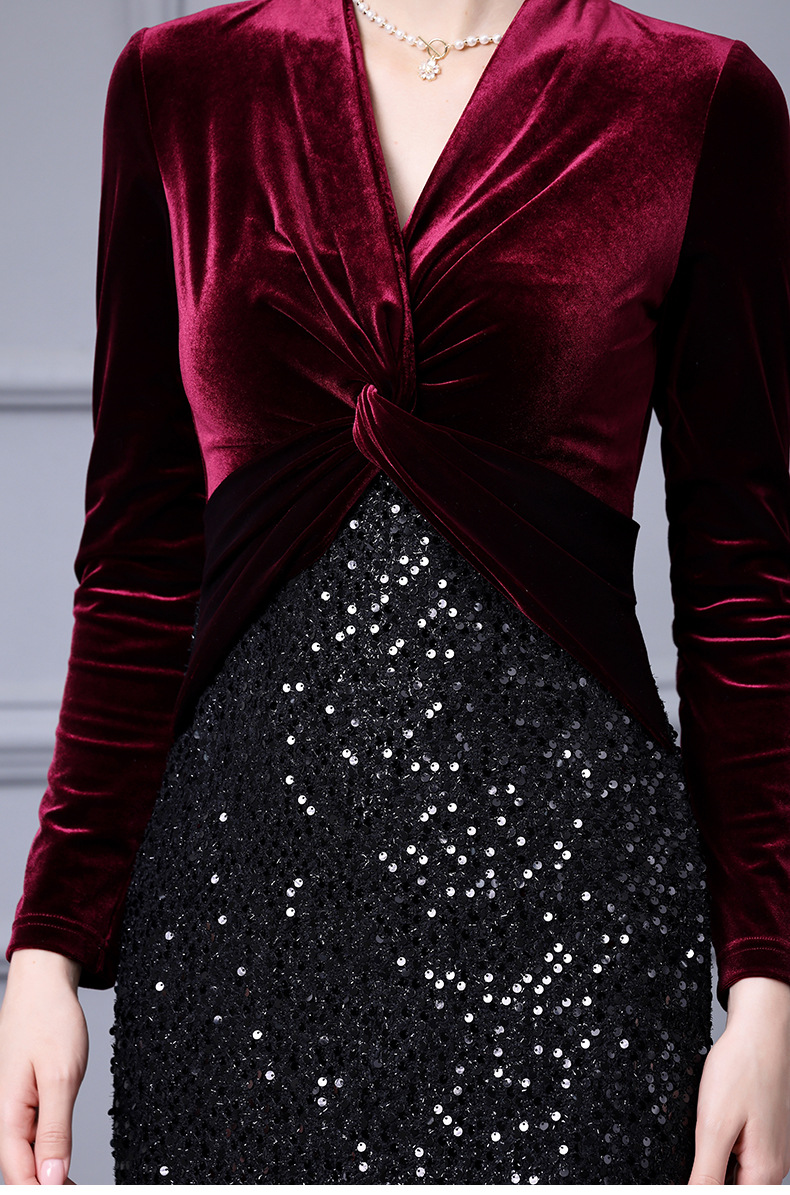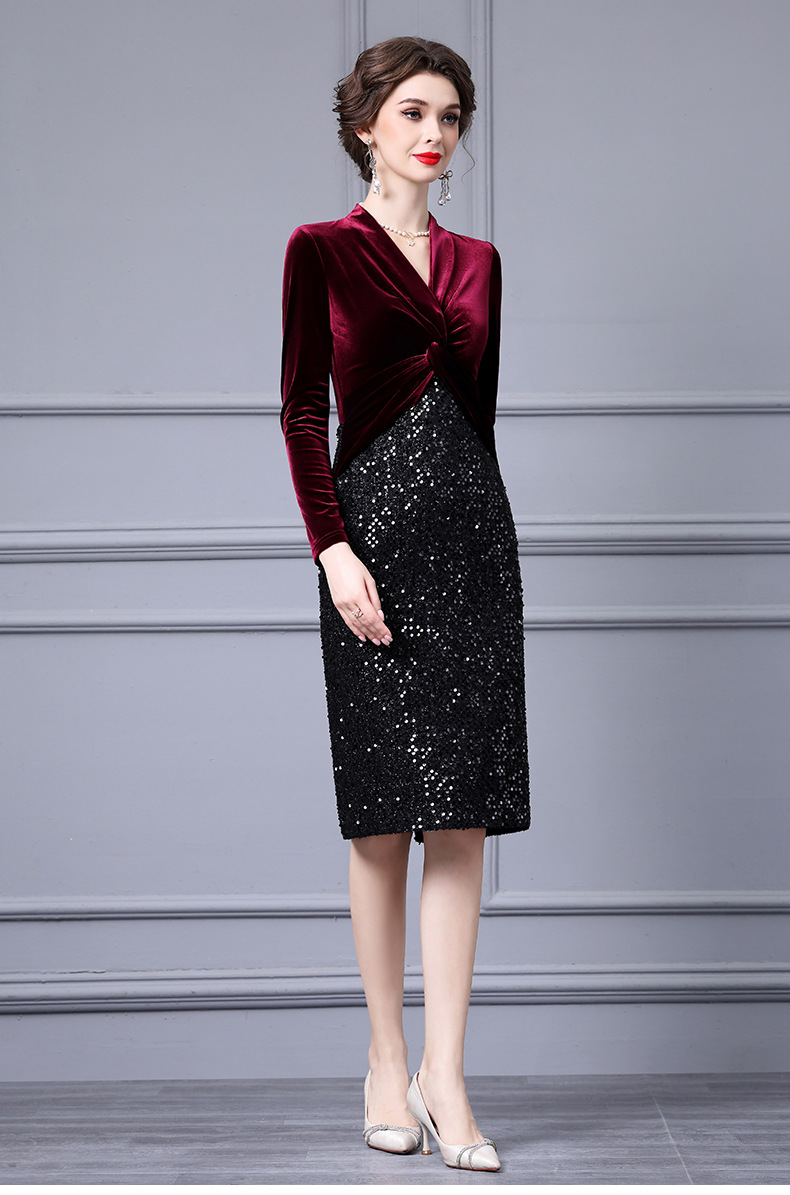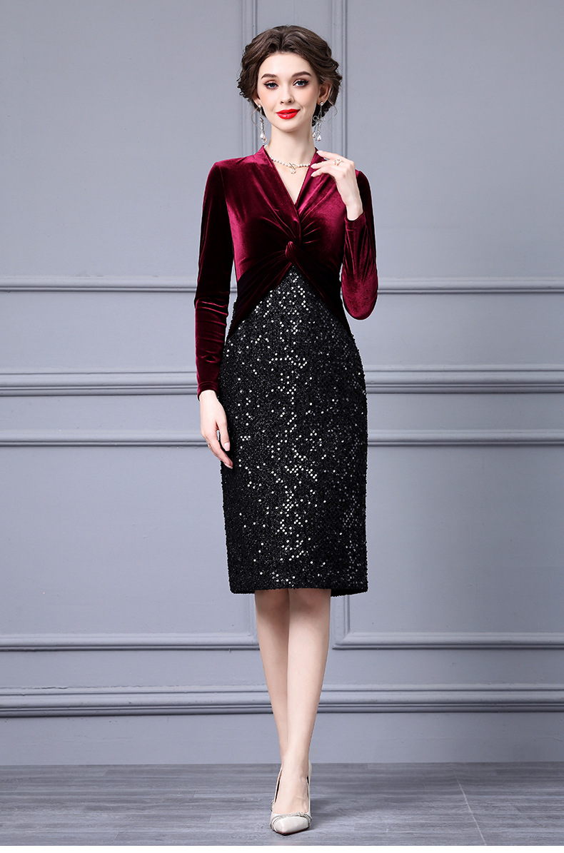 Chiếc đầm hai lớp thiết kế thông minh với phần thân trên ôm sát, cổ chữ V tôn dáng. Điểm nhấn là sự kết hợp giữa màu rượu vang đậm và những đường ghép vải tinh tế, được điểm xuyến bằng các hạt ánh sáng lấp lánh. Eo có dây rút điều chỉnh giúp tạo đường nét cơ thể. Đây là lựa chọn phù hợp cho những ngày thu, mặc cùng giày cao gót hoặc giày thể thao đều hợp. | Tên sản phẩm: Váy Đầm Liền Thân Nữ Dáng Ôm Cả Bộ 2 Món Cổ Chữ V Hàng Mùa Xuân Thu Đông - Thời Trang Nữ | Mã sản phẩm: A9664 - Giá: 2.680.000đ | Mã nhà sản xuất: SHDAP-G06Hình ảnh sản phẩm