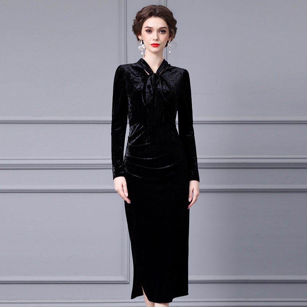 Chiếc đầm này có chất vải mềm mại và ấm áp, mang đến cảm giác dễ chịu khi mặc. Thiết kế ôm sát cơ thể, tôn lên những đường nét của người mặc. Cổ áo đứng và có dây rút điều chỉnh, cùng với thắt lưng buộc nơ, giúp bạn có thể tùy chỉnh cho vừa vặn. Đây là kiểu dáng phù hợp cho những ngày thu se lạnh. Bạn có thể phối cùng giày búp bê hoặc giày gót thấp để tạo nên vẻ ngoài thanh lịch. | Tên sản phẩm: Váy Đầm Liền Thân Nữ Hàng Mùa Xuân Thu Đông Phục Cổ Cổ Điển - Thời Trang Nữ | Mã sản phẩm: A9665 - Giá: 2.410.000đ | Mã nhà sản xuất: SHDAP-G05Hình ảnh sản phẩm