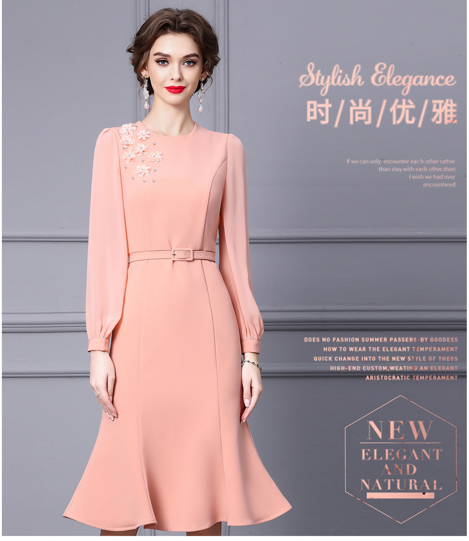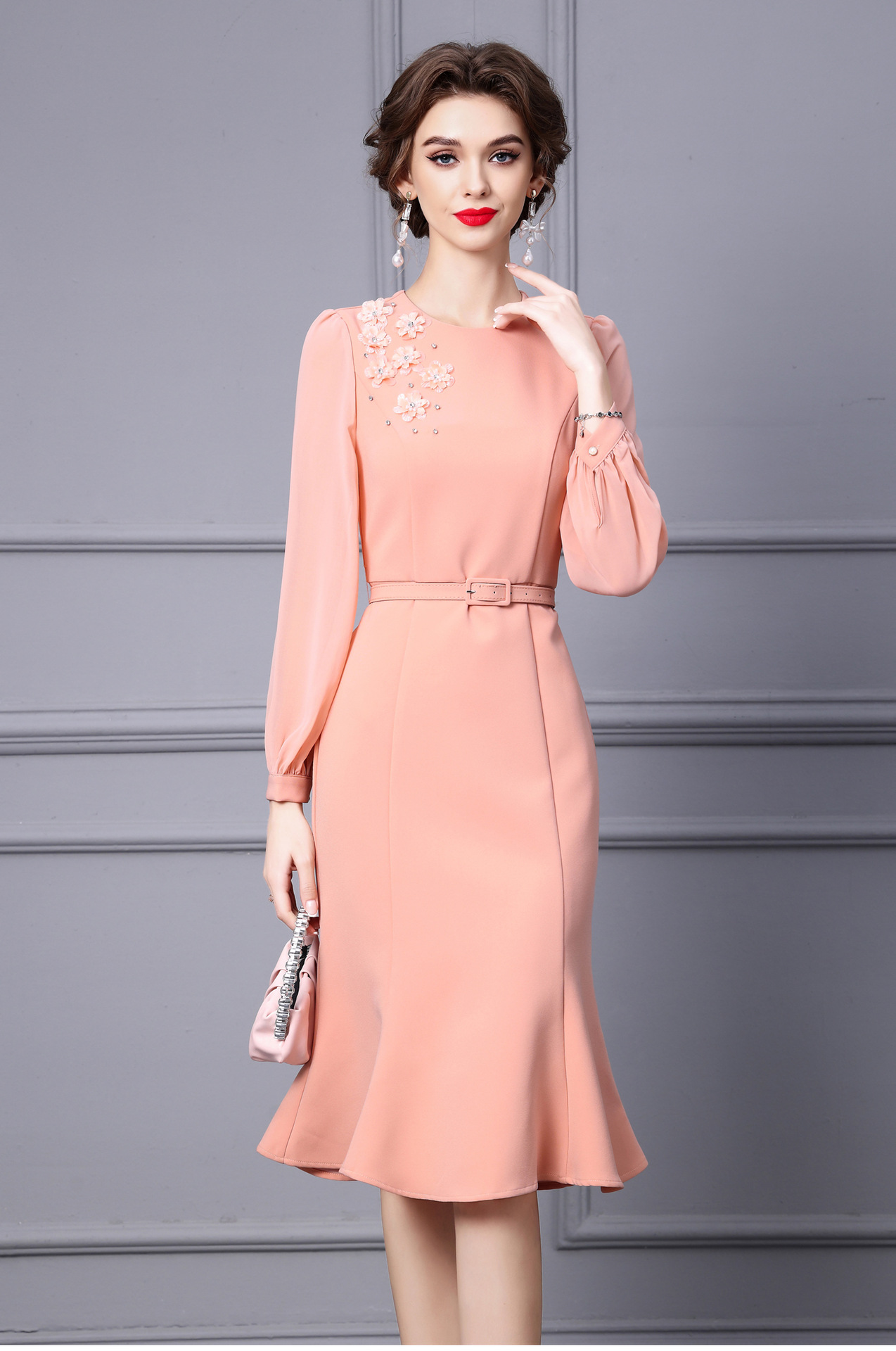 Chiếc đầm dáng đuôi cá cho nữ, điểm nhấn là sắc hồng dịu dàng phù hợp tiết thu. Tay dài cùng thiết kế ôm tôn dáng. Điểm nổi bật là phần hoa văn được cắt tỉa và đính hạt cầu kỳ hoàn toàn thủ công. Kiểu dáng thanh lịch, phù hợp cho nhiều dịp gặp mặt. Mặc kèm áo khoác mỏng hoặc phụ kiện đơn giản để tạo điểm nhấn. | Tên sản phẩm: Váy Đầm Liền Thân Nữ Dài Tay Họa Tiết Hoa Hàng Mùa Xuân Thu Đông - Thời Trang Nữ | Mã sản phẩm: A9667 - Giá: 2.730.000đ | Mã nhà sản xuất: SHDAP-G06Hình ảnh sản phẩm
