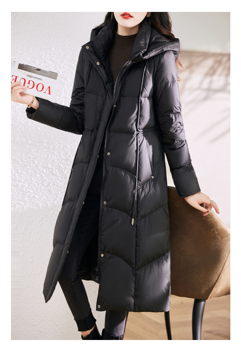 Áo khoác dài qua gối dành cho nữ, có mũ trùm và chất liệu lông vũ mềm mại bên trong. Thiết kế dáng dài tạo nét thanh lịch, phù hợp mặc trong tiết trời lạnh. Áo có màu đen dễ dàng phối với nhiều trang phục khác nhau. Chỉ cần mặc áo bên ngoài lớp áo thường ngày là đã đủ ấm áp và thoải mái cho những ngày đông giá rét. | Tên sản phẩm: Áo Khoác Nữ Dài Quá Gối Mũ Liền Dày Ấm Hàng Mùa Xuân Thu Đông - Thời Trang Nữ | Mã sản phẩm: a9670 - Giá: 4.630.000đ | Mã nhà sản xuất: WODIG-G06Hình ảnh sản phẩm
